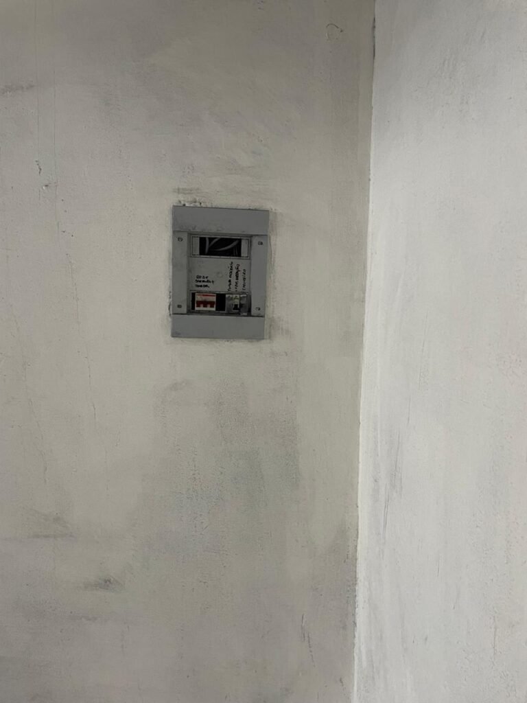 SALA 02-: Rodapés e pisos frio cerâmico com parte de decorada e parte cor branco, com desgaste natural, manchas pela extensão e trincados, paredes com pintura na cor branco neve nova, com desgaste natural e manchas de sujeira, 01 quadro de disjuntores sem tampa, teto de dry-wall com acabamento de gesso e pintura na cor branco neve, com desgaste natural e buracos pela extensão, 01 luminária plafon redonda embutida e com led piscando, 04 tomadas.
