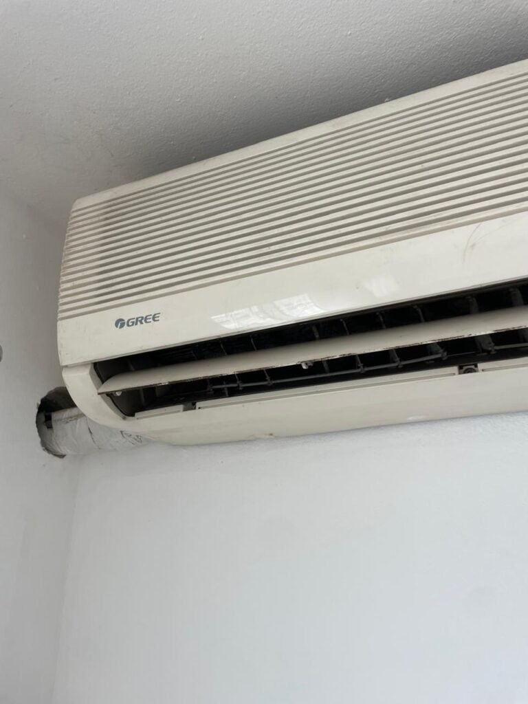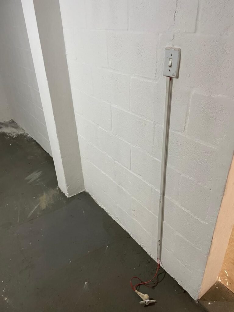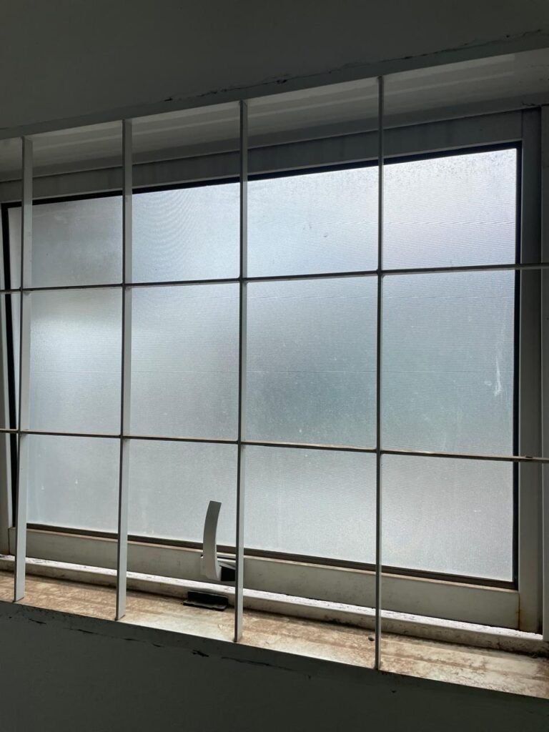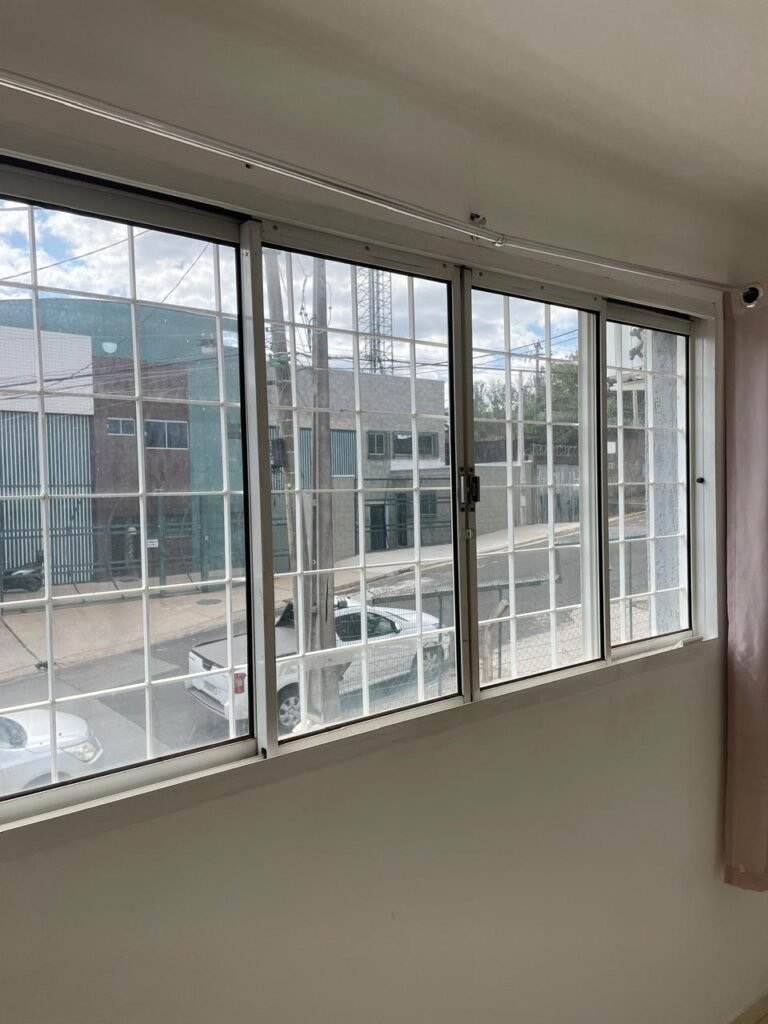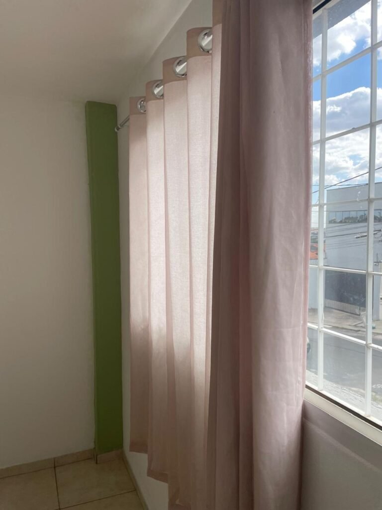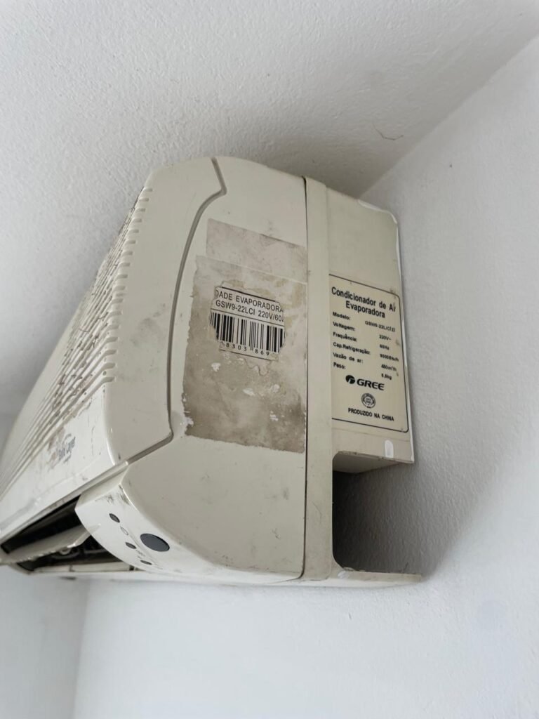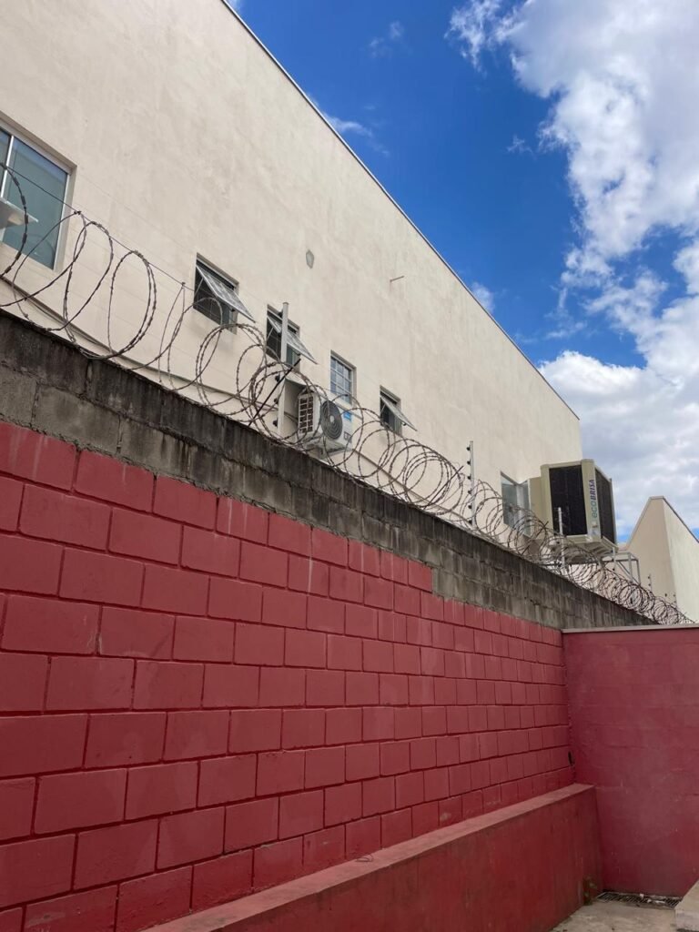 ESCRITÓRIO SUPERIOR-: 01 Porta de madeira com pintura nova na cor branco em ordem, com maçaneta em inox em ordem, com fechadura em ordem marca Aliança, com chave em ordem, pisos e rodapés revestidos de pisos frios cerâmicos em ordem, paredes e teto com pintura na cor branco neve nova e em ordem, 01 interruptor, 03 tomadas, 04 entradas para fio de dados e 01 espelho cego, ambos com espelho de luz em ordem, 01 espelho com fiação aparente e régua com 03 tomadas, 01 extintor de incêndio de pó químico bc 4kg 20-B:C com validade em ordem, 01 aparelho de ar condicionado marca Gree 9000 Btu não testado, com 01 controle sem funcionamento, 01 varão de cortina com acabamento solto e 02 folhas de cortina na cor rosa com desgastes naturais e restante em ordem, janela deslizante com 01 fechadura em ordem, com o 013 para cadeado, congratil de ferro de proteção em ordem, janela com pintura na cor branco em ordem, 01 fiação aparente, 01 bocal com 01 lâmpada em ordem.