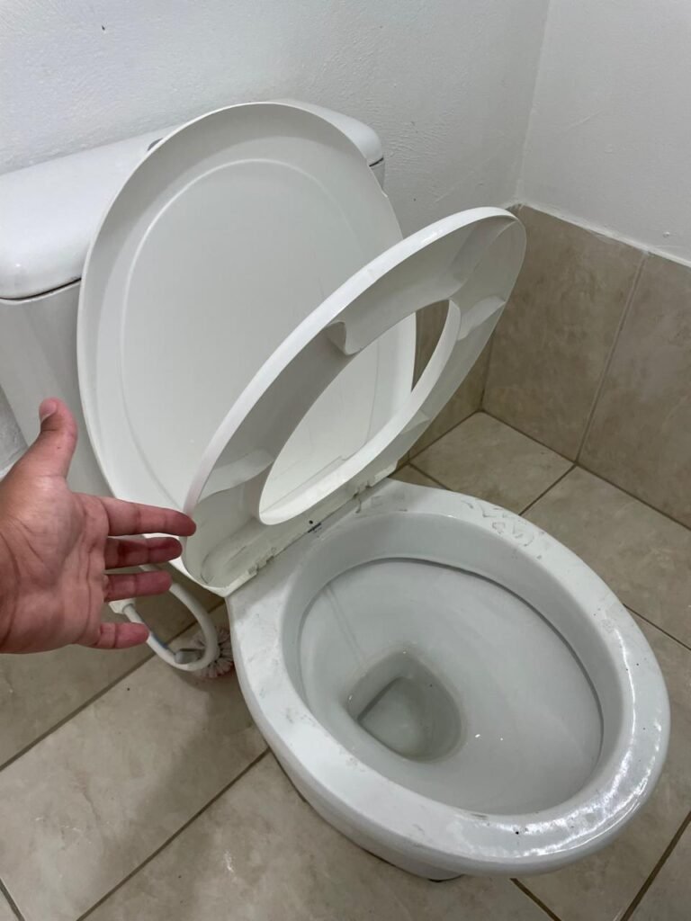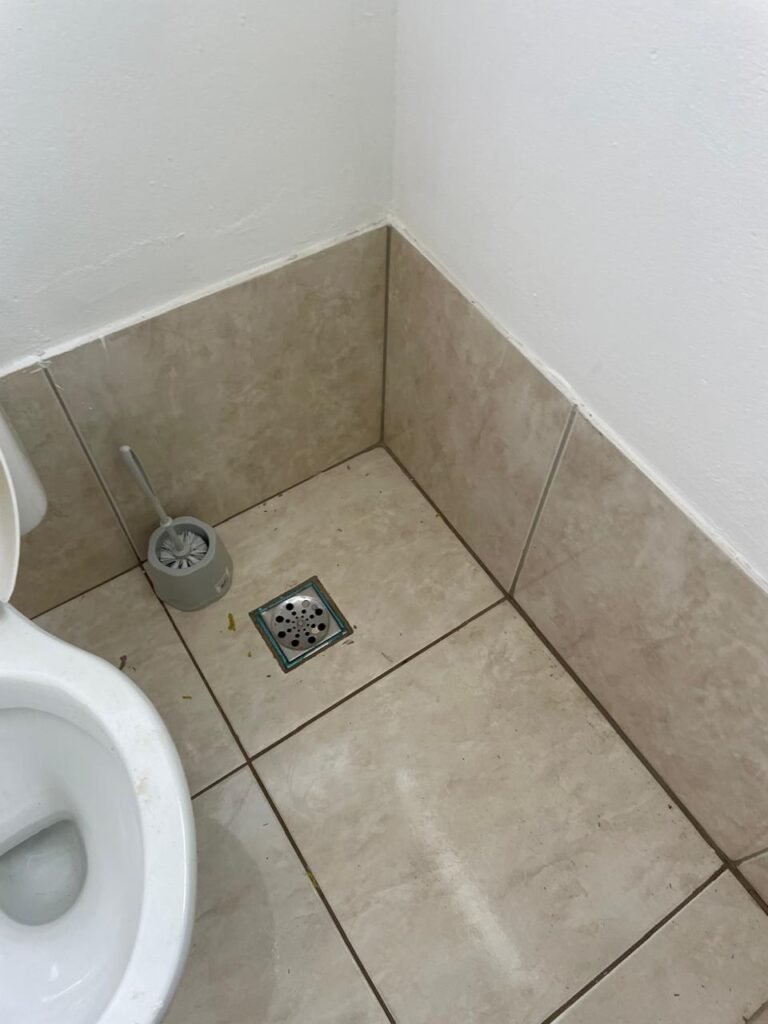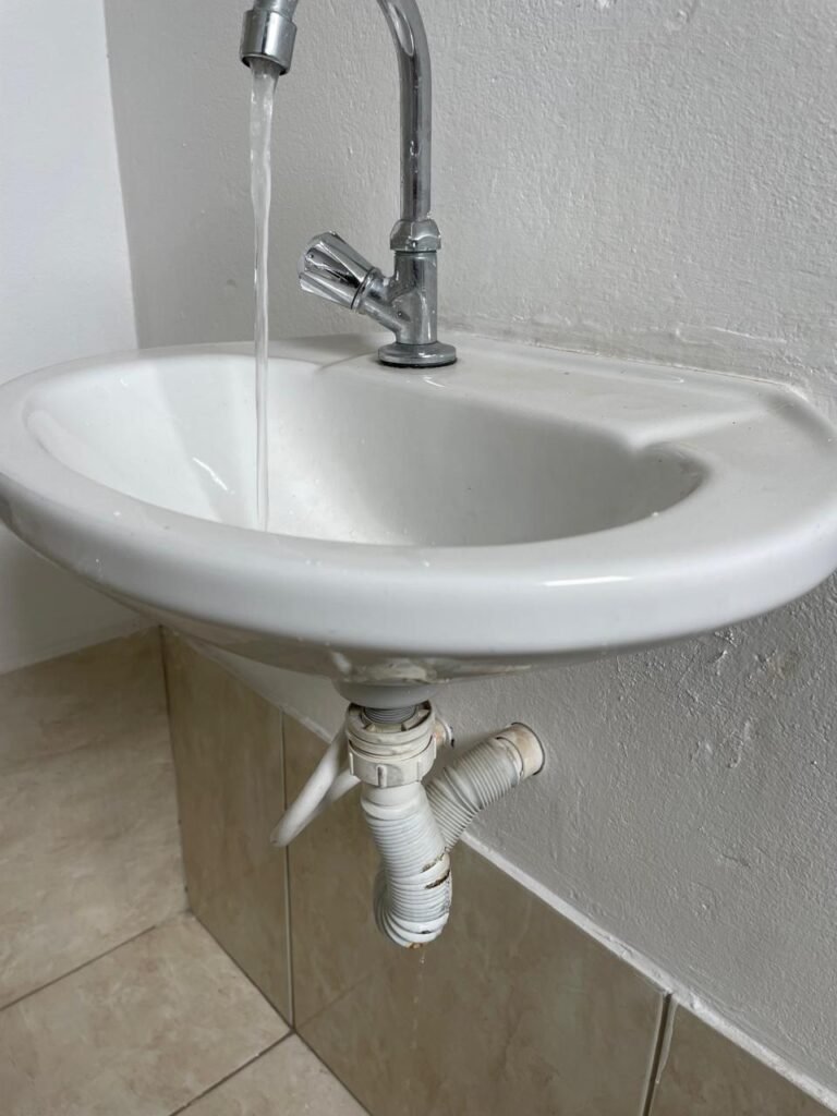 WC RECEPÇÃO-: 01 Porta de madeira saindo lascas, com pintura na cor branco com desgastes naturais, com placa de sinalização em ordem, com maçanetas em inox em ordem, com fechadura marca Aliança em ordem e com chave embutida em ordem, com 01 trinco ferrolho em ordem, pisos e rodapés revestidos de pisos frios cerâmicos em ordem, 01 ralo em inox em ordem, 01 pia de cerâmica cor branco, marca Icasa em ordem, com 01 torneira em inox com desgastes naturais e restante em ordem, 01 sifão sanfonado com vazamento, 01 conjunto sanitário de cerâmica cor branco, marca Logasa em ordem, descarga com válvula embutida em inox, descarga em ordem, tampa e assento em ordem, 01 interruptor com espelho de luz em ordem, 01 vitrô basculante com fechadura em ordem, com 01 folha de acrílico em ordem, com gradil de ferro em ordem, vitrô com pintura na cor branco nova e em ordem, 01 bocal com 01 lâmpada LED em ordem.