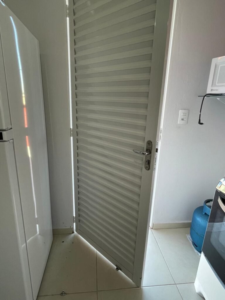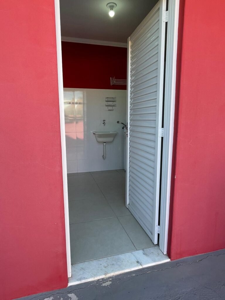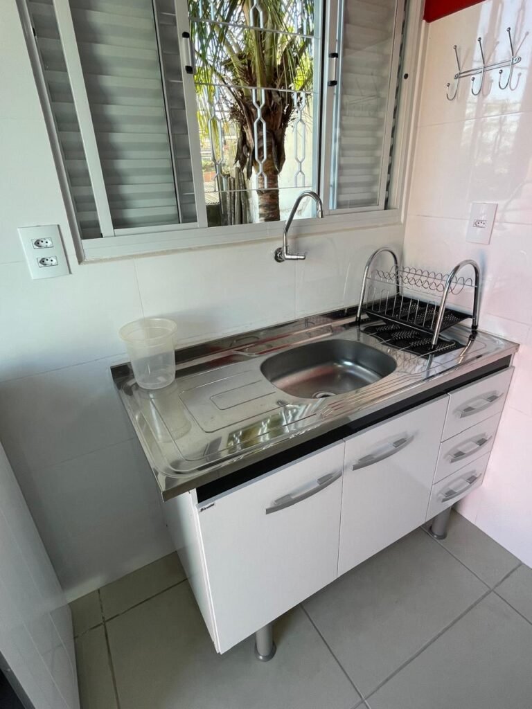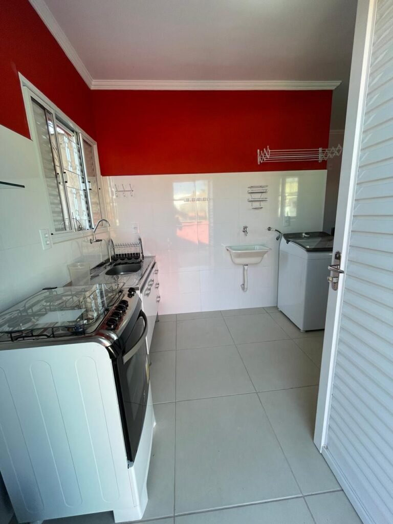 Uma Porta de entrada em Alumínio Sasazaki com pintura eletrostática na cor branco em ordem, com chaves em ordem, maçaneta e fechadura Stam em ordem, dobradiças em ordem, duas janelas venezianas Alumínio Sasazaki com pintura eletrostática na cor branco contendo duas folhas de correr de vidro em cada uma das janelas em ordem, duas folhas de correr vazadas em cada uma das janelas em ordem, com quatro puxadores em cada uma das janelas em ordem, uma soleira mármore branco em ordem, piso porcelanato bege mesclado em ordem, rodapés porcelanato em ordem, uma parede pia com azulejos brancos meia parede em ordem, restante da meia parede recém-pintada com a pintura na cor vermelho em ordem, uma parede da maquina de lavar com azulejos brancos em meia parede em ordem, restante da parede meia parede recém-pintada com a pintura na cor vermelho em ordem, três paredes recém-pintadas com a pintura na cor cinza marca Sherwin Williams, teto com a pintura na cor branco recém-pintada em ordem, gola de gesso com a pintura na cor branco recém-pintado em ordem, oito espelhos simples com módulo de energia marca Margirus completo em ordem, um espelho com módulo duplo de energia e luz marca Margirus completo em ordem, um espelho simples com módulo de luz marca Margirus completo em ordem, dois spot com duas lâmpada de led em ordem, uma pia de cozinha em aço de inox marca Franke com cuba e válvula em ordem, uma torneira de bica móvel marca Veneza em ordem, um sifão branco desentupido em ordem, um gabinete de pia de cozinha novo de MDF branco em perfeito estado contendo quatro pés em ordem, três gavetas em ordem, com três puxadores em ordem, duas portas de abrir em ordem, dois puxadores em ordem, com quatro dobradiças em ordem, um porta louças de inox em ordem, um suporte de vassouras, um porta toalhas de inox em ordem, um tanque sintético em ordem, um sifão branco desentupido em ordem, uma válvula para tanque em ordem, uma tampa em ordem, uma torneira para tanque marca marca Veneza com arejador em ordem, uma saída de esgoto desentupida para maquina de lavar em ordem, um registro de tanque em ordem, um suporte de parede de inox em ordem, um varal de teto em ordem.
