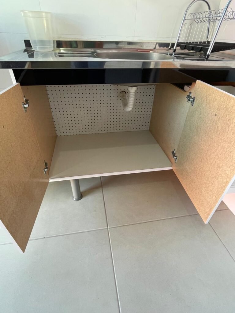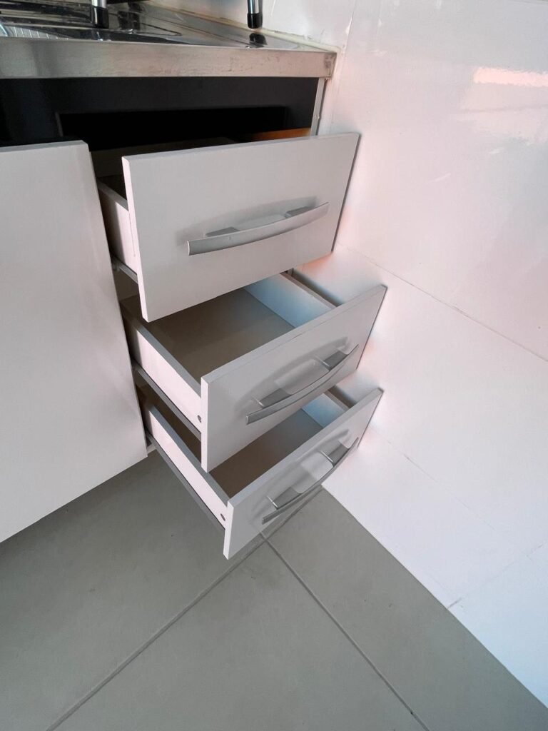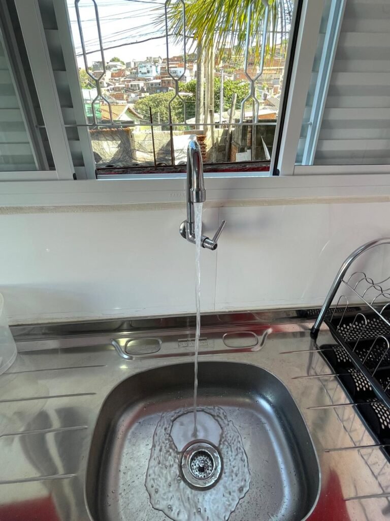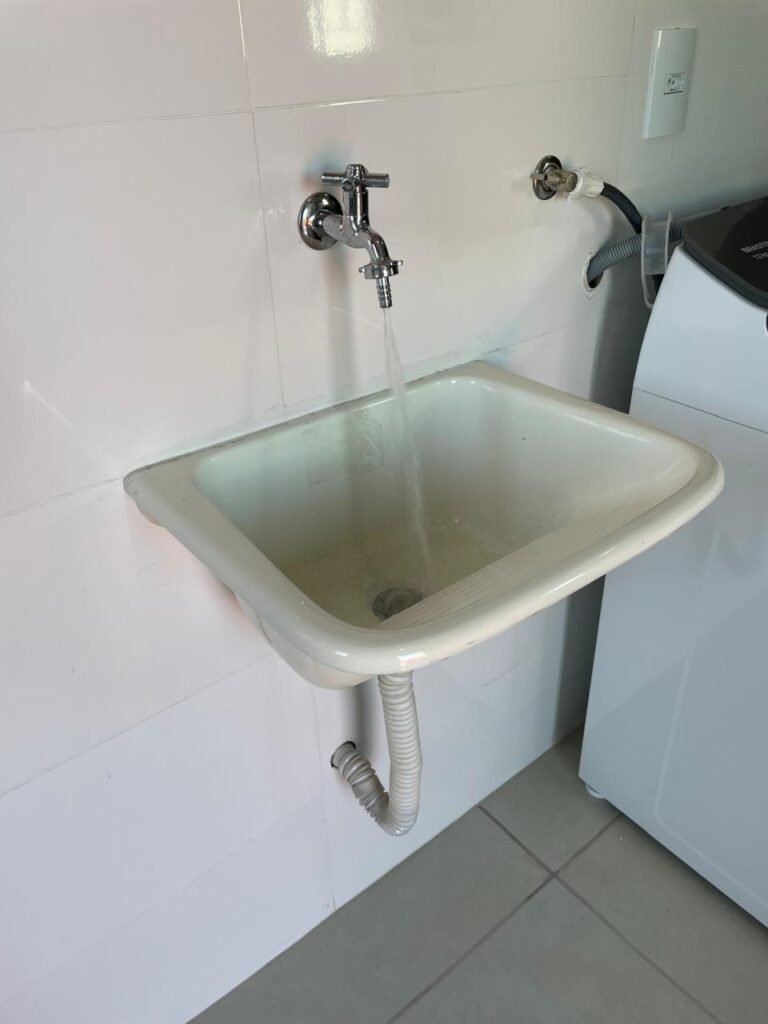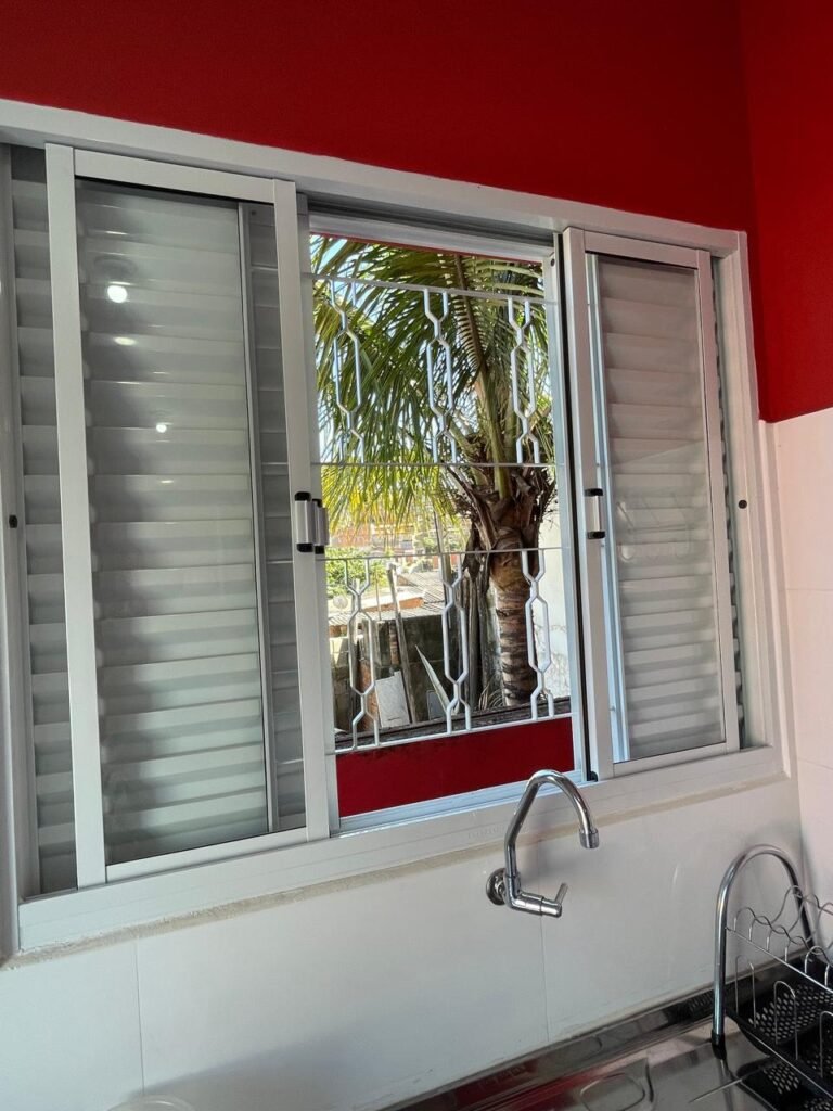 Uma Porta de entrada em Alumínio Sasazaki com pintura eletrostática na cor branco em ordem, com chaves em ordem, maçaneta e fechadura Stam em ordem, dobradiças em ordem, duas janelas venezianas Alumínio Sasazaki com pintura eletrostática na cor branco contendo duas folhas de correr de vidro em cada uma das janelas em ordem, duas folhas de correr vazadas em cada uma das janelas em ordem, com quatro puxadores em cada uma das janelas em ordem, uma soleira mármore branco em ordem, piso porcelanato bege mesclado em ordem, rodapés porcelanato em ordem, uma parede pia com azulejos brancos meia parede em ordem, restante da meia parede recém-pintada com a pintura na cor vermelho em ordem, uma parede da maquina de lavar com azulejos brancos em meia parede em ordem, restante da parede meia parede recém-pintada com a pintura na cor vermelho em ordem, três paredes recém-pintadas com a pintura na cor cinza marca Sherwin Williams, teto com a pintura na cor branco recém-pintada em ordem, gola de gesso com a pintura na cor branco recém-pintado em ordem, oito espelhos simples com módulo de energia marca Margirus completo em ordem, um espelho com módulo duplo de energia e luz marca Margirus completo em ordem, um espelho simples com módulo de luz marca Margirus completo em ordem, dois spot com duas lâmpada de led em ordem, uma pia de cozinha em aço de inox marca Franke com cuba e válvula em ordem, uma torneira de bica móvel marca Veneza em ordem, um sifão branco desentupido em ordem, um gabinete de pia de cozinha novo de MDF branco em perfeito estado contendo quatro pés em ordem, três gavetas em ordem, com três puxadores em ordem, duas portas de abrir em ordem, dois puxadores em ordem, com quatro dobradiças em ordem, um porta louças de inox em ordem, um suporte de vassouras, um porta toalhas de inox em ordem, um tanque sintético em ordem, um sifão branco desentupido em ordem, uma válvula para tanque em ordem, uma tampa em ordem, uma torneira para tanque marca marca Veneza com arejador em ordem, uma saída de esgoto desentupida para maquina de lavar em ordem, um registro de tanque em ordem, um suporte de parede de inox em ordem, um varal de teto em ordem.