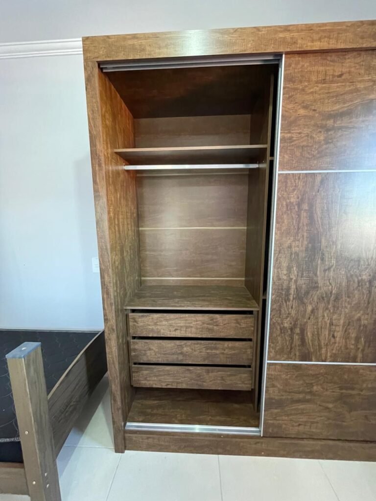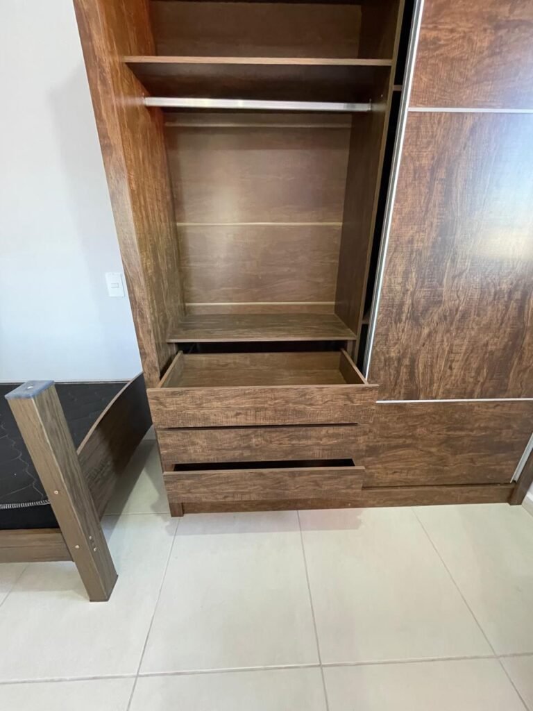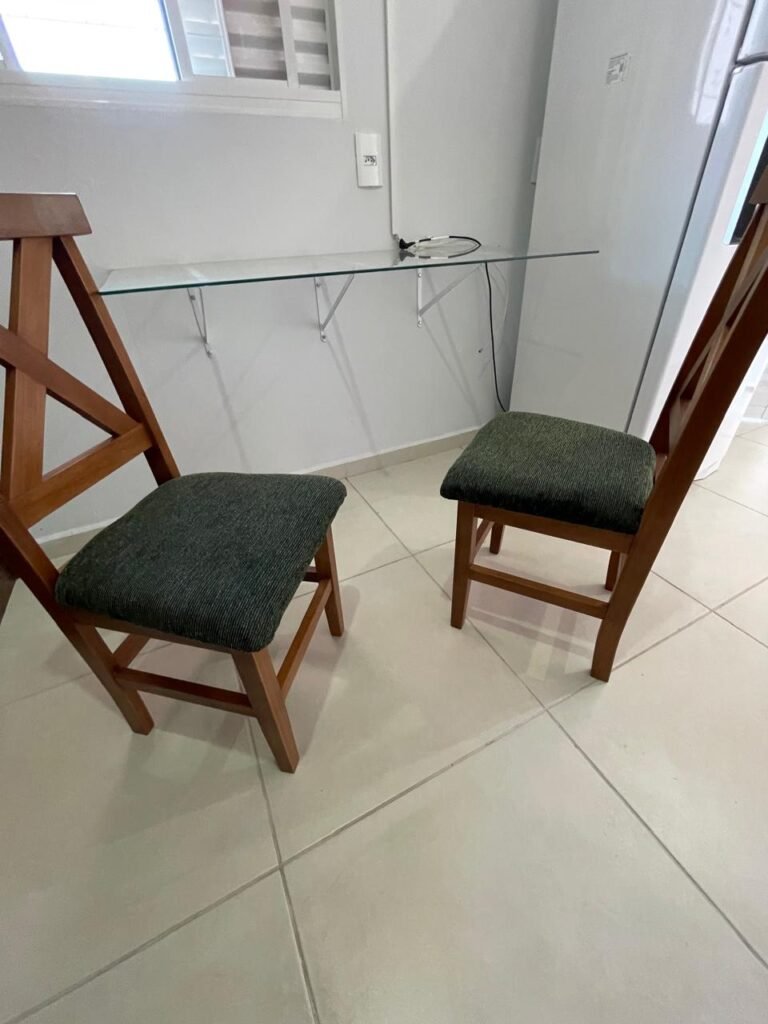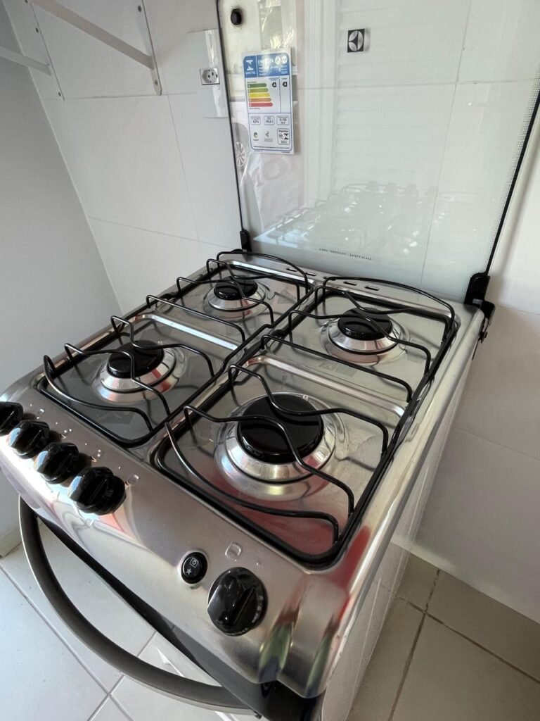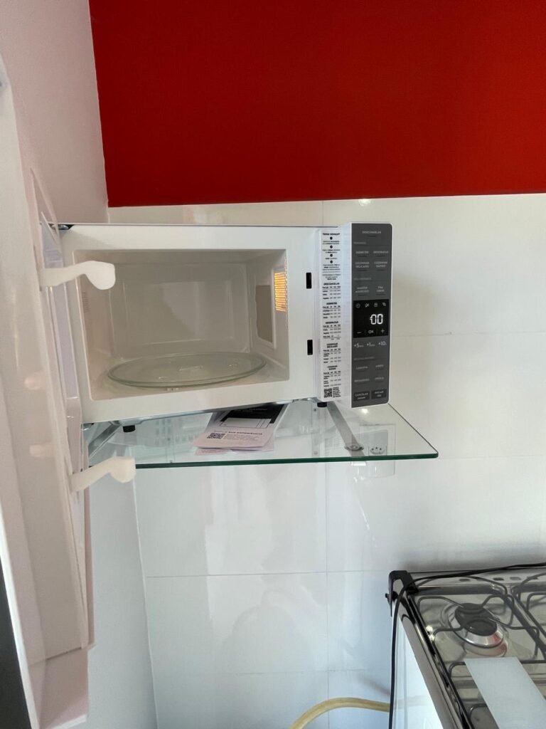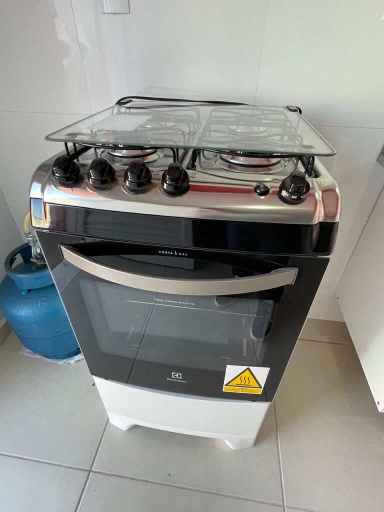 Um fogão novo de quatro bocas marca Brastemp Clean com acendedor automático com forno em perfeito estado, um botijão de gás de 11 kg completo em ordem, uma válvula de gás em ordem, um cano de gás em ordem, um micro-ondas novo marca Panasonic NN-ST 35HW em perfeito estado, uma prateleira fixa de vidro temperado para micro-ondas em ordem, uma geladeira nova marca Brastemp Frost- Free em perfeito estado, uma maquina de lavar nova da marca Brastemp BWK14A 12KG em perfeito estado, uma mesa fixa na parede com tampão de vidro temperado em ordem, contendo duas cadeiras novas de madeira maciça com estofado na cor verde em perfeito estado, um guarda roupas novo de madeira MDF mesclado contendo duas portas de correr em ordem, três gavetas de correr em ordem, quatro nichos em ordem, dois maleiros em ordem, quatro cabineiros de alumínio em ordem, uma cama de solteiro de MDF mesclado em ordem, um colchão novo marca Sousa de densidade D28, ant. acaro, ant. mofo, ant. alérgico, na cor preto em ordem, um tapete de entrada em ordem, um roteador DESKTOP em ordem, um cabideiro de madeira com 09 alças em ordem.