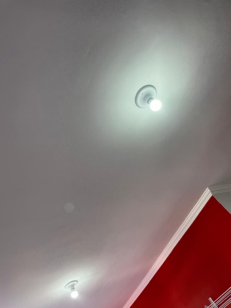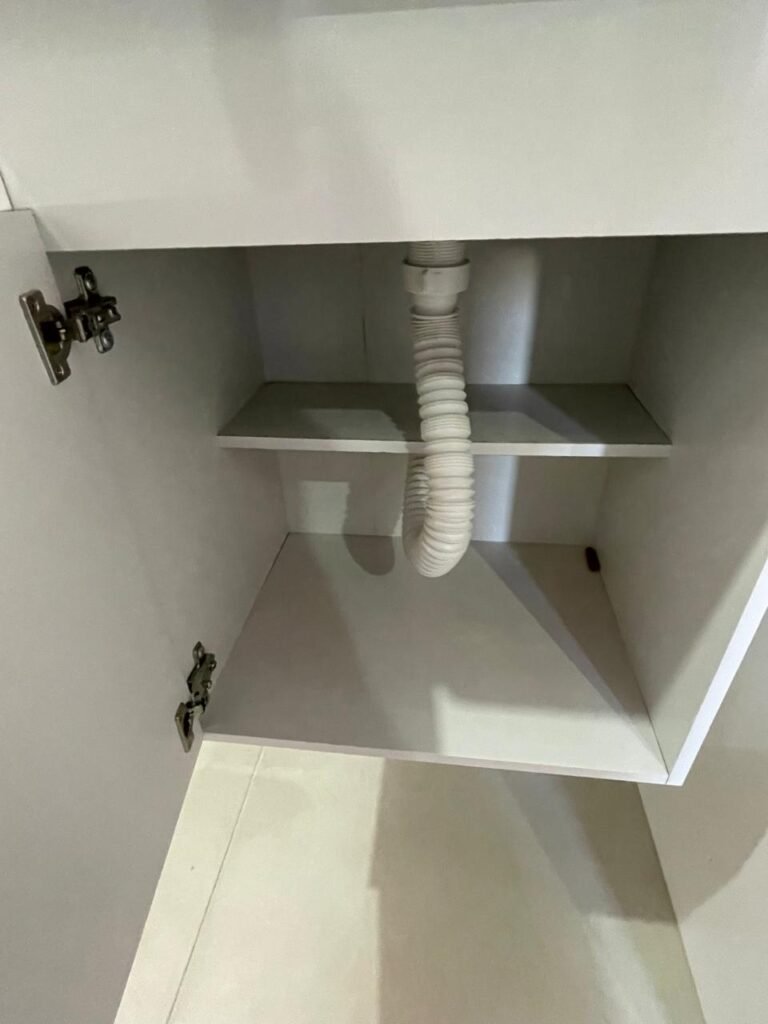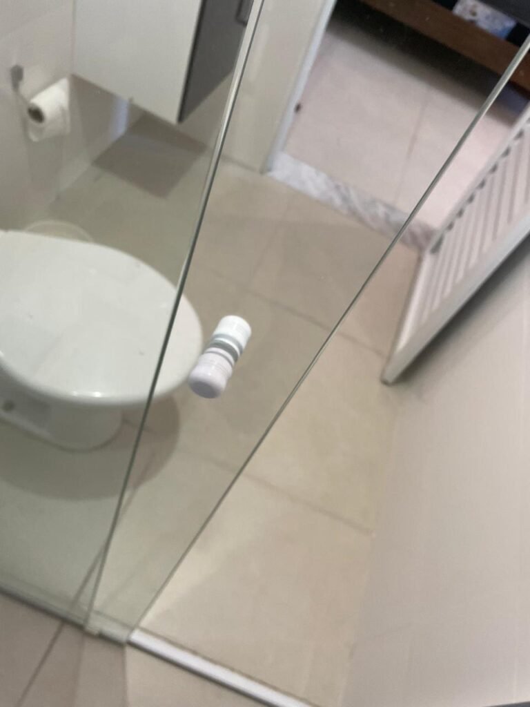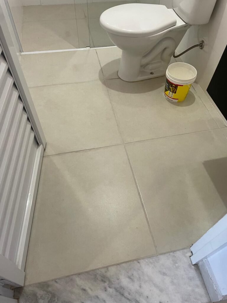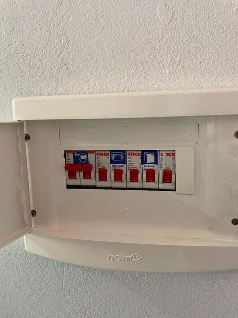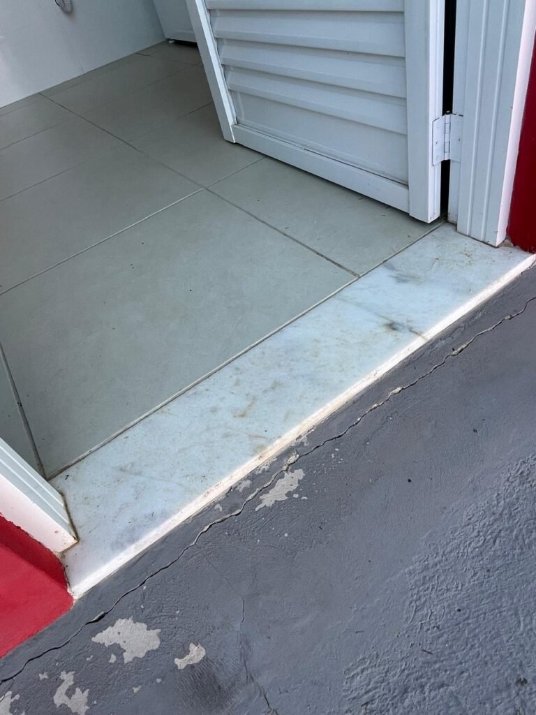Banheiro:- Porta em Alumínio Sasazaki com a pintura eletrostática na cor branco em ordem, com chaves em ordem, maçaneta e fechadura marca Stam em ordem, dobradiças em ordem, soleira mármore branco em ordem, piso porcelanato bege mesclado em ordem, quatro paredes com azulejos brancos meia parede em ordem, restante com a pintura na cor vermelho com manchas de infiltração restante em ordem, teto com a pintura na cor branco em ordem, gola de gesso com a pintura na cor branco em ordem, spot com lâmpada de led em ordem, uma janela basculante Alumínio Sasasaki com grades e com a pintura na cor branco em ordem, puxador em ordem, um vidro jateado em ordem, um kit de vaso sanitário e caia acoplada marca Deca em ordem, uma tampa de vaso marca Deca em ordem, uma pia sintética em ordem, um sifão branco desentupido em ordem, uma válvula de ralo de metal em ordem, uma torneira de bica móvel em ordem, uma tampa em ordem, um gabinete MDF branco marca MGM contendo uma porta de abrir com a pintura na cor preta em ordem, com um puxador em ordem, com duas dobradiças em ordem, uma espelheira para banheiro MDF na cor branco em ordem, com uma prateleira de vidro em ordem, uma saboneteira de inox em ordem, dois porta toalhas de inox em ordem, um porta toalhas de banheiro de inox em ordem, um porta papel higiênico inox em ordem, uma lixeira banheiro em ordem, um Box blindex com duas folhas sendo uma fixa e outra de correr em ordem, um chuveiro 220 v marca Lorenzetti completo em ordem, um registro marca Deca em ordem, uma canopla marca Deca em ordem, um ralo de inox desentupido em ordem, uma cantoneira plástico para porta shampoo em ordem, um spot com lâmpada de led em ordem, um espelho com módulo duplo de energia e luz marca Margirus completo em ordem, uma caixa distribuição de energia de embutir marca Tigre com tampa em ordem, sete djusntores marca Steck em ordem.