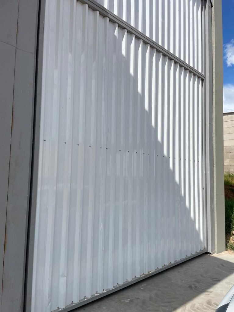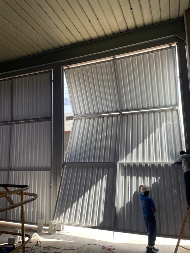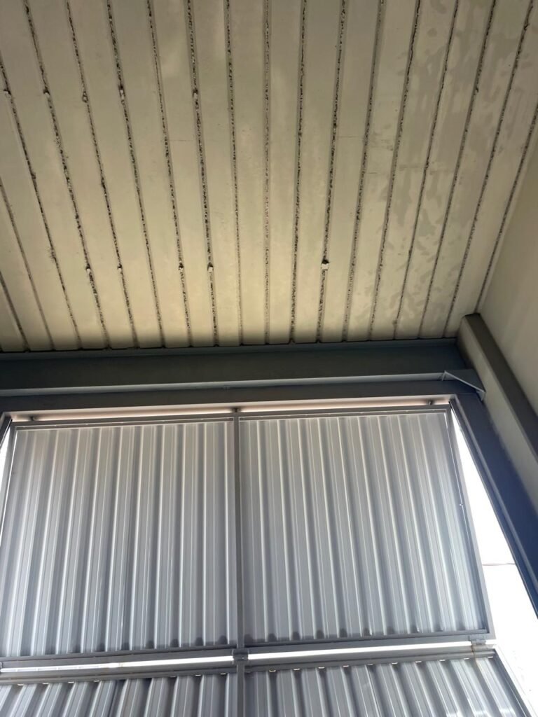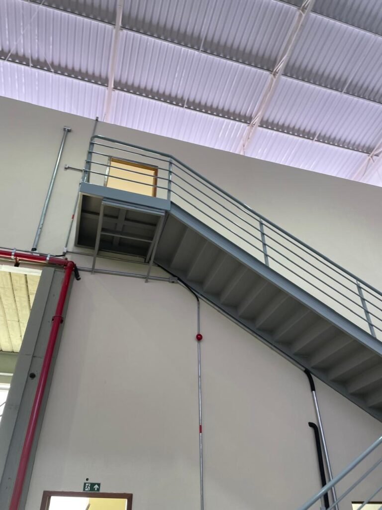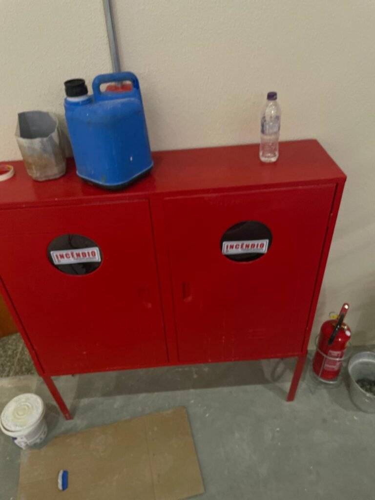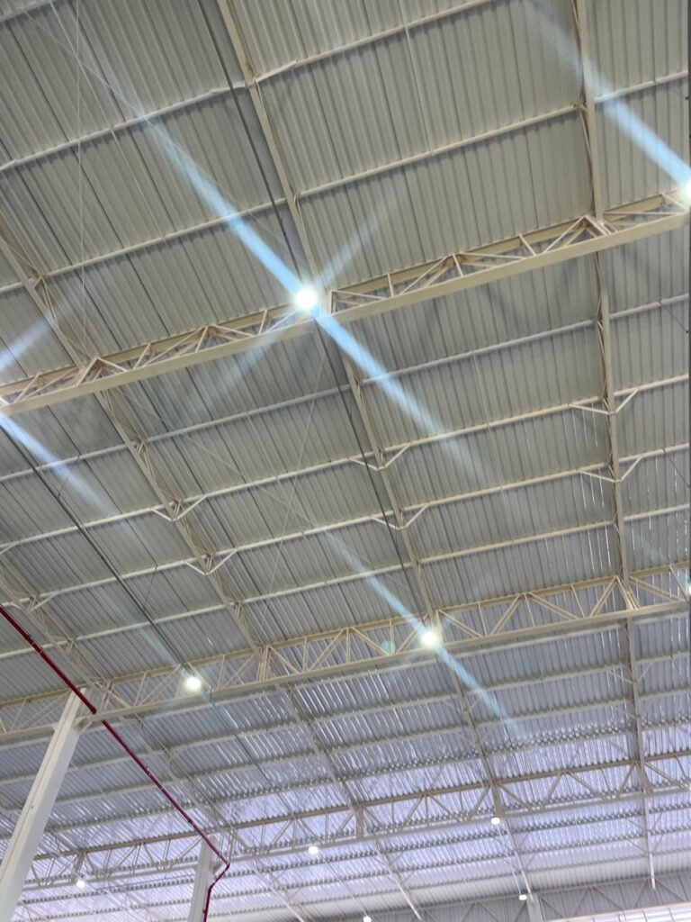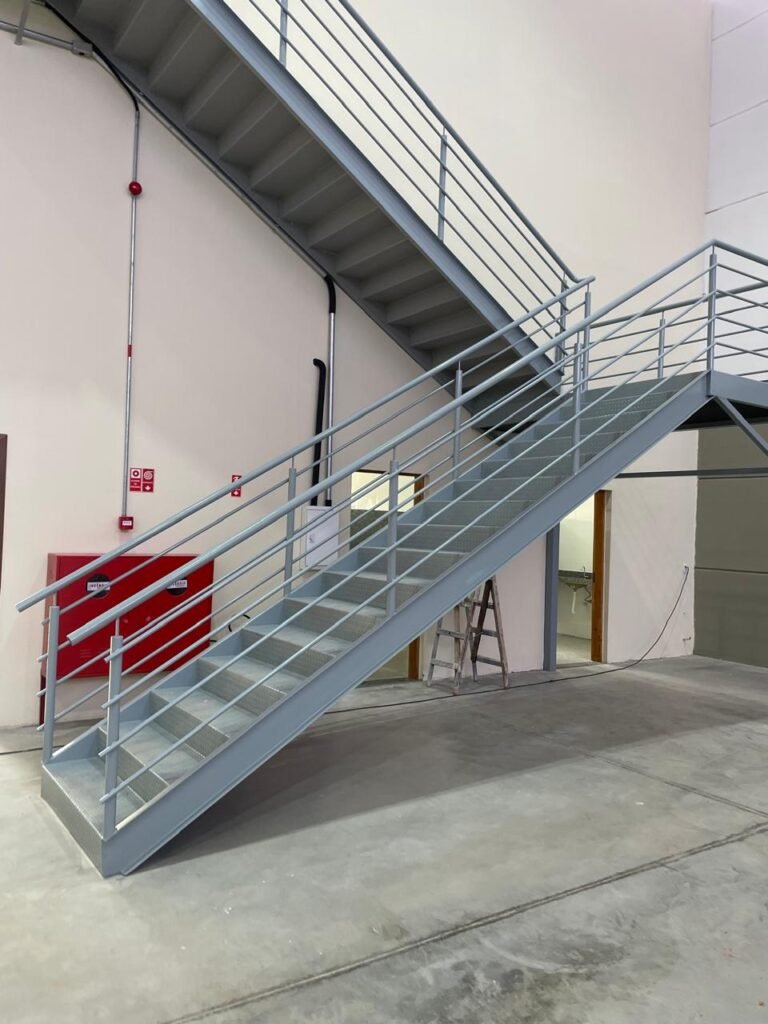 INTERIOR GALPÕES -: Piso em concreto usinado estrutural novo e em ordem, 06 guarda corpos com pintura na cor amarela nova e em ordem, paredes com pintura 1/2 na cor concreto nova e em ordem, restante 2/2 na cor branco neve nova e em ordem, 01 sensor de presença em ordem, estrutura metálica do telhado com telhas galvanizadas novas e em ordem, 30 luminárias de de 300w com led em ordem, 06 luminárias de emergência em ordem, 03 sistemas lineares de incêndio em ordem, 03 caixas duplas de hidrante em ordem, 08 extintores na validade e em ordem, sendo eles, 04 de água e 04 de pó químico BC, 02 portas sociais em chapa dobrada e com fechamento em telhas galvanizadas cor branco em ordem, 01 fechadura em ordem com chave, 02 escadas com guarda corpos novas e em ordem, com pintura na cor cinza médio nova e em ordem, 02 caixas de distruibuição de disjuntores, com tampas e fechaduras em ordem, sendo eles, 01 marca Steck SD C63 3P e 08 marca Elitek ED6 2P em ordem da primeira caixa (galpão 05), e na outra (galpão 06) sendo idêntica, 02 espelhos de luz com 02 tomadas em ordem.