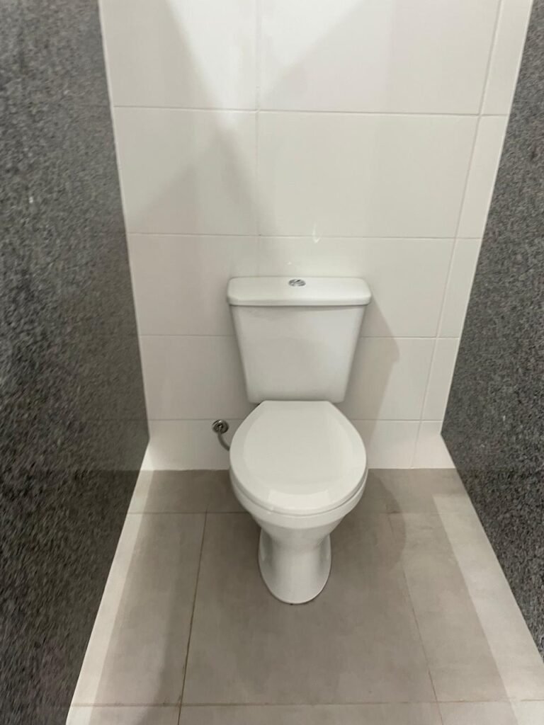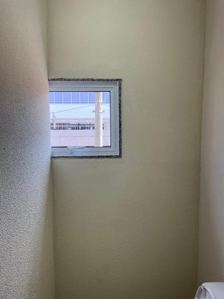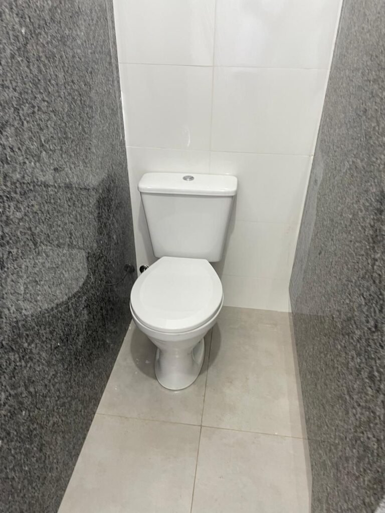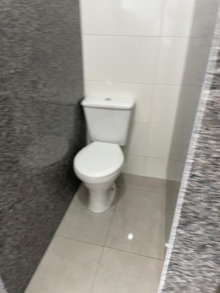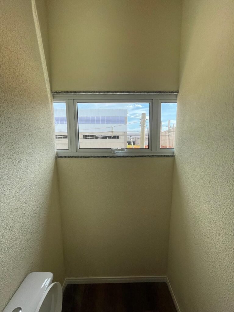 W.C 02 (05) -: 01 porta de madeira envernizada nova em ordem, com maçanetas em ordem e chave embutida, piso revestido de laminado novo e em ordem, rodapés revestidos de poliestireno na cor branco em ordem, paredes com grafiato na cor palha nova em ordem, 01 pia com coluna de cerâmica na cor branco em ordem, 01 torneira em inox nova e em ordem, 01 conjunto sanitário marca Icasa, novo e em ordem, 01 interruptor em ordem, 01 vitrô basculante em ordem, com 01 vidro temperado marca Blindex novo em ordem, com 01 fechadura em ordem, 01 luminária plafon com led em ordem, 01 canopla em inox de registro em ordem.