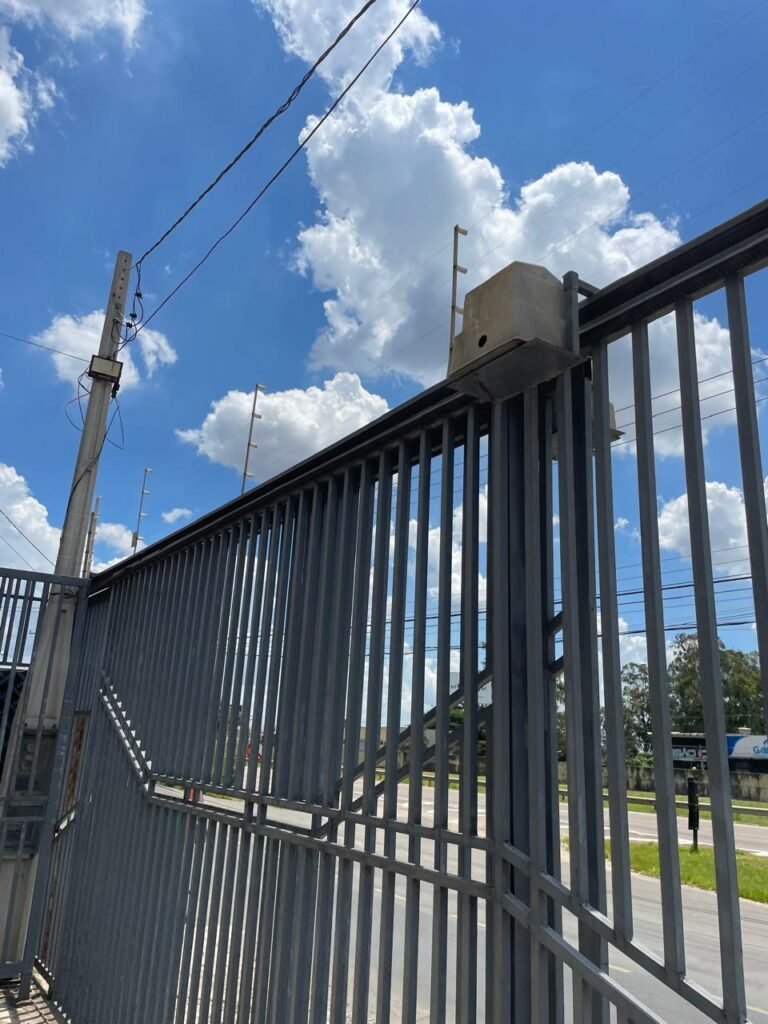 GARAGEM-: 02 portões deslizantes de ferro com pintura na cor cinza com desgastes naturais, com 01 fechadura em cada em ordem, 01 deles com 02 puxadores e o outro com apenas 01, com 01 motor elétrico em cada e em ordem, 01 porta social de ferro com pintura na cor cinza com desgastes naturais, com 01 fechadura start em ordem e com chaves, 01 caixa de correspondências de ferro em ordem, 01 interfone não testado, cerca elétrica com 04 fios em ordem, piso de concreto com pintura na cor cinza com desgastes naturais, com rachaduras e descasques pela extensão, paredes laterais revestidas de pisos frios cerâmico com desgastes naturais, com partes faltando e restante em barras de ferro com pintura na cor cinza com desgastes naturais, 01 quadro de hidrômetro padrão Sanasa, com tampa e lacre em ordem, 01 quadro de medidor elétrico padrão CPFL, com tampa e lacre em ordem, ambos os quadros tem barras de ferro de proteção com pintura na cor cinza com desgastes naturais e restante em ordem. 01 refletor de led não testado, escada de alvenaria com 04 degraus com fitas antiderrapantes, 01 guarda corpo de ferro com pintura na cor cinza com desgastes natural e restante em ordem, parede do barracão com pintura na cor cinza com faixa na cor branco neve com desgastes naturais, manchas, descasques e restante em ordem, rodapé revestido de pisos frio cerâmico em ordem, dígitos em ferro dourado “3-2-7-9” em ordem, 01 toldo de acrílico e esquadrias na cor preto, com desgastes naturais e restante em ordem, 01 estrutura para condensador de alvenaria, 01 condensador de ar condicionado em ordem, 05 grades de ferro com tela de proteção em ordem.