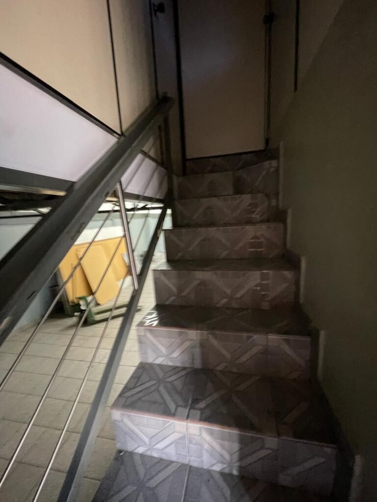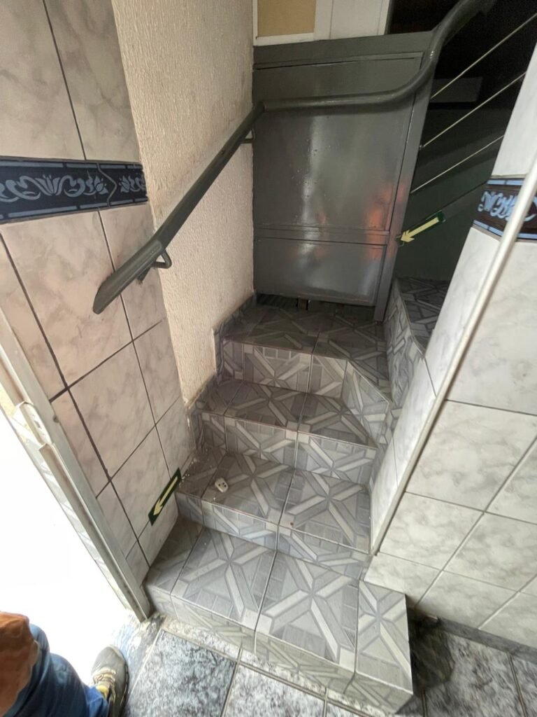 SALA SUPERIOR 01 -:01 escada revestida de frio cerâmico em ordem, corrimão com pintura na cor cinza em ordem, 01 porta de mdf com maçaneta em ordem, 01 luminaria em ordem, 01 espelho de luz com interruptor em ordem, 01 janela com esquedria de ferro na cor preta em ordem, 01 vidros lisos em ordem, 02 entrada para fio de dados, 02 espelho cm 02 tomadas , 01 espelho com 01 tomada, 01 sensor não testado.