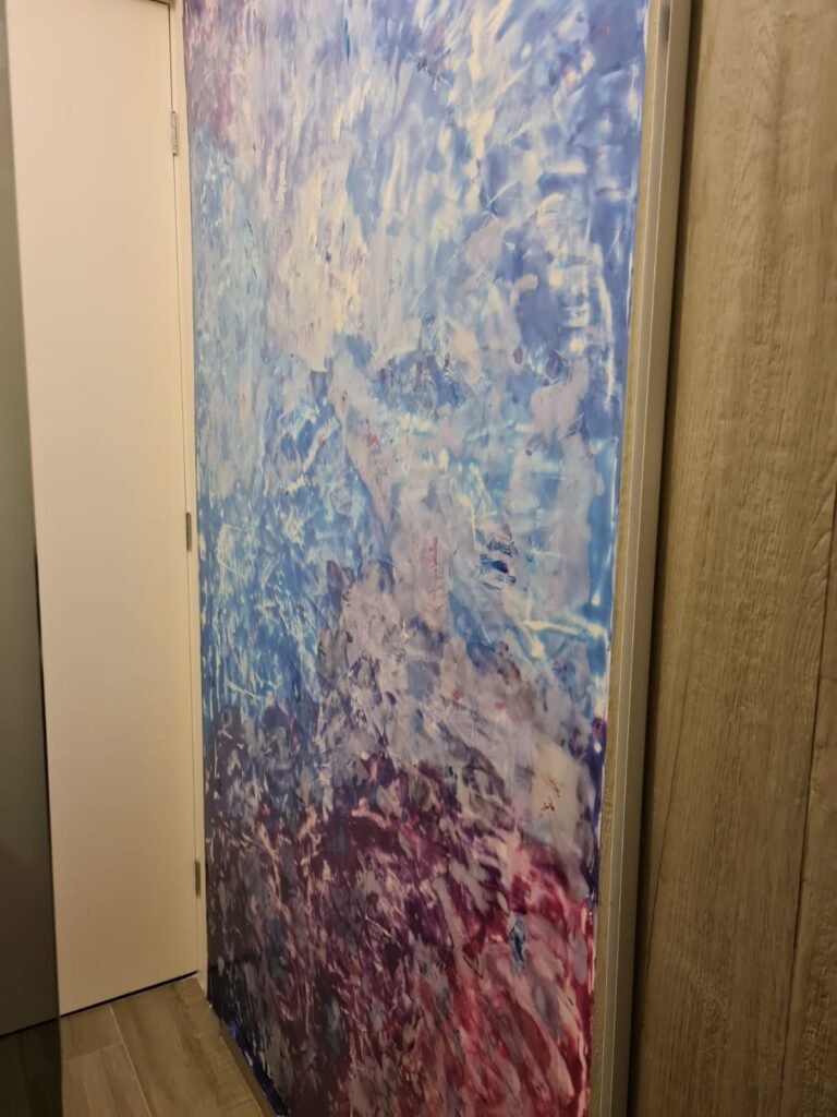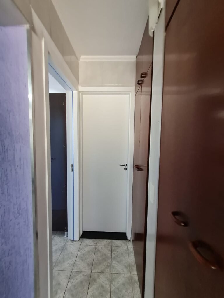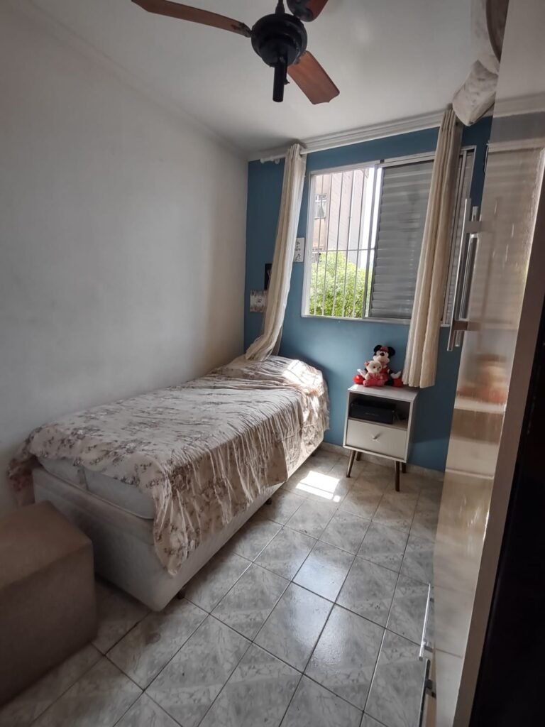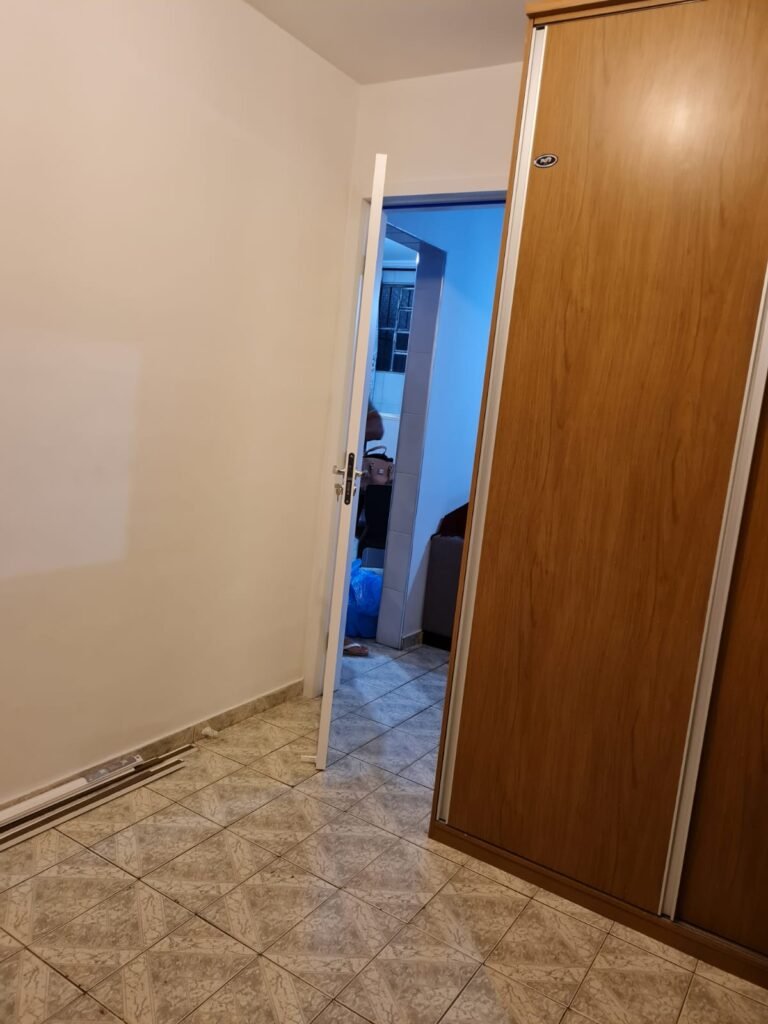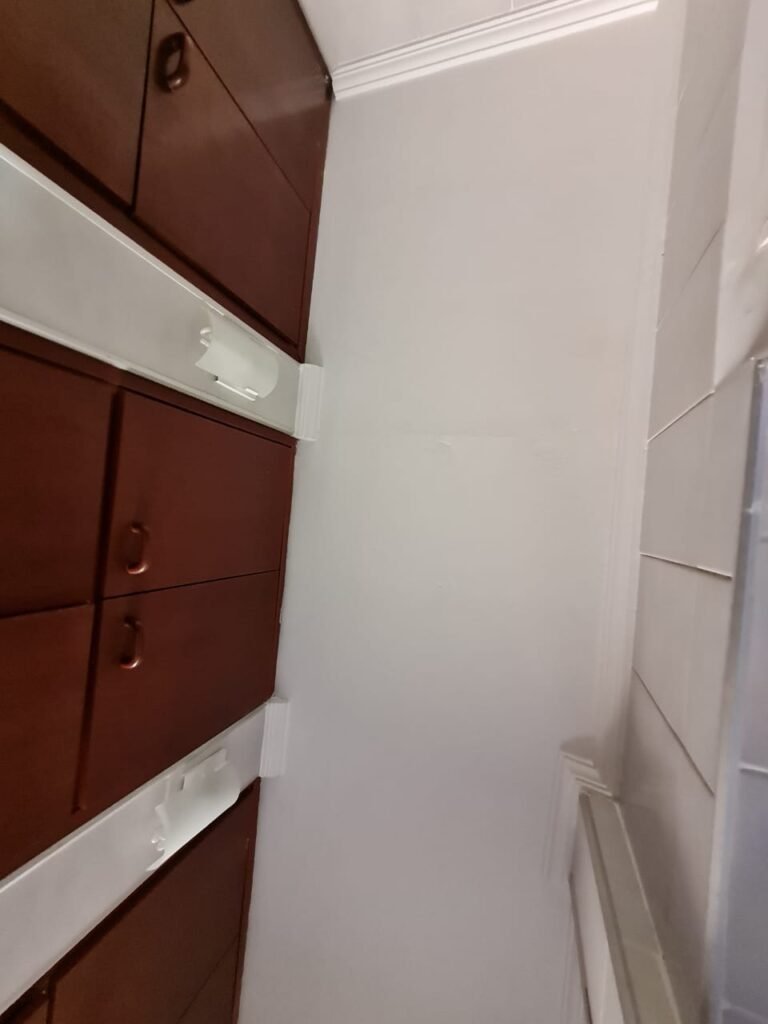Quarto:- Piso frio cerâmico mesclado com desgaste natural do tempo restante em ordem, rodapé em ordem, porta de madeira concremwood 75 cm MDF na cor branco com guarnição nova em ordem, fixador para travar a porta na parede de plástico em ordem, paredes com pintura nova na cor branco neve Coral em ordem, 01 parede com pintura nova na cor azul inverno fosco Coral em ordem, teto com a pintura nova na cor branco neve Coral em ordem, golas de gesso com pintura na cor branco neve em ordem, 01 janela de alumínio de correr com 01 folha de vidro em ordem, 01 ventilador de teto com 01 lâmpada fluorescente em ordem, 01 interruptor para ventilador e lâmpada e ordem, 02 interruptores de energia com espelho em ordem.