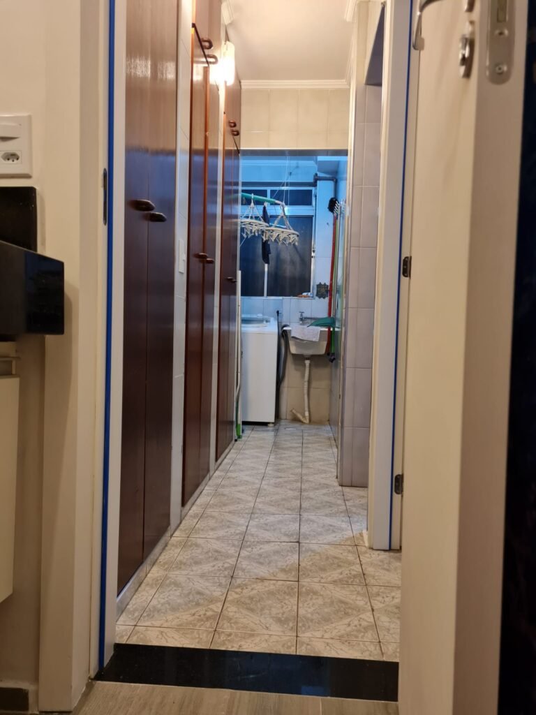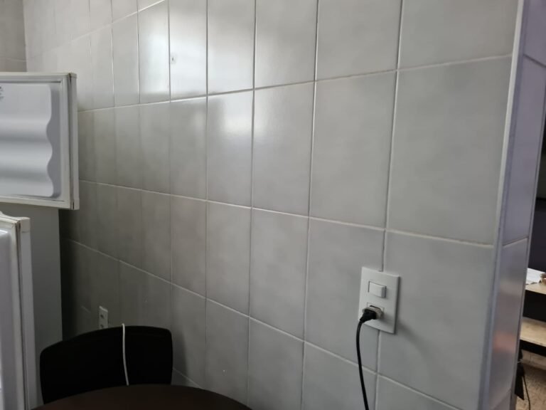 Área de serviço:- Piso frio cerâmico mesclado com desgaste natural do tempo restante em ordem, paredes com revestimento cerâmico cinza em ordem, teto com pintura na cor branco neve e gola de gesso em ordem, 01 lustre com lâmpada fluorescente compacta em ordem, 02 luminárias tipo arandelas plafon com 02 lâmpadas fluorescentes em ordem, 01 janela de alumínio com duas folhas de correr em ordem, 02 folhas de vidro de abrir em ordem, 02 folhas de vidro de correr enroscando o restante em ordem, 01 armário embutido com 12 portas de madeira, com 12 puxadores em ordem, 30 dobradiças em ordem,13 prateleiras em ordem, 02 gavetas em ordem,01 tanque sintético desentupido com desgaste natural do tempo restante em ordem, 01 torneira dupla em ordem, 02 interruptores com espelho em ordem, 02 tomadas para energia com espelho em ordem, 01 ralo de plástico desentupido em ordem.