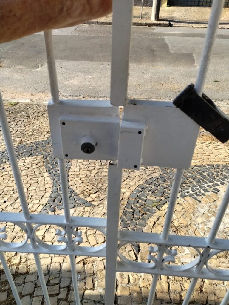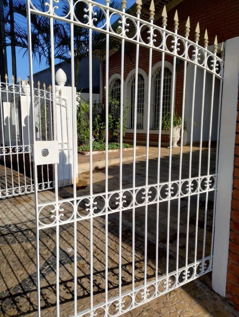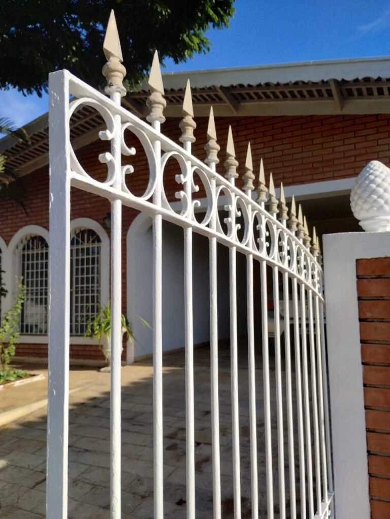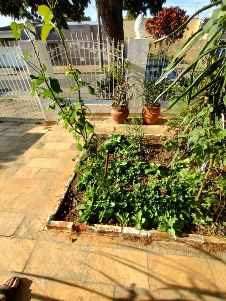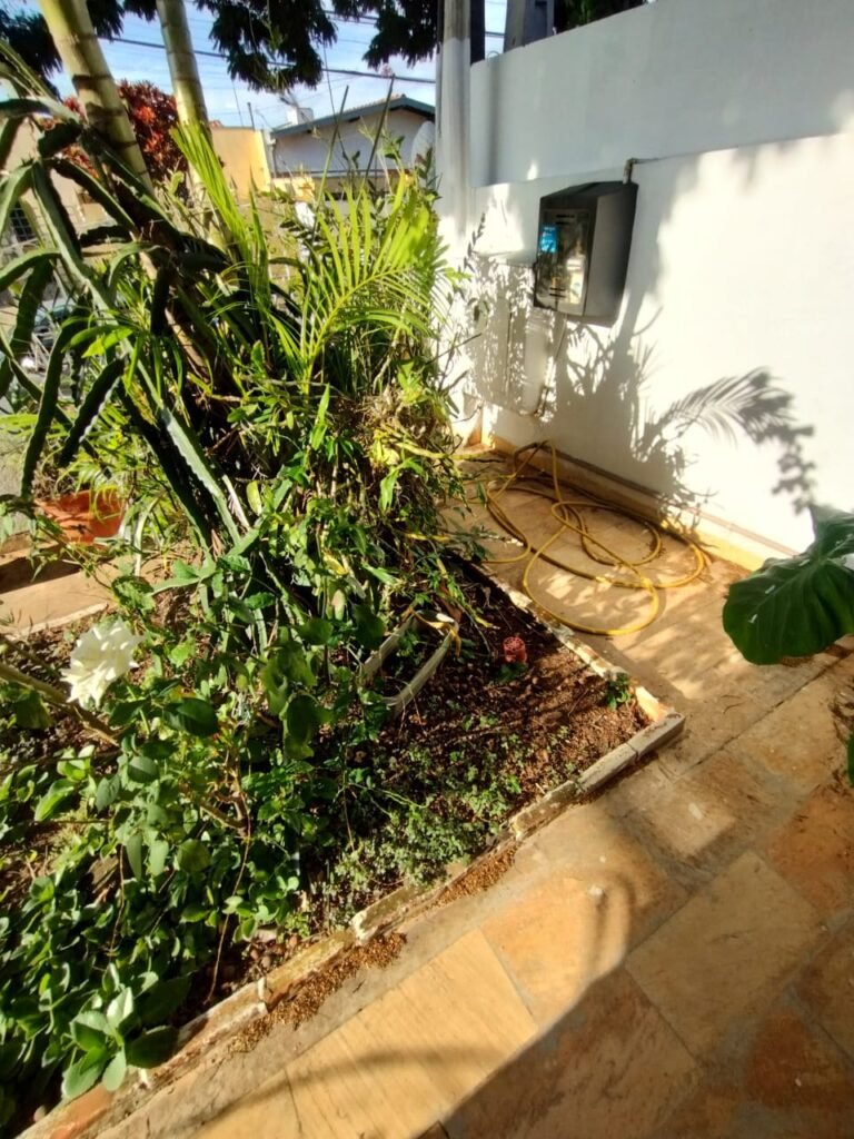 FACHADA:- Calçada em paralelepípedo com desgaste natural, faltando peças em volta da árvore e restante em ordem, portão com grades de ferro de abrir com a pintura nova na cor branco e em ordem, fechadura quebra e sem funcionamento, trava para portão com cadeado tranca e chaves em ordem, 03 grades de aço com a pintura nova na cor branco em ordem, 03 pinhas médias decorativas em cimento instaladas nos pilares do portão com a pintura nova na cor branco na cor branco e restante em ordem, muro em tijolinho a vista com desgaste natural, piso em Pedra São Tomé com desgaste natural e restante em ordem, paredes com a pintura nova na cor, teto com a pintura na cor branco em ordem, gola de gesso com a pintura na cor branco em ordem, 03 arandelas de jardim em ferro com vidros em ordem, sendo que 02 estão com as lâmpadas queimadas e 01 sem lâmpada e sem funcionamento, 01 jardim com plantas naturais com acabamento em madeira com a pintura na cor branco com cupim, 01 torneira de rosca de jardim em ordem, 01 caixa de correio fixada na grade do portão em ordem, 01 lixeira de ferro chumbada na caçada com a pintura na cor branco com desgastes naturais, ferrugem e está torta, relógio da Sanasa em ordem, relógio CPFL em ordem, 01 relógio da Comgás em ordem, 01 relógio com disjuntores bipolar Steck em ordem, 01 extensão fixada ao relógio com 05 saídas em ordem, 01 registro de água com tampa em ordem.