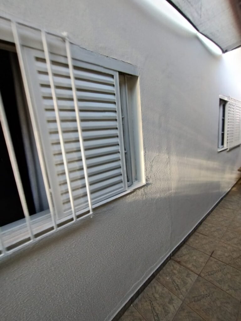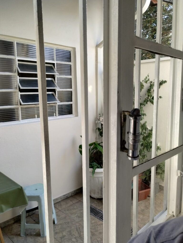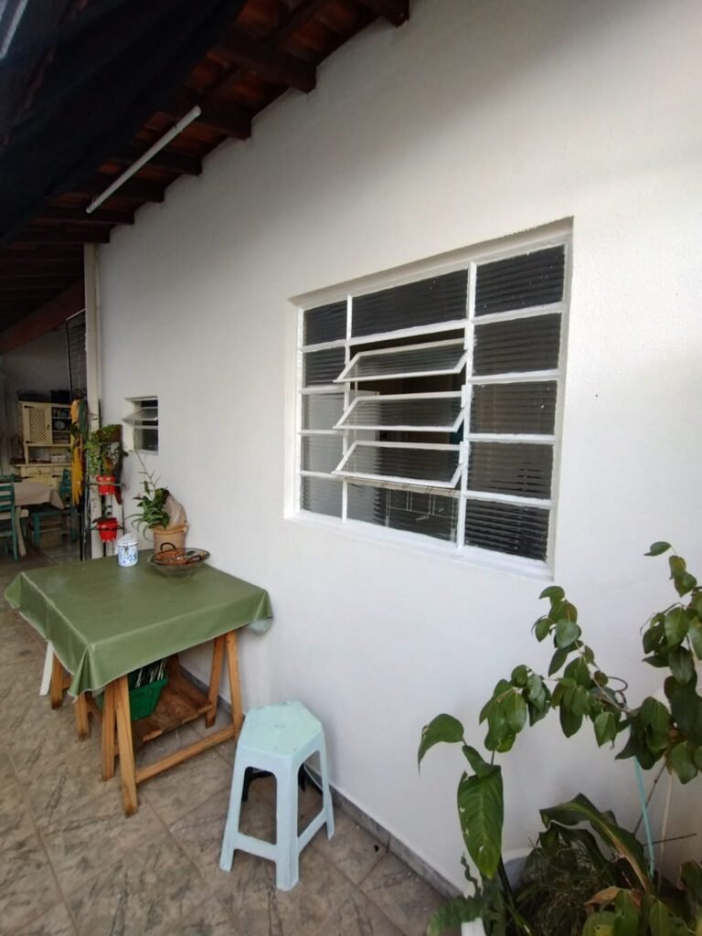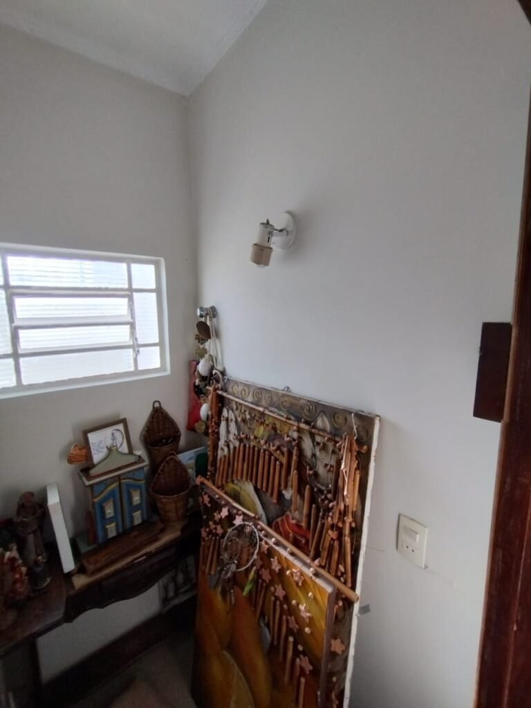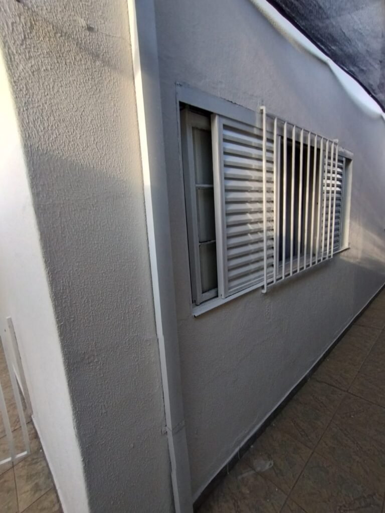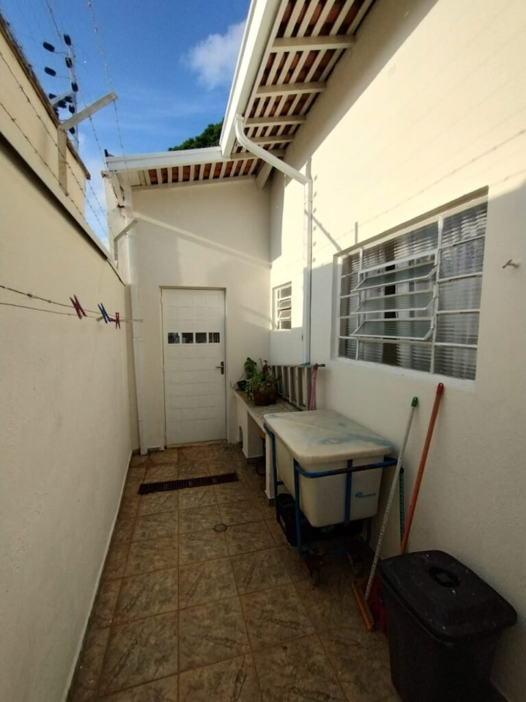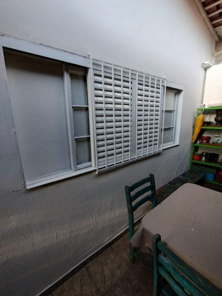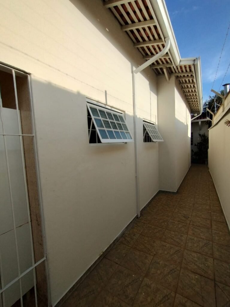 CORREDOR:- Piso cerâmico antiderrapante mesclado em ordem, rodapés em ordem, paredes com a pintura nova na cor branco em ordem, uma casinha rebocada e pintada, com parte superior com revestimento cerâmico antiderrapante em ordem, piso com mancha de ferrugem em 04 peças o restante em ordem, 01 botijão de gás com mangueira e registro em ordem, uma saída para gás (Comgás) em ordem, 01 porta de ferro com a pintura na cor branco em ordem, maçaneta em ordem, dobradiças em ordem, chave em ordem, 40 vidros pintados na cor branco, 041 vidros incolor (sem a pintura) em ordem, calha com a pintura na cor branco desentupida em ordem, 01 grelha com coletor desentupida em ordem, 02 ralos desentupidos em ordem, cerca em todo entorno do muro com arame esfarpado em ordem, 01 portãozinho ferro coma pintura na cor branco em ordem, trinco em ordem. Telhado com madeiramento aparente com a pintura na cor branco em ordem, 03 luminárias ferro de jardim com 02 lâmpada de led em ordem, 01 alçapão com porta de ferro e trinco em ordem.