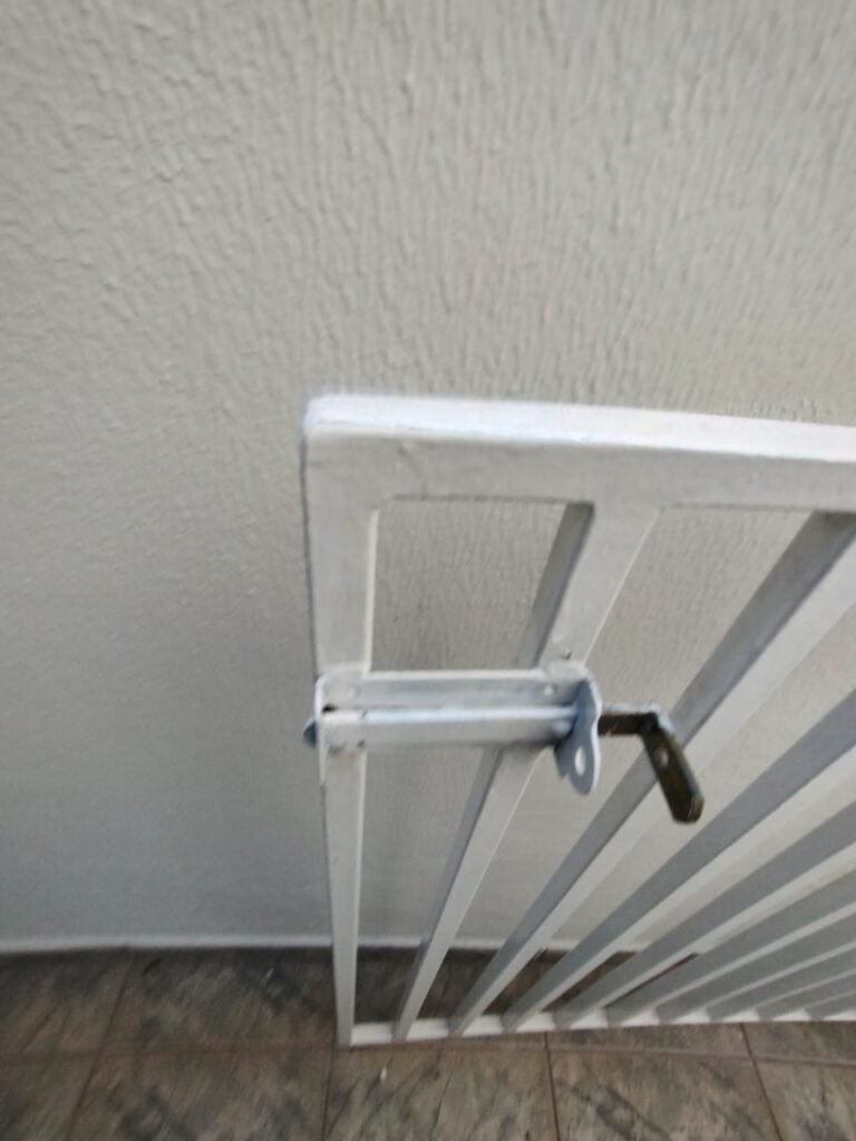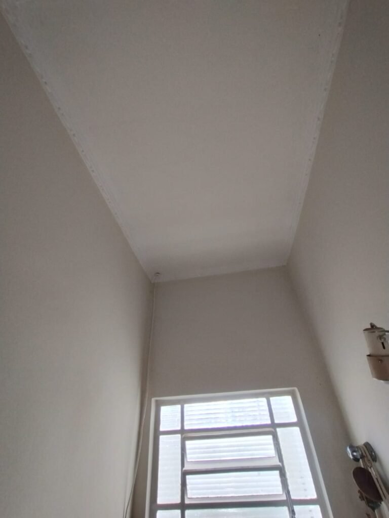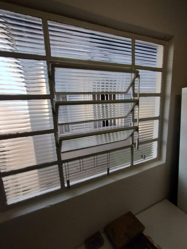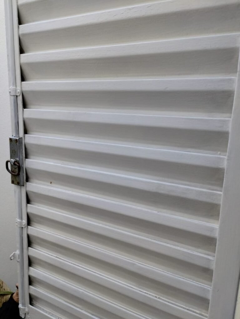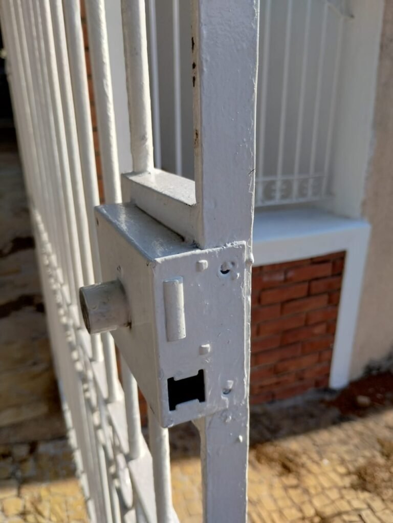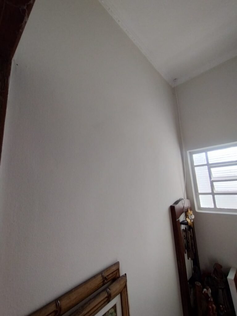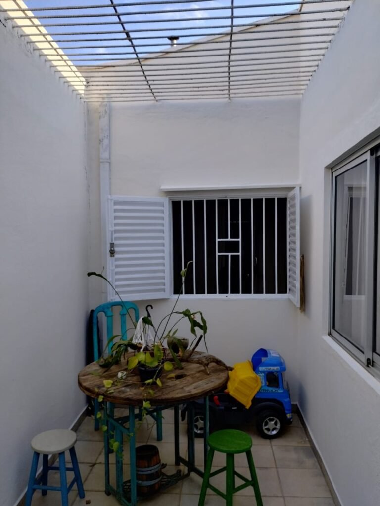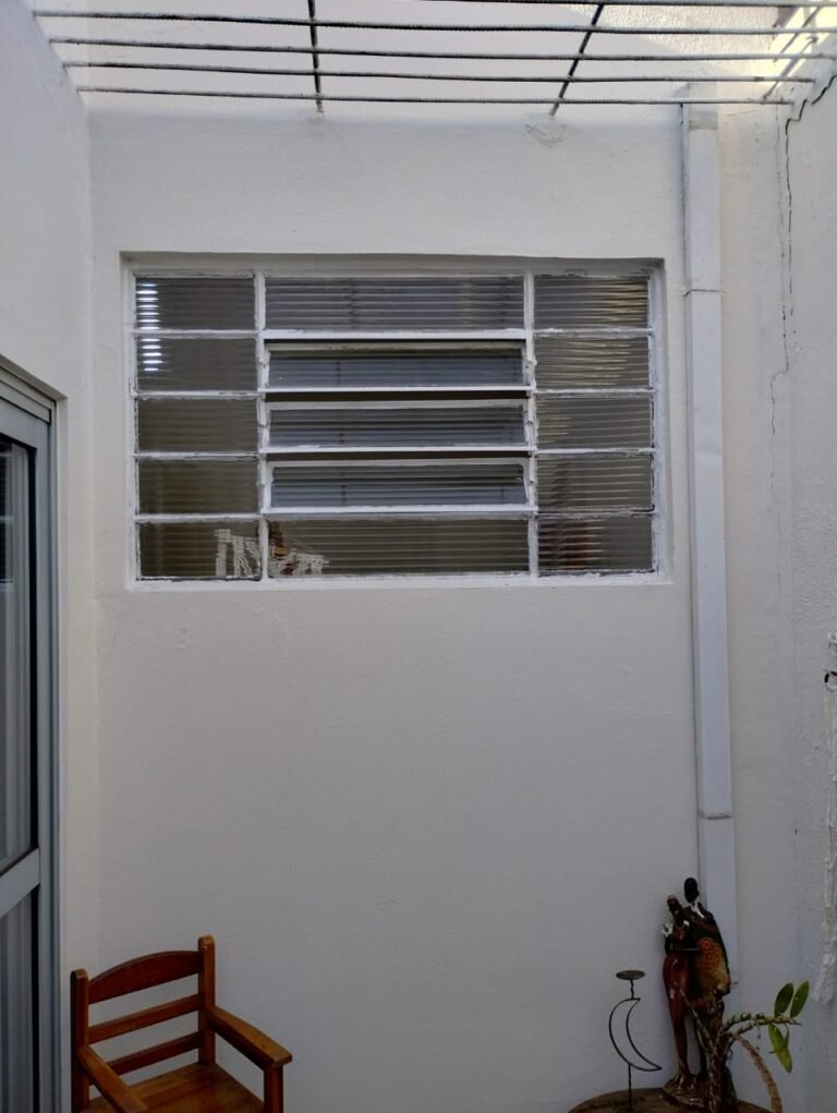 CORREDOR:- Piso cerâmico antiderrapante mesclado em ordem, rodapés em ordem, paredes com a pintura nova na cor branco em ordem, uma casinha rebocada e pintada, com parte superior com revestimento cerâmico antiderrapante em ordem, piso com mancha de ferrugem em 04 peças o restante em ordem, 01 botijão de gás com mangueira e registro em ordem, uma saída para gás (Comgás) em ordem, 01 porta de ferro com a pintura na cor branco em ordem, maçaneta em ordem, dobradiças em ordem, chave em ordem, 40 vidros pintados na cor branco, 041 vidros incolor (sem a pintura) em ordem, calha com a pintura na cor branco desentupida em ordem, 01 grelha com coletor desentupida em ordem, 02 ralos desentupidos em ordem, cerca em todo entorno do muro com arame esfarpado em ordem, 01 portãozinho ferro coma pintura na cor branco em ordem, trinco em ordem. Telhado com madeiramento aparente com a pintura na cor branco em ordem, 03 luminárias ferro de jardim com 02 lâmpada de led em ordem, 01 alçapão com porta de ferro e trinco em ordem.