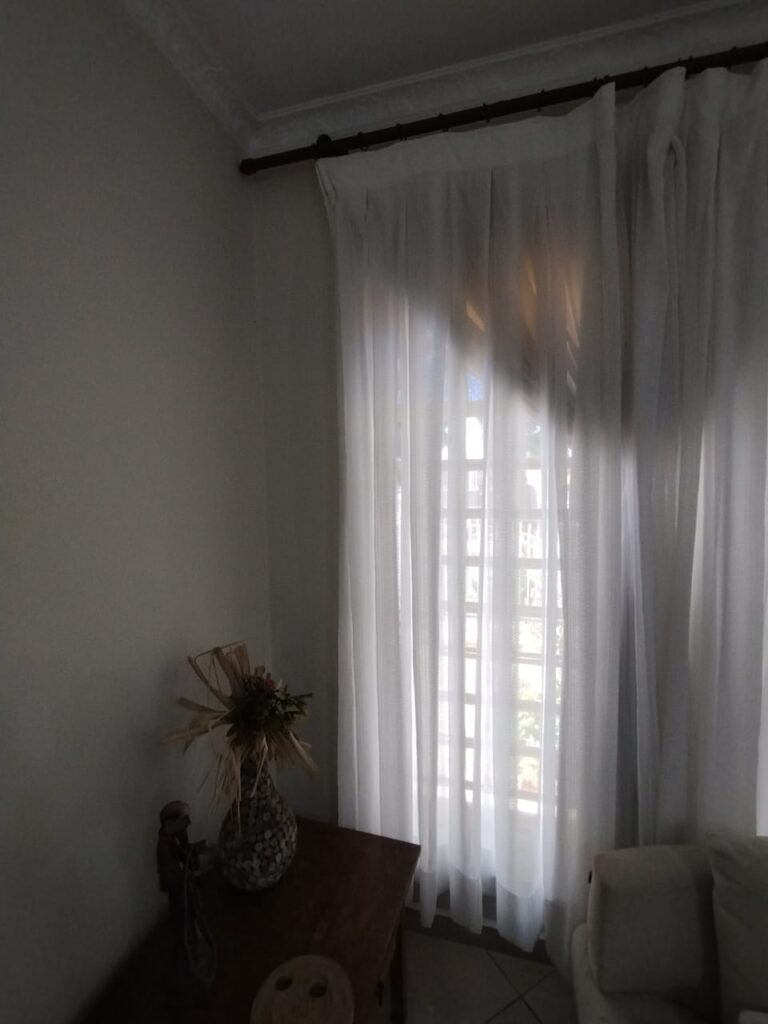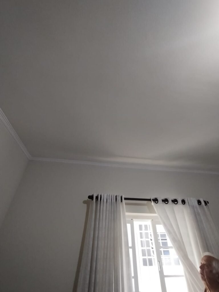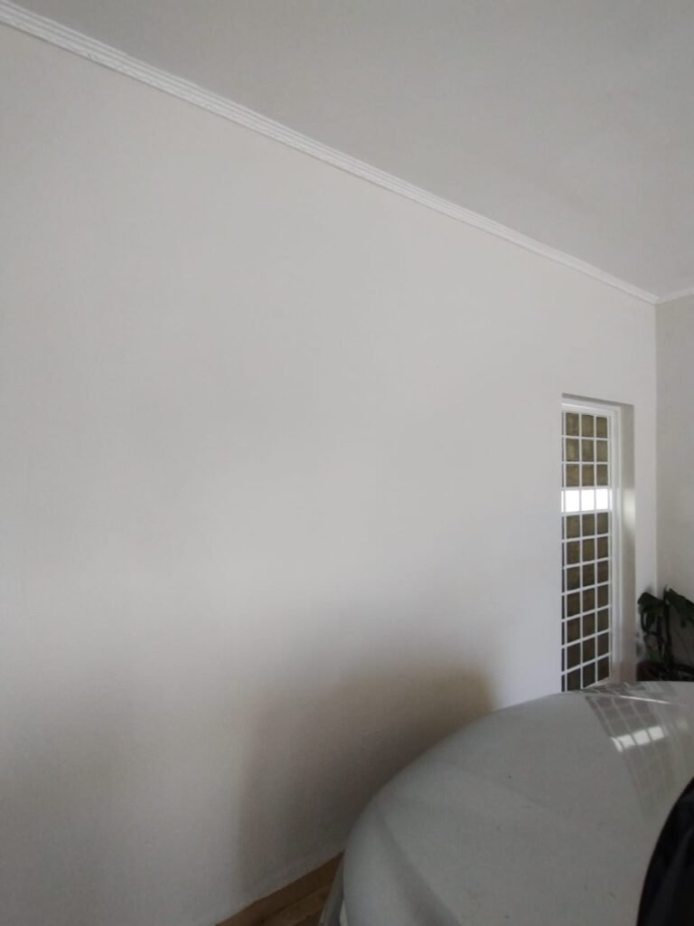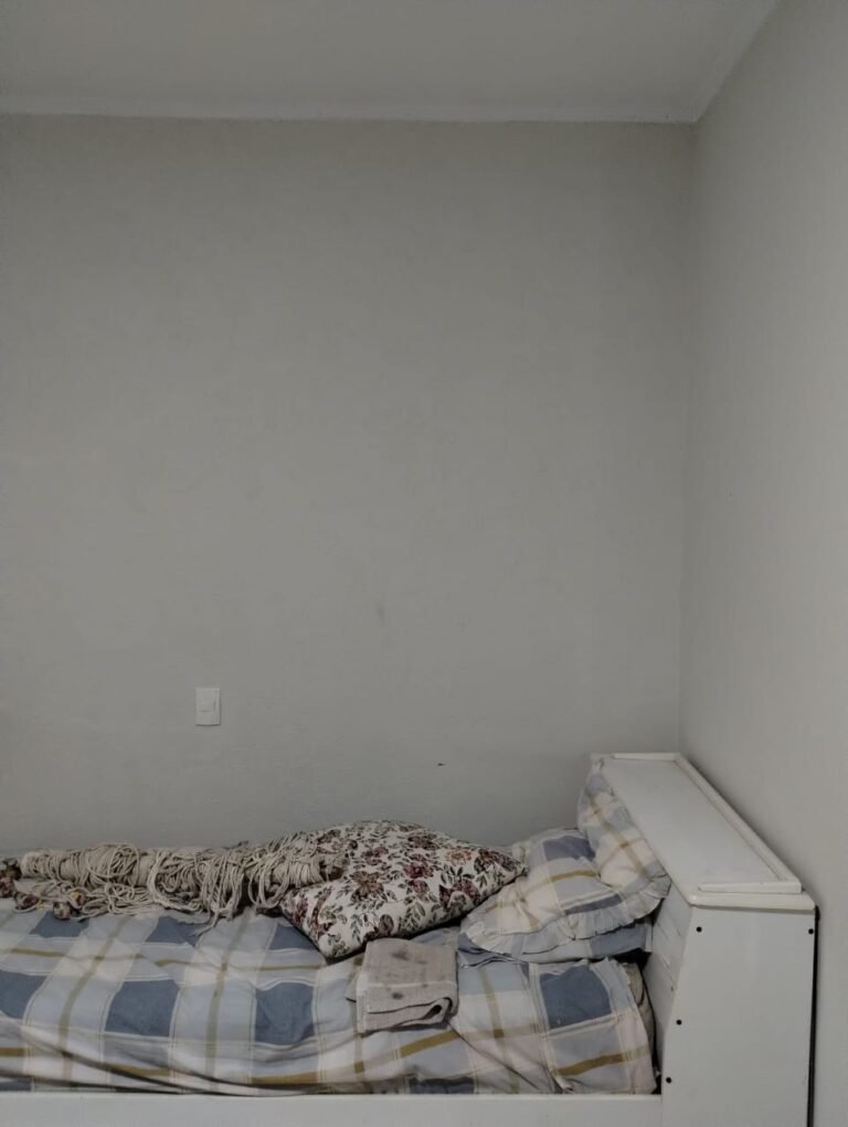QUARTO 1:- Piso cerâmico porcelanato bege em ordem, rodapés em ordem, soleira em mármore Travertino em ordem, paredes com a pintura nova na cor branco em ordem, teto com a pintura na cor branco, gola de gesso com a pintura na cor branco em ordem, 01 porta de madeira em ordem, guarnição em ambos os lados em ordem, chave em ordem, dobradiça em ordem, 01 espelho na parede do quarto em ordem, janela veneziana de ferro com grade de correr em ordem, pintura na cor branco em ordem, uma trava solta a outra fixa o restante em ordem, trava que esta solta esta no parapeito da janela, 06 vidros incolor em ordem, 01 guarda roupas embutido em madeira em ordem, 12 portas em madeira com a pintura na cor branco em ordem, 12 puxadores, 30 dobradiças em ordem, 05 gavetas em ordem, 03 maleiros em ordem, 03 cabideiros em ordem, 06 prateleiras em madeira em ordem, 01 sapateira embutida com 06 divisórias fixas em ordem, 01 varão em madeira em ordem, 01 cortina em tecido em ordem, 02 interruptor em ordem, 02 tomada em ordem, 01 spot em ordem, 01 lâmpada de led em ordem.