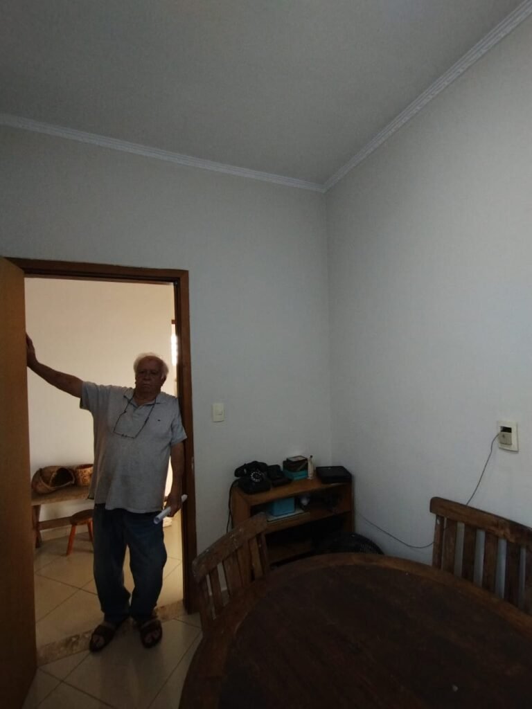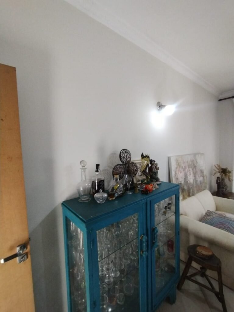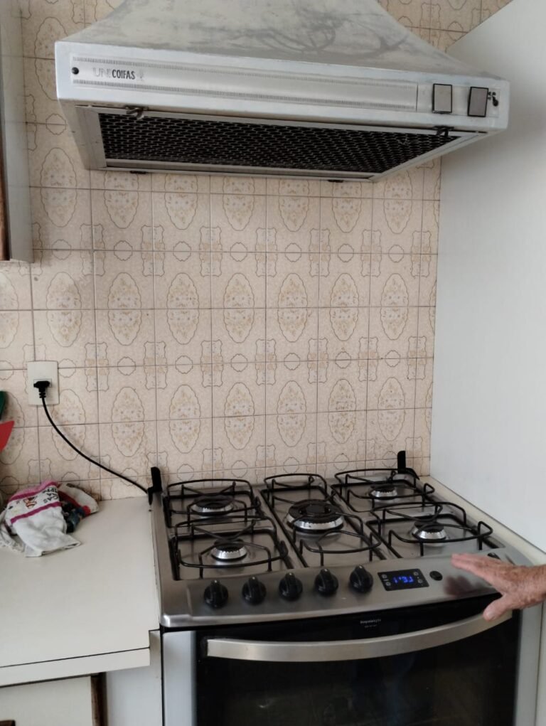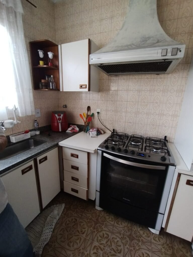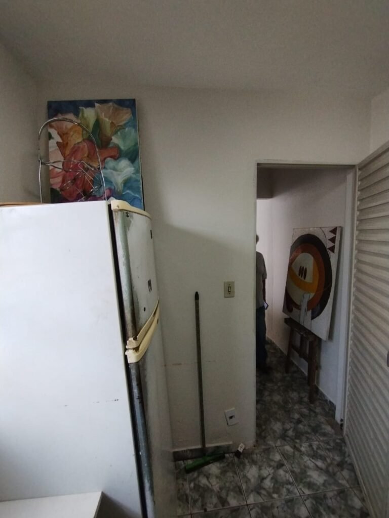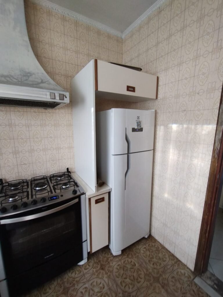 COZINHA:- Piso cerâmico mesclado com desgaste natural do tempo o restante em ordem, soleira em mármore Travertino em ordem, paredes da cozinha com azulejos mesclados ate o teto em ordem, teto com a pintura na cor branco em ordem, gola de gesso com a pintura na cor branco em ordem, 02 luminárias tubulares Madri com reator acrílico listrado para 02 lâmpadas fluorescente em cada em ordem, 01 porta de madeira em ordem, guarnição em ambos os lados em ordem, maçaneta em ordem, chaves em ordem, dobradiças em ordem, 01 janela de ferro com a pintura na cor branco contendo 12 vidros incolor em ordem, 01 janela de ferro com a pintura na cor branco em ordem, contendo 15 vidros incolor em ordem, 01 varão de madeira em ordem, 01 cortina de cozinha rendada em ordem, 01 pia de granito com frontão em ordem, 02 torneiras de rosca em ordem, sifão a em ordem, 01 cuba inox desentupida em ordem, 01 Gabinete abaixo da pia em ordem, contendo 02 portas de madeira com a pintura na cor branco, com puxadores embutidos de madeira, acabamento nas laterais em madeira em ordem, 01 porta em madeira com 02 vidros em ordem, 01 puxador redondo em madeira em ordem, 06 dobradiças em ordem, 02 prateleiras em madeira em ordem, um balcão com quatro gavetas com algumas manchas no interior das gavetas o restante em ordem, gavetas com puxadores embutido em madeira com acabamento nas laterais em madeira ordem, um porta temperos de correr com prateleiras em madeira na cor branco sujo e desgastado, com puxador embutido em madeira em ordem, com acabamento nas laterais em madeira em ordem, 01 armário embutido superior de quina em madeira com contendo uma prateleira em madeira em ordem, uma porta em madeira na cor branco com puxador embutido em madeira em ordem, uma prateleira em madeira na cor branco em ordem, uma divisória fogão/geladeira em madeira na cor branco, um armário embutido em cima da de geladeira em madeira na cor branco com puxador embutido e acabamento nas laterais em madeira em ordem, com duas. Dobradiças em ordem, 01 fogão 04 bocas de embutir Brastemp De Ville com porta de vidro branca sem funcionamento, puxadores branco em ordem, forno com grades e com seu interior em perfeito estado e limpo em ordem, tampa de vidro do fogão em perfeito estado, 01 coifa suja, com lâmpada e ventilador sujos necessita manutenção, um armário embutido em madeira na cor branca com acabamento em suas laterais em madeira contendo um balcão em madeira na cor branco, 03 portas em madeira na cor branco com acabamento em madeira em suas laterais, com puxadores embutido em madeira, 06 dobradiças em ordem uma prateleira em ordem, 01 armário superior contendo 02 portas em madeira com dois vidros, duas prateleiras em ordem, com 02 puxadores em madeira embutido em ordem, um nicho organizador com prateleira em madeira, 01 armário em madeira na cor branca com acabamento em suas laterais em madeira em ordem, 01 armário para entrada do micro-ondas com uma saída de energia em ordem, uma bancada abre e fecha com puxador em madeira em ordem, 04 portas em madeira na cor branca com as suas laterais com acabamento em madeira em ordem, 08 dobradiças em ordem, duas prateleiras em madeira na cor branco em ordem, 04 puxadores embutidos em madeira em ordem, um acabamento vazado em madeira em ordem, 01 armário superior em madeira na cor branco com acabamento em suas laterais em madeira em ordem, com 01 puxado embutido em madeira em ordem, 04 dobradiças em ordem, 06 tomadas, 04 interruptores em ordem, 07 espelhos de luz, 02 registros em ordem, 01 porta de vidro de ferro em ordem, 12 vidros incolor em ordem, maçaneta em ordem, dobradiças em ordem, chave em ordem.