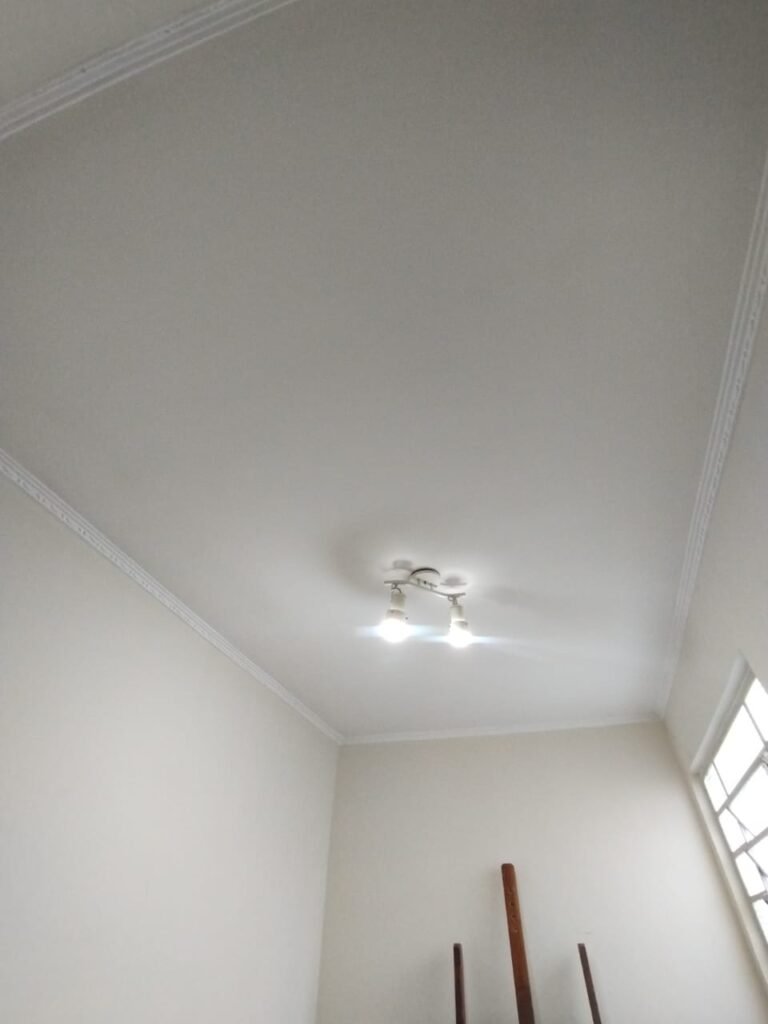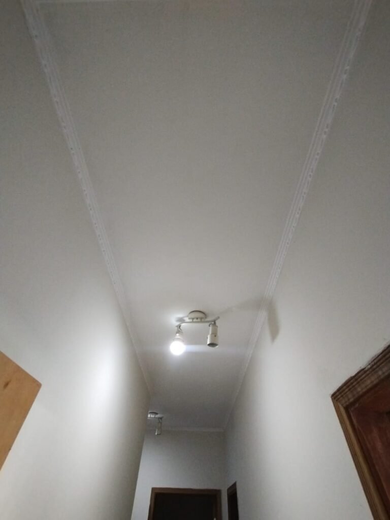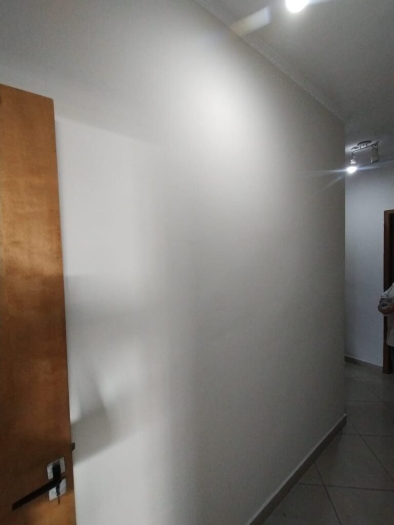 CORREDOR:- Piso cerâmico porcelanato bege em ordem, rodapés em ordem, paredes com a pintura nova na cor branco em ordem, teto com a pintura na cor branco, gola de gesso com a pintura na cor branco em ordem, 01 spot duplo de sobrepor com 01 lâmpada de led o restante em ordem.