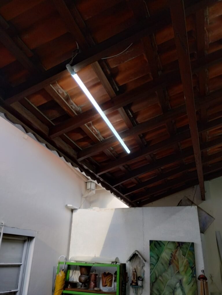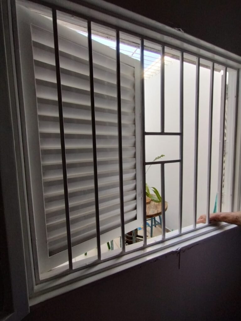 ÁREA DE LUZ:- Piso cerâmico com desgaste natural do tempo e restante em ordem, grades de ferro para fechar a área com a pintura nova na cor branco em ordem, calha desentupida com a pintura na cor branco em ordem, 01 grelha com coletor desentupida em ordem, paredes com a pintura nova na cor branco em ordem, 01 arandela de jardim com 01 lâmpada de led em ordem.