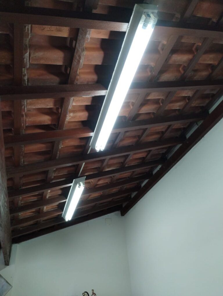 EDÍCULA:- Piso cerâmico mesclado antiderrapante em ordem, rodapés em ordem, paredes com a pintura na cor branco, manchas de infiltração, com desgaste natural e restante em ordem, vaso de jardim em cimento com a pintura na cor branco com base descascada o restante em ordem, 2 grelas com coletores desentupida em ordem, telhado em madeira com telhas em ordem, 02 luminárias tubulares com 04 lâmpadas fluorescente em ordem, calhas desentupidas com a pintura na cor branco em ordem, 01 tanque cerâmico na cor branco em ordem, 01 torneira de rosca em ordem, 01 válvula em ordem, base do tanque em cimento com revestimento cerâmico em ordem, 01 saída de esgoto para maquina de lavar desentupida em ordem, 02 saída de agua fechada em ordem.