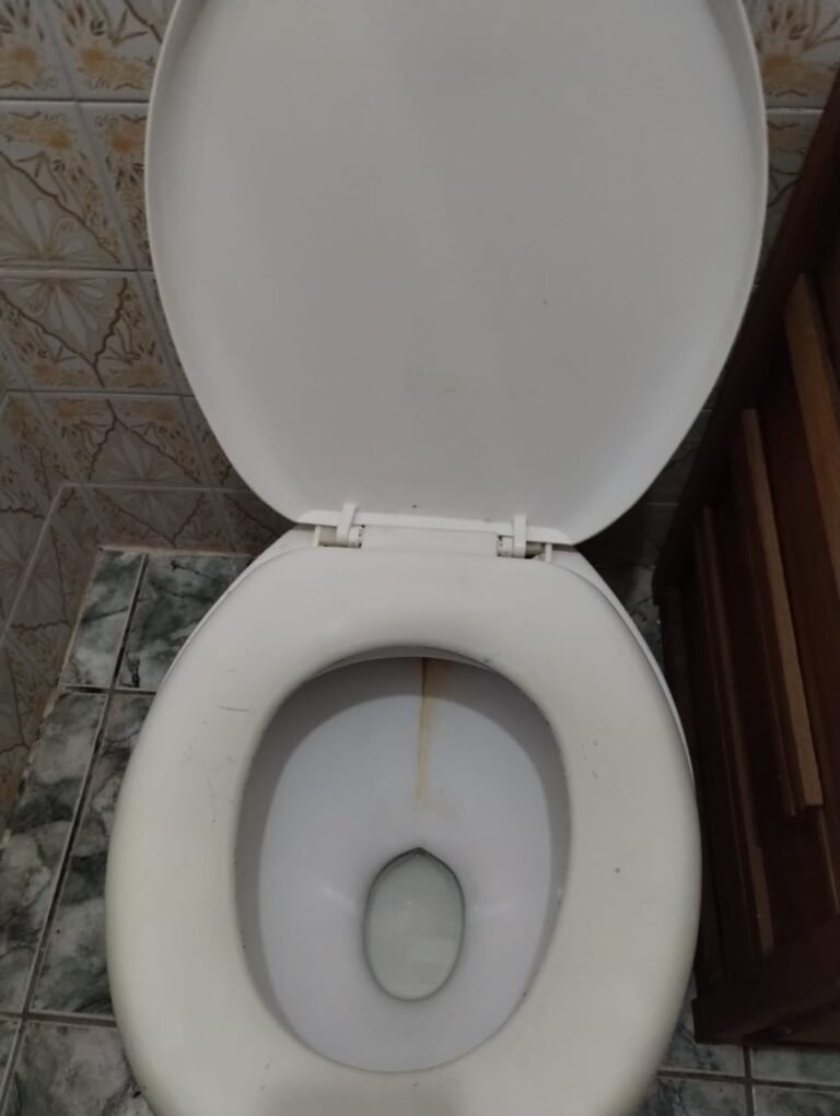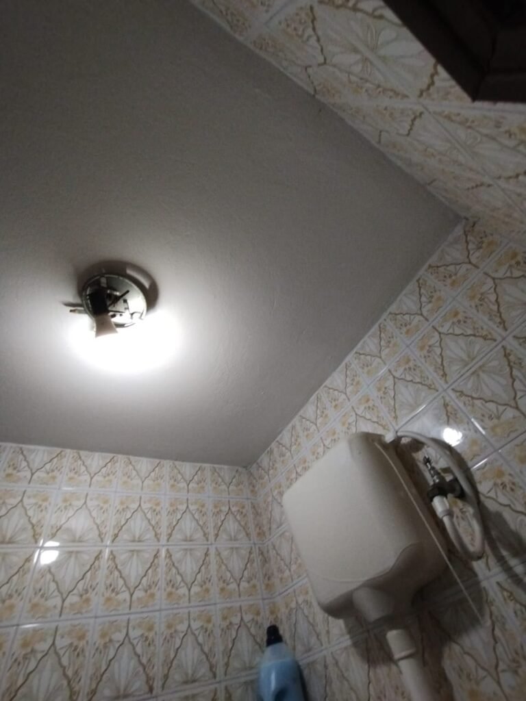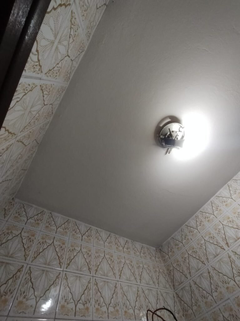 BANHEIRO DA EDÍCULA:- 01 porta sanfonada de PVC em ordem, pintura na cor marrom em ordem, com puxador e trinco em ordem, piso cerâmico mesclado antiderrapante em ordem, paredes com azulejo mesclado ate o teto em ordem, 01 vaso sanitário cerâmico marca Celite branca com o fundo sujo o restante em ordem, 01 tampa de vaso sanitário com acento rachado o restante em ordem, 01 caixa de descarga em ordem, 01 porta shampoo de PVC em ordem, 01 porta sabonete inox em ordem, 01 porta papel higiênico em ordem, 02 porta toalhas em ordem, 01 espelho quadrado pequeno em ordem, 01 chuveiro Lorenzetti Gorducha em ordem, 01 cano para chuveiro de ferro em ordem, 01 chuveirinho em ordem, 01 suporte para chuveirinho em ordem, 01 ralo de plástico desentupido em ordem, 01 válvula com canopla em ordem, 01 janela de ferro contendo 02 folhas de vidro incolor em ordem, 01 puxador em ordem, 01 interruptor de luz em ordem, 01 spot sem a tampa, 01 lâmpada de led em ordem.