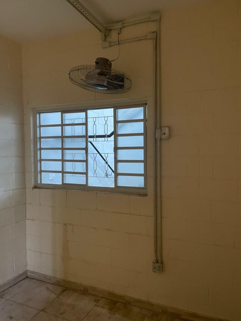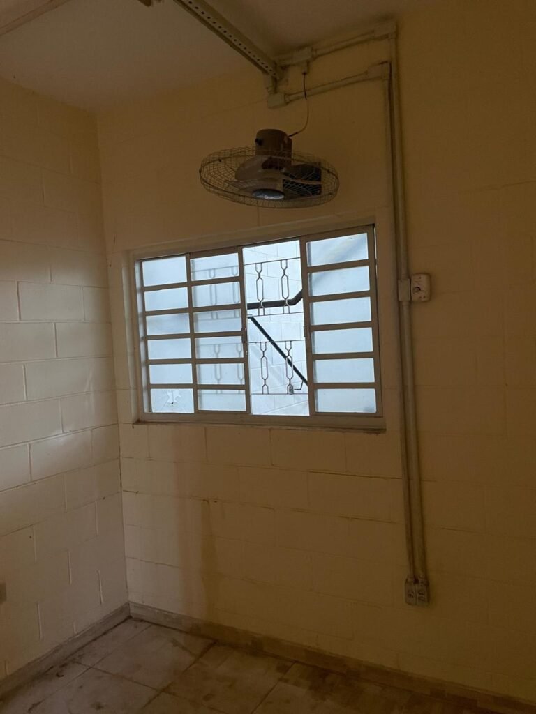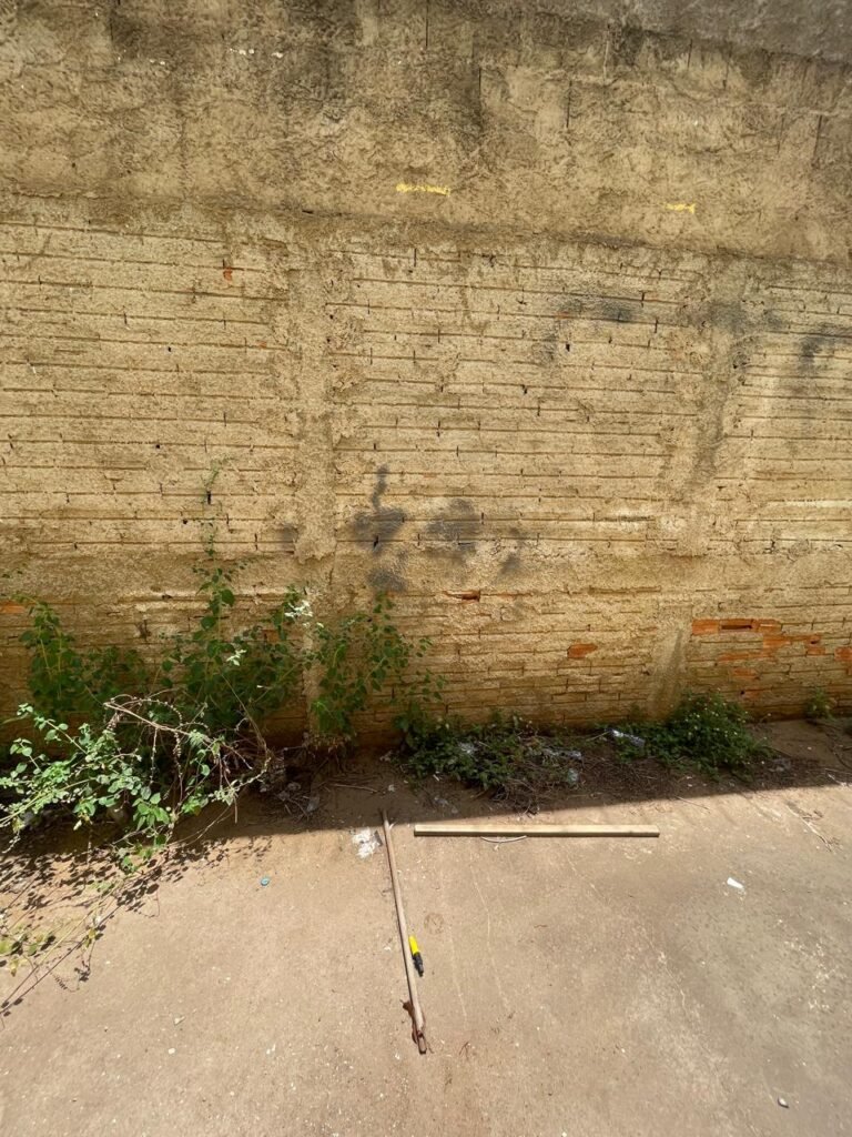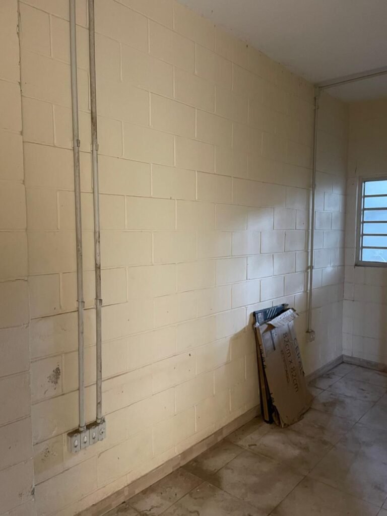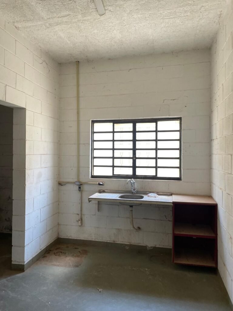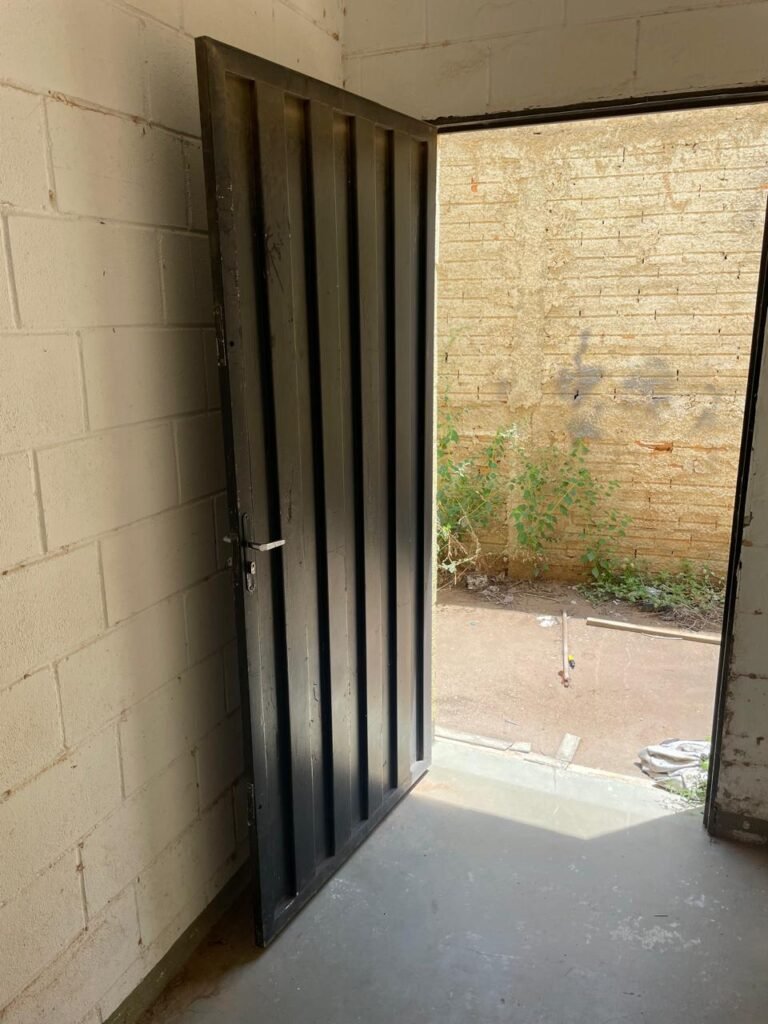 FUNDOS:- muro de bloco chapiscado, piso concreto polido, 01 porta de chapa dobrada de ferro cor preto em ordem, fechadura e chave em ordem, 01 ralo sem tampa, 01 caixa de gordura ok, 01 ponto de água e esgoto ok, cercas serpentinas em ordem