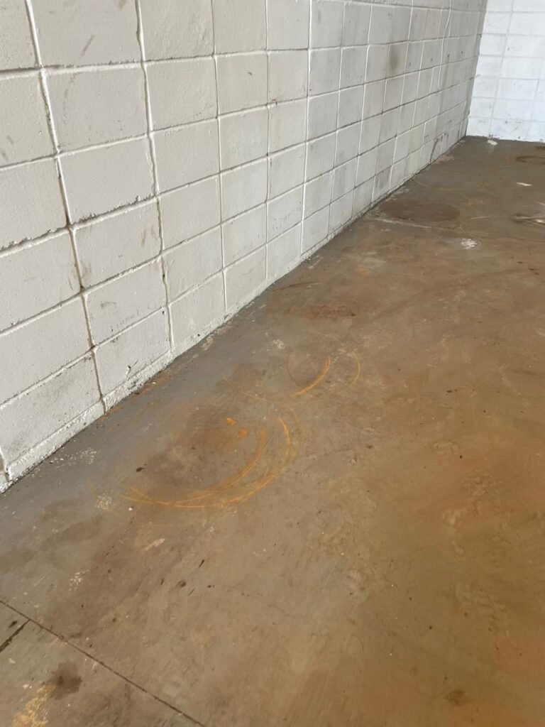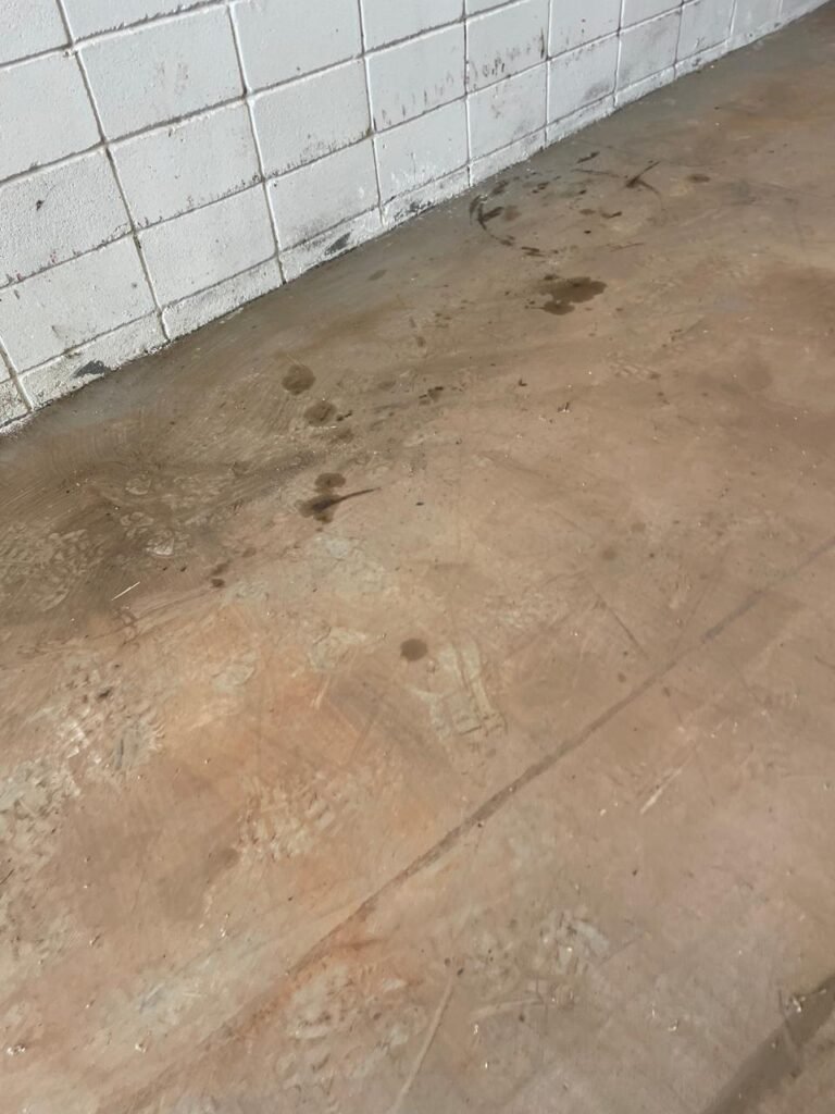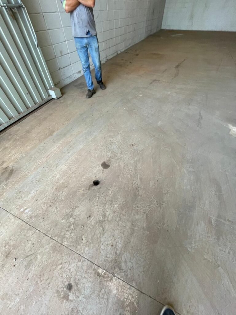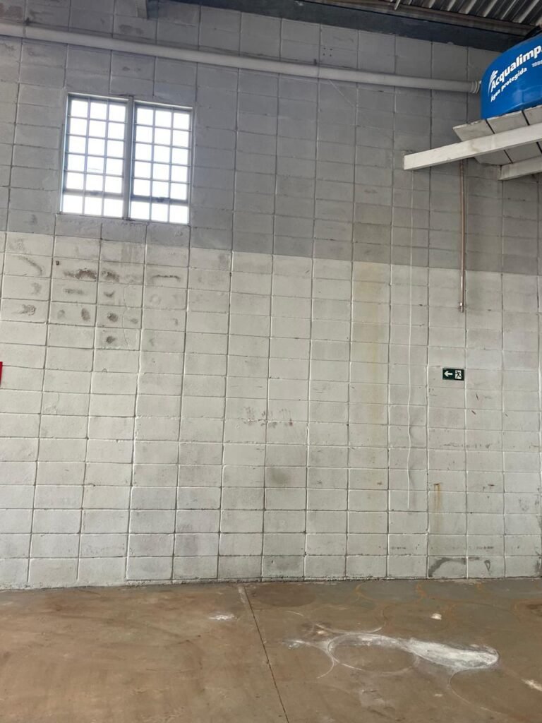 BARRACÃO-: Manchas de oléo e de ferrugem no chão devem ser retiradas, necessita de pintura nova.