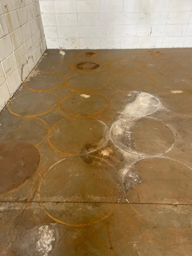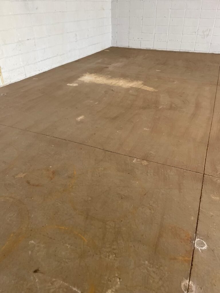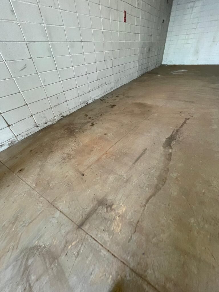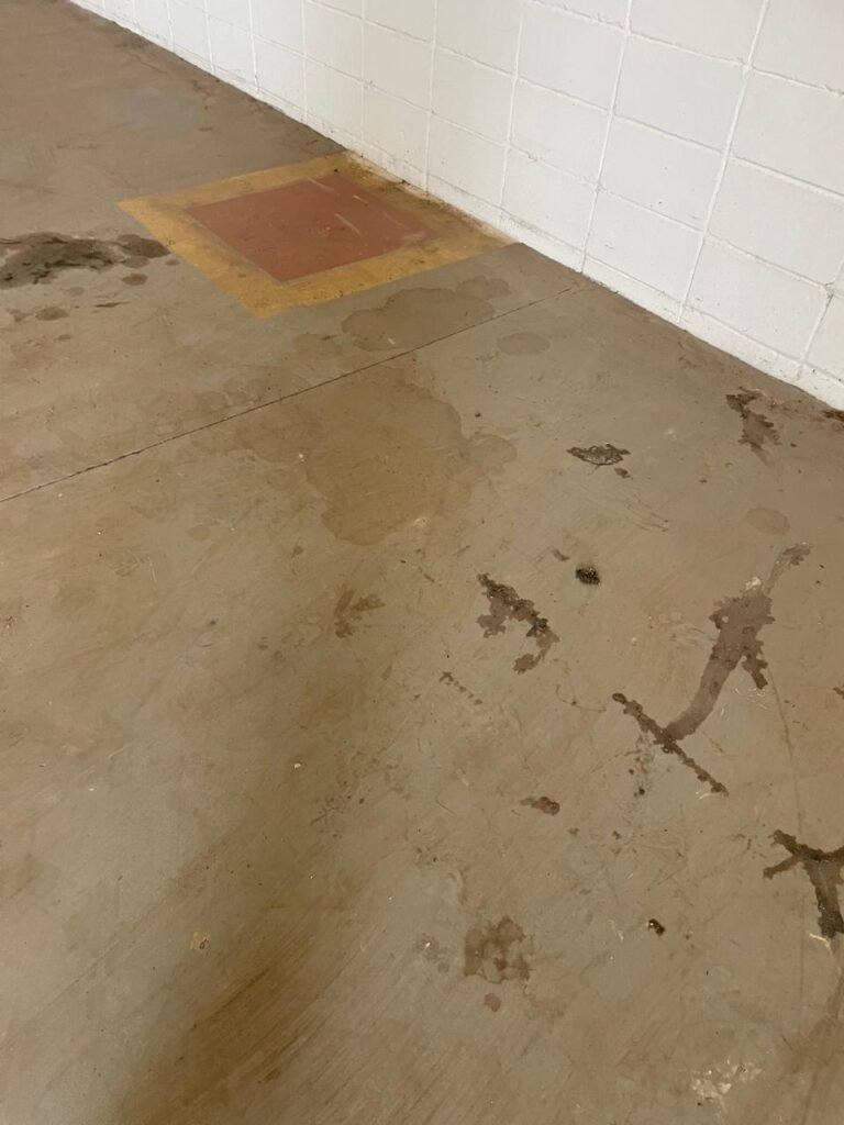 BARRACÃO-: Manchas de oléo e de ferrugem no chão devem ser retiradas, necessita de pintura nova.