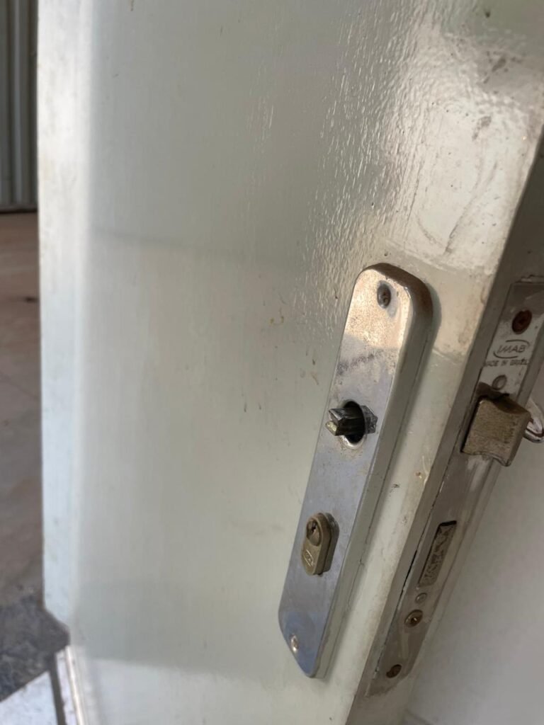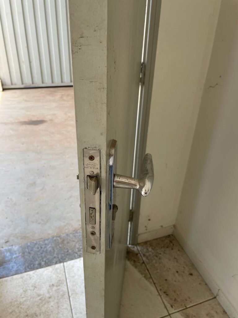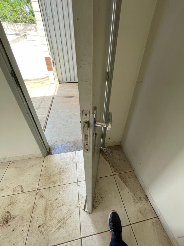 RECEPÇÃO-: Repor 01 extintor, necessita de pintura nova, conserto de maçaneta danificada.