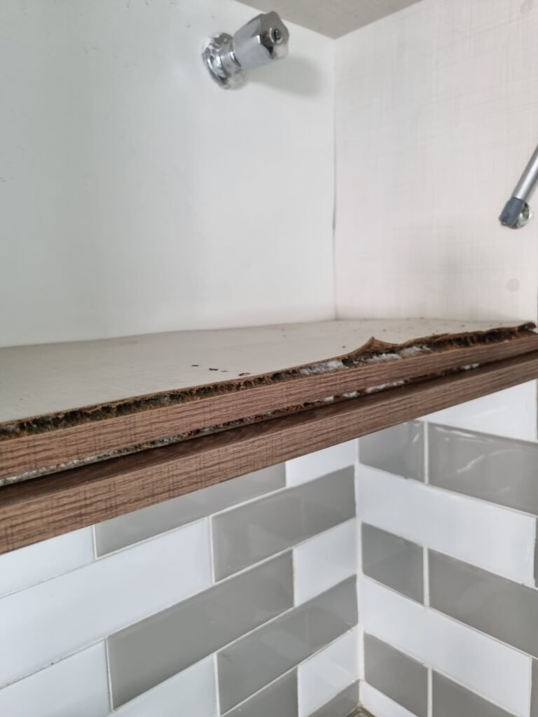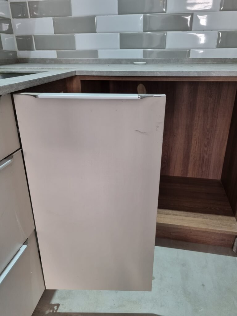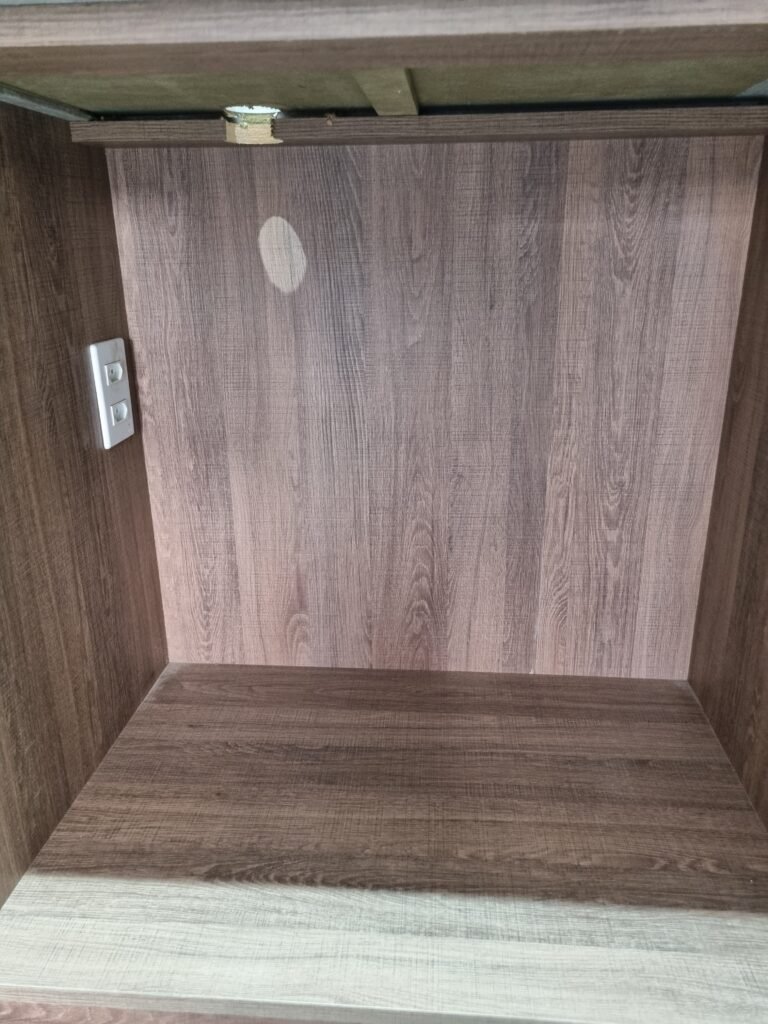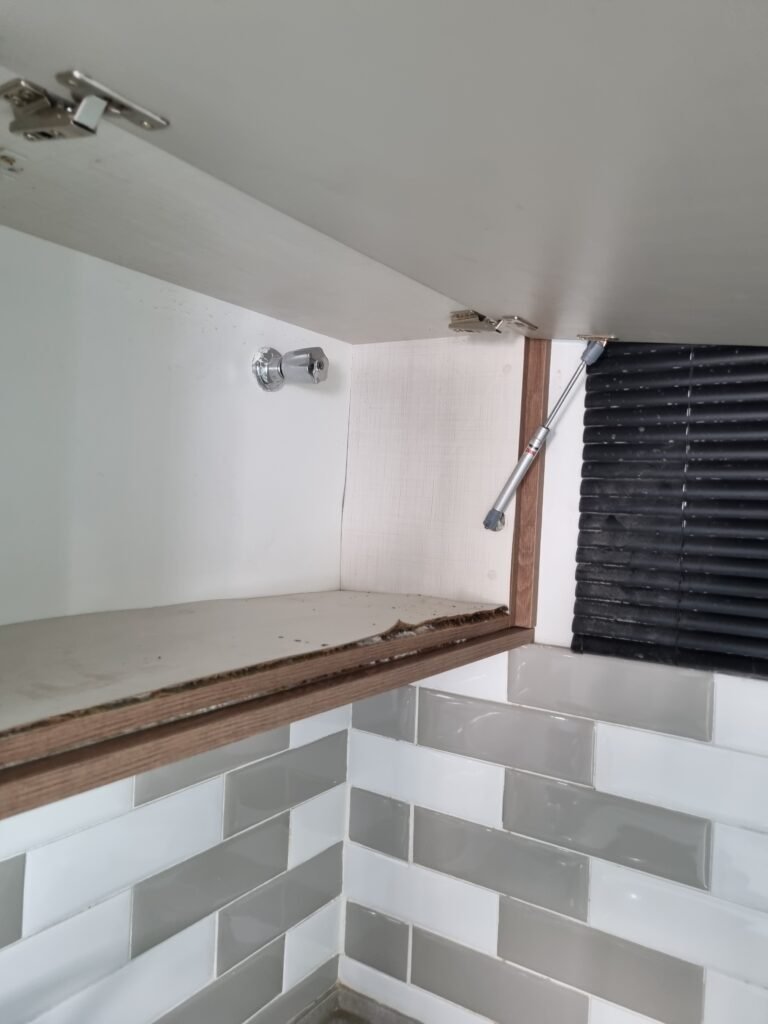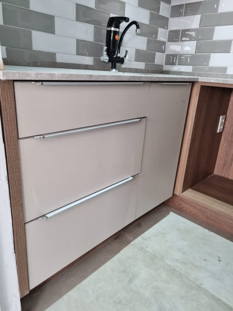 COPA:- Piso fria cerâmica cinza fosco em ordem, ½ parede com porcelanato cinza, ½ parede com azulejo mesclado cinza e branco, restante com pintura na cor branco até o teto em ordem, 01 vitrô de alumínio com 03 vidros em ordem, persiana horizontal preta em ordem, 02 tomadas, 02 espelhos de luz, 01 interruptor, bancada pia na cor cinza em ordem, cuba inox em ordem, torneira com filtro bica alta preta e cromada Premium equalition em ordem, armário planejado bege com 03 gavetas, 01 porta com puxadores em alumínio em ordem, dobradiças em ordem, armário planejado de parede na cor bege com 02 portas, sendo que 01 esta sem amortecedor e a outra esta em ordem, armário estufado com umidade, 01 gabinete planejado na cor madeira em ordem.