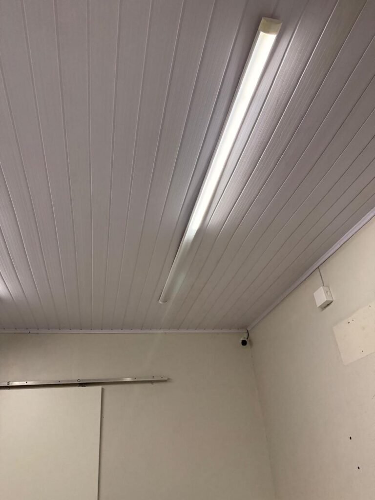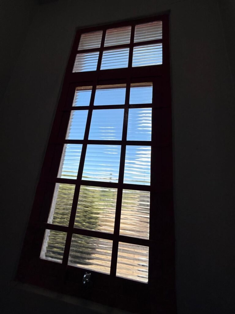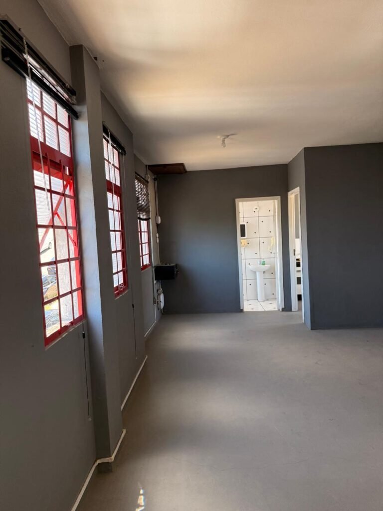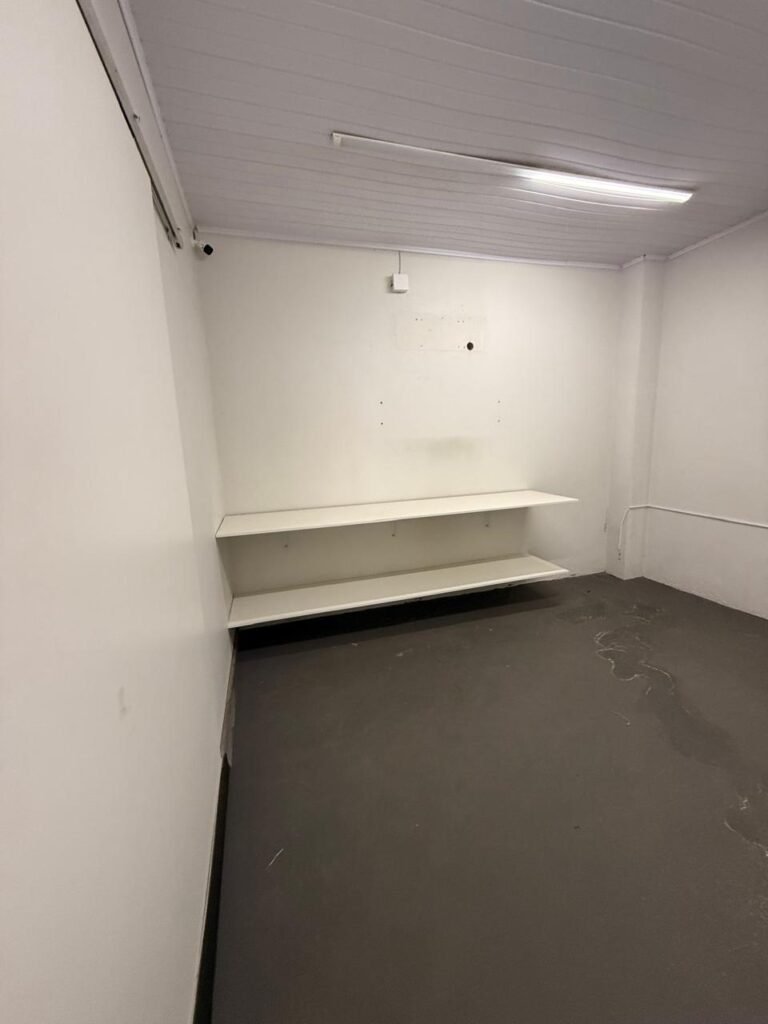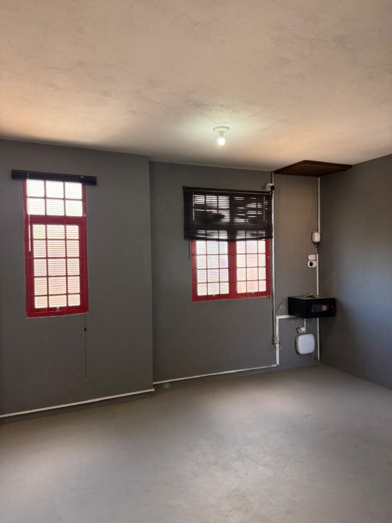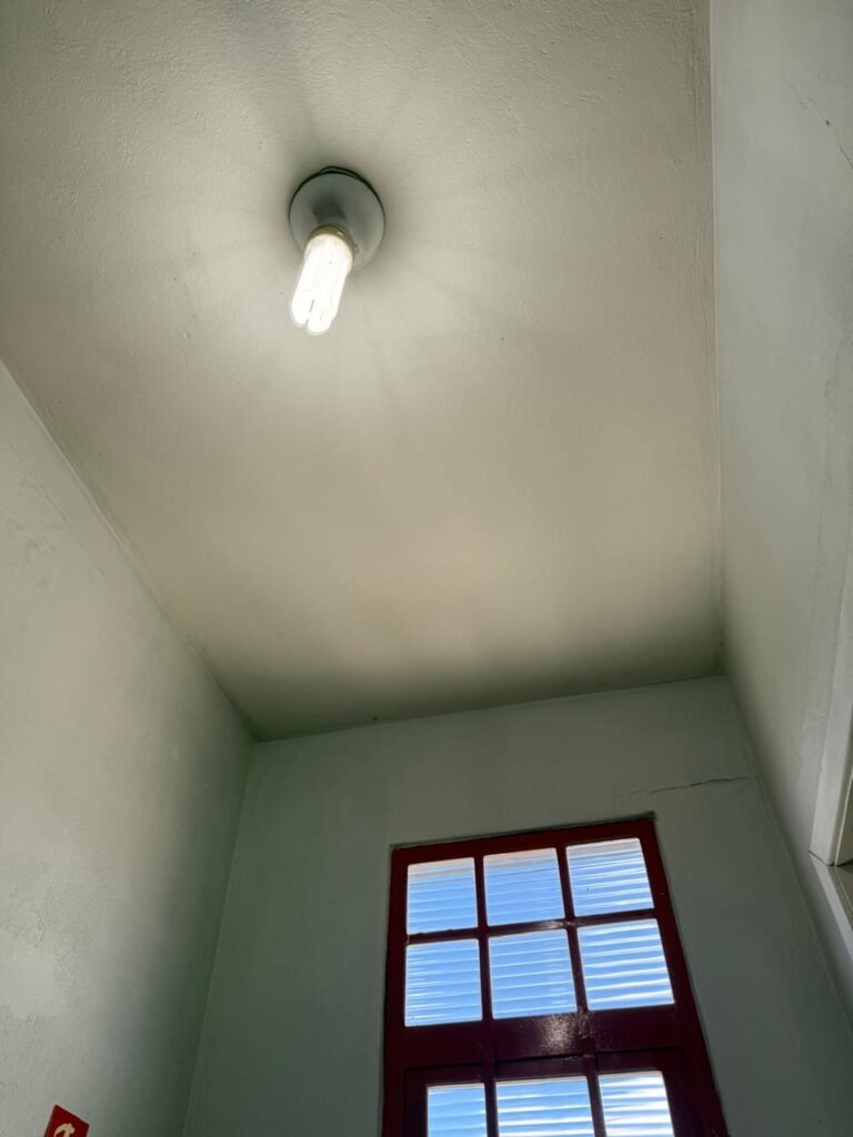 ADM:- Piso concreto desempenado com pintura nova com tinta piso da cor cinza, paredes com pintura na cor cinza, teto com pintura na cor branco, 04 soquetes com 04 lâmpadas LED bulbo em ordem, 04 vitrô basculante com pintura na cor vermelho em ordem, 04 puxadores em ordem, 02 vitrô de correr com pintura na cor vermelho em ordem, travas em ordem, 53 vidros em ordem, porta de madeira com pintura na cor branco, 02 maçanetas em ordem, fechadura yale sem chave, 05 persianas horizontais em ordem, 11 espelhos de luz em ordem, 02 interruptores em ordem, 18 tomadas em ordem, caixa de disjuntores com 05 disjuntores alumbra sendo (01) C16/1, (02) C52/2, (01) C40/2 e (01) C63/2, 01 sensor de presença, 01 câmera intelbras, 01 central de alarme, 01 DVR MHD2 MOB.