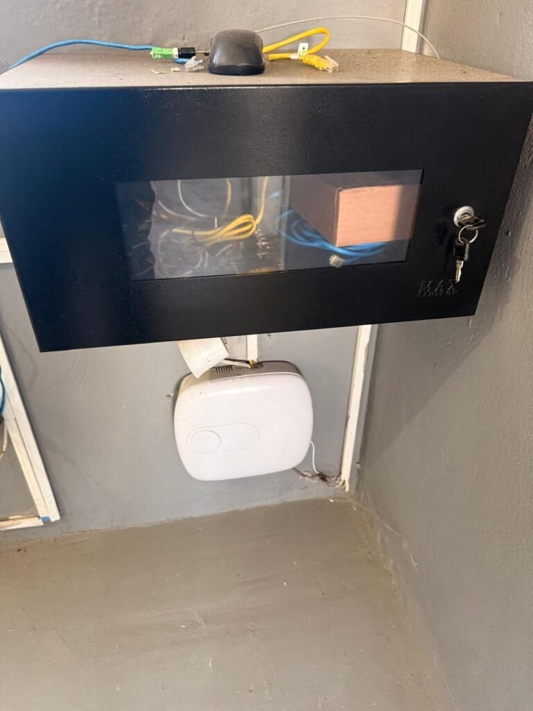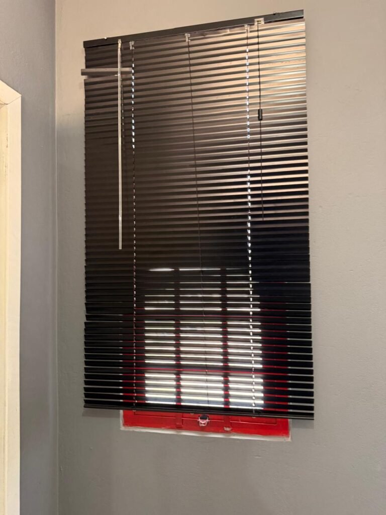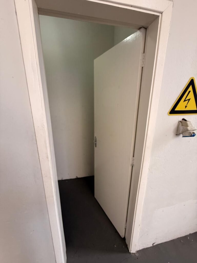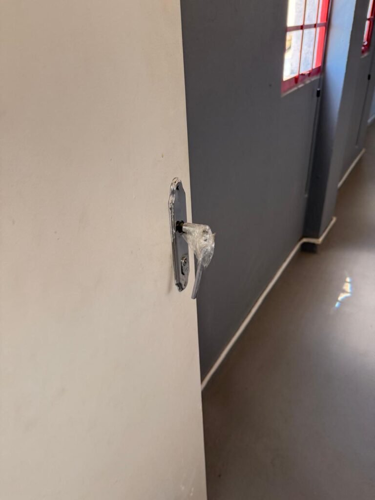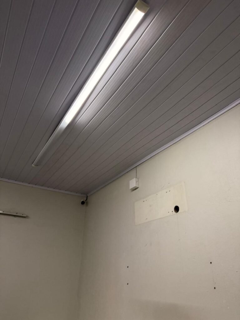 ADM:- Piso concreto desempenado com pintura nova com tinta piso da cor cinza, paredes com pintura na cor cinza, teto com pintura na cor branco, 04 soquetes com 04 lâmpadas LED bulbo em ordem, 04 vitrô basculante com pintura na cor vermelho em ordem, 04 puxadores em ordem, 02 vitrô de correr com pintura na cor vermelho em ordem, travas em ordem, 53 vidros em ordem, porta de madeira com pintura na cor branco, 02 maçanetas em ordem, fechadura yale sem chave, 05 persianas horizontais em ordem, 11 espelhos de luz em ordem, 02 interruptores em ordem, 18 tomadas em ordem, caixa de disjuntores com 05 disjuntores alumbra sendo (01) C16/1, (02) C52/2, (01) C40/2 e (01) C63/2, 01 sensor de presença, 01 câmera intelbras, 01 central de alarme, 01 DVR MHD2 MOB.
