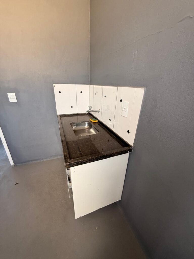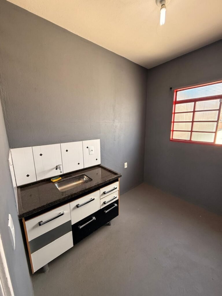 COPA:- Piso concreto desempenado com pintura com tinta piso da cor cinza, paredes com pintura na cor cinza, teto com pintura na cor branco neve, 01 soquete com lâmpada fluorescente em ordem, 02 interruptores em ordem, 01 tomada em ordem, 03 espelhos de luz em ordem, porta de madeira em ordem, maçanetas em ordem, fechadura e 02 chaves yale em ordem, vitrô de correr com pintura na cor vermelho em ordem, 18 vidros em ordem, 01 persiana horizontal em ordem, 01 pia de mármore em ordem, cuba inox em ordem, torneira cromada em ordem, 01 sifão sanfonado em ordem, gabinete MDF com formica descolando em algumas partes restante em ordem, 02 portas, 03 gavetas e o5 puxadores em ordem, 04 dobradiças em ordem, 01 prateleira em ordem.