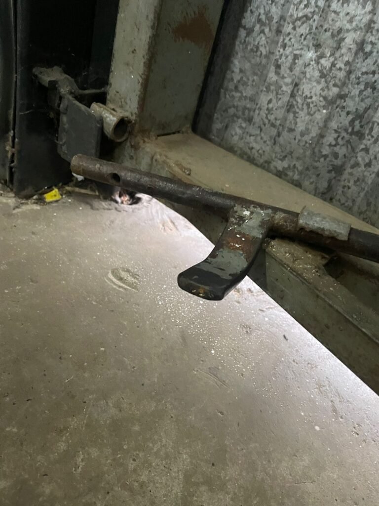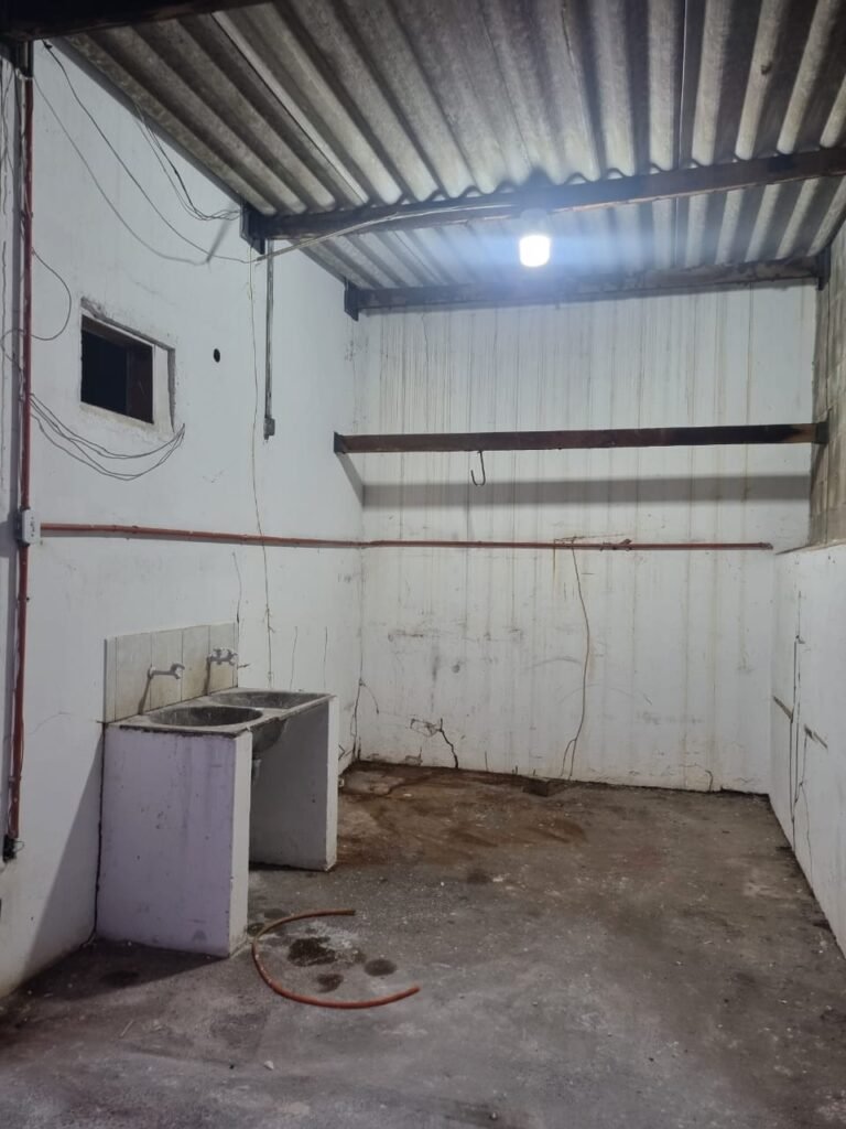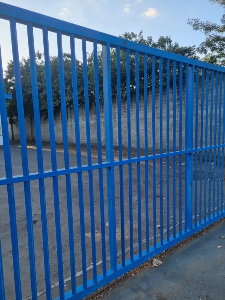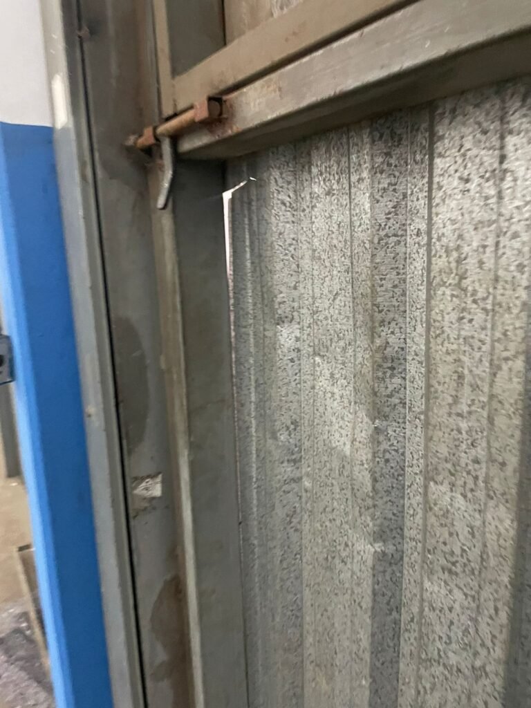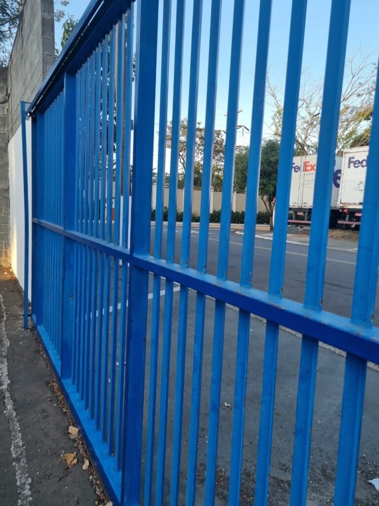 GALPÃO:- Faltando botoeiras na abertura do portão, faltando aparelho interfone HDL, Paredes barrado com pintura em tinta PVA azul (correto tinta esmalte azul) restante das paredes pintura na cor branco neve, 02 portões basculantes com estrutura de ferro com telhas de zinco soltas e 01 com trinco solto.