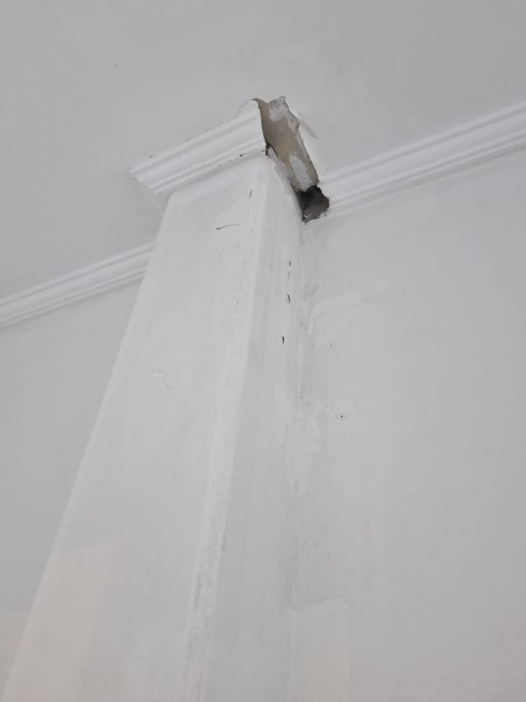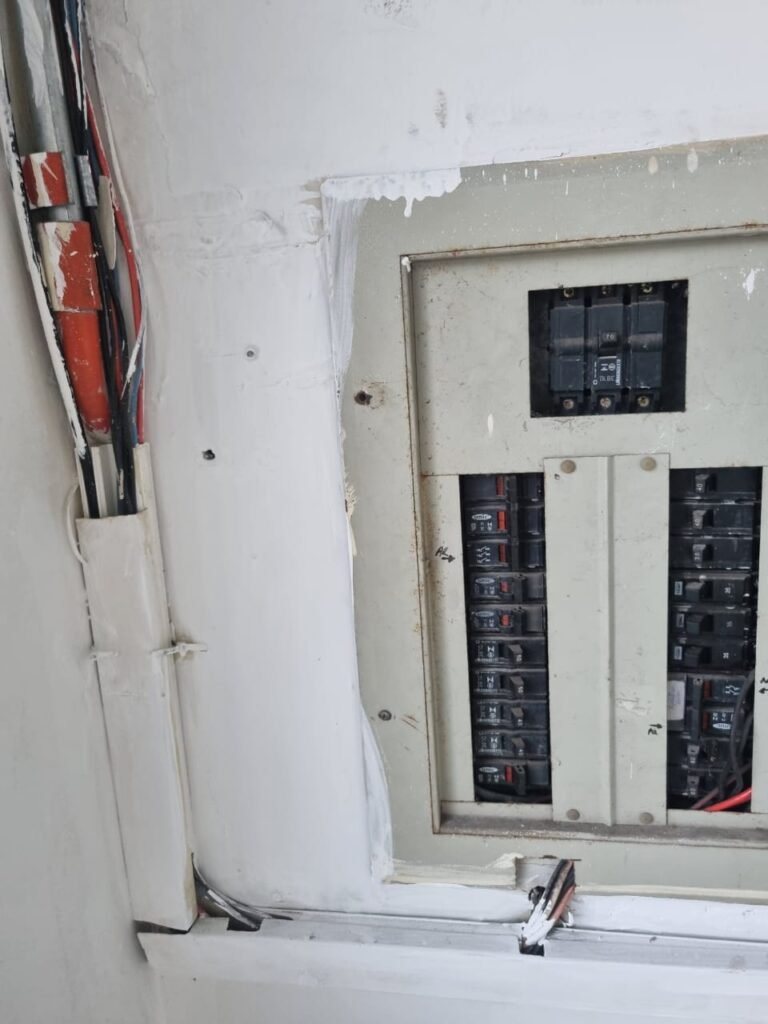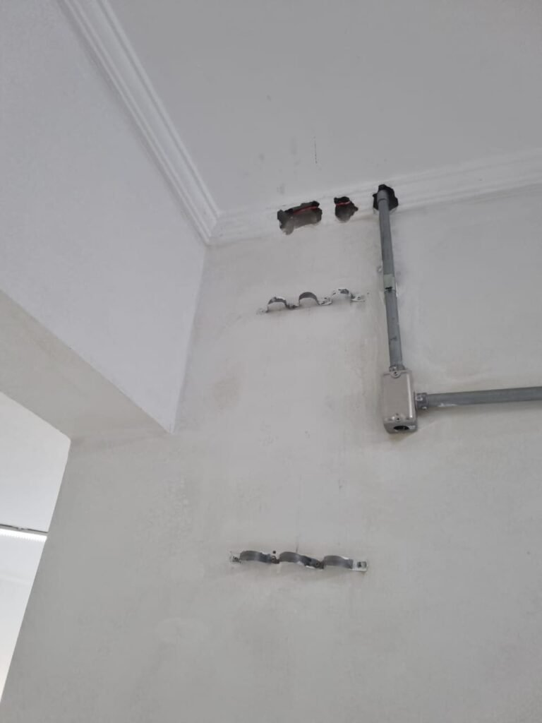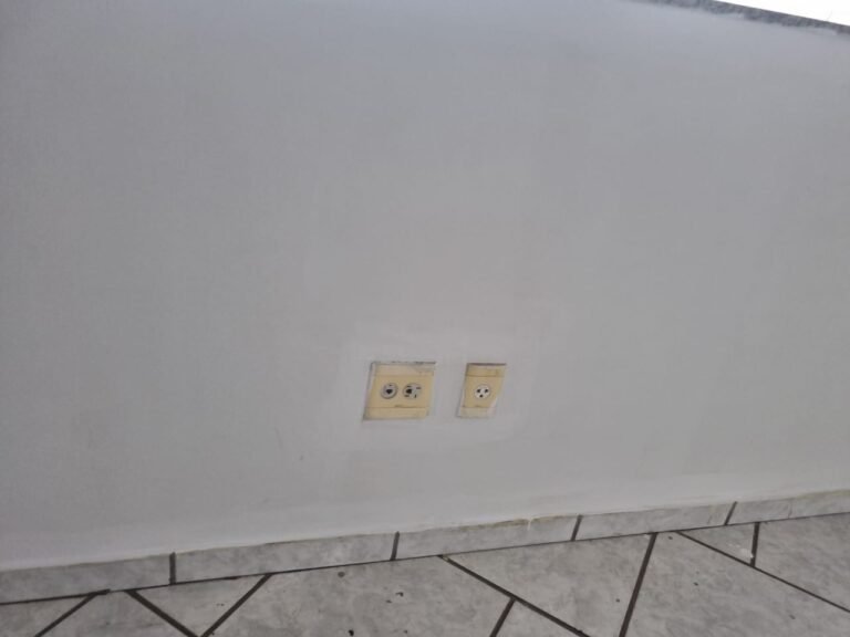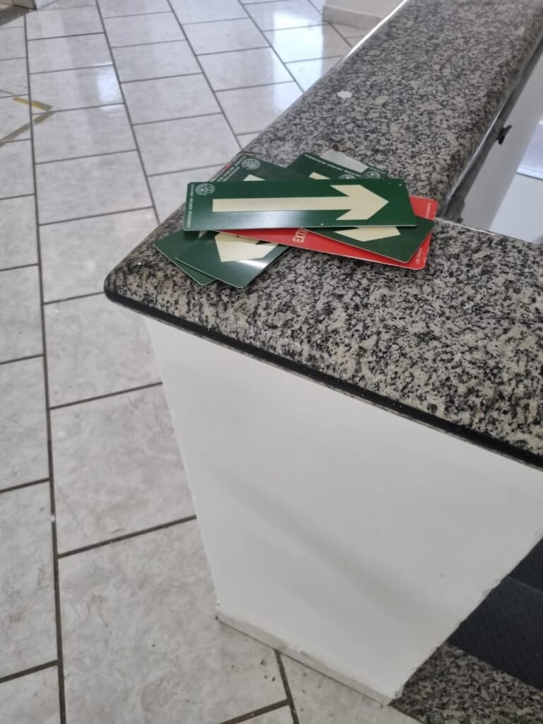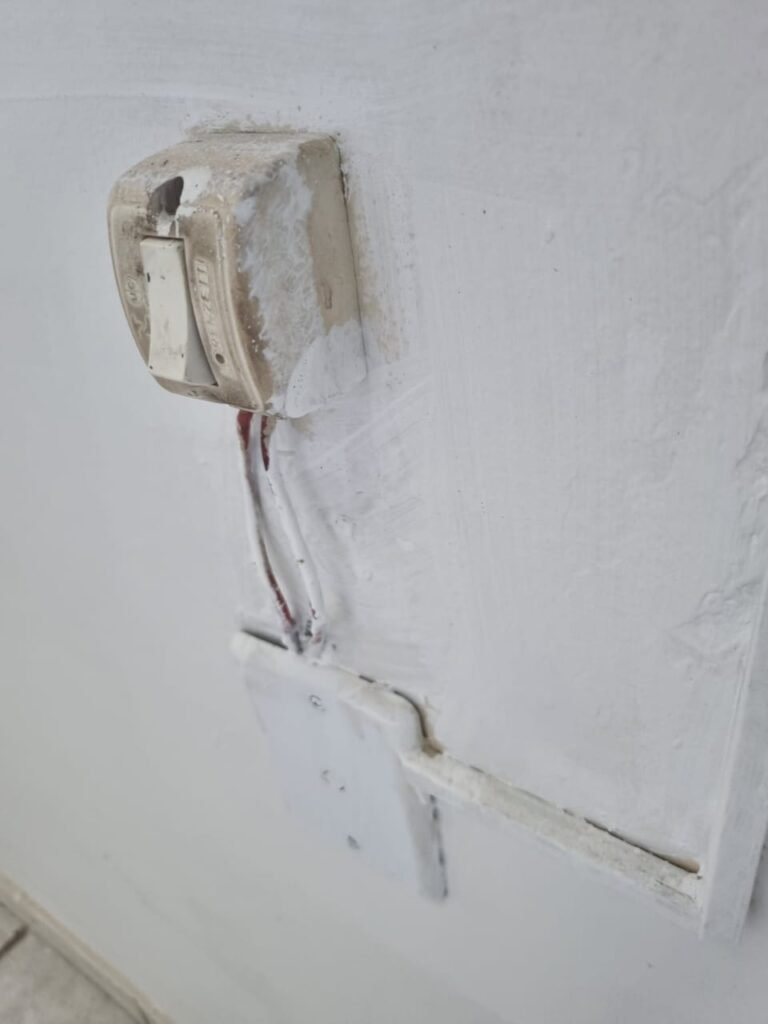 RECEPÇÃO:- Faltando 03 espelhos de luz, paredes com pintura na cor branco neve sem acabamento, refazer pintura original marfim, guarnições dos vitrôs e caixa de disjuntores sujas de tinta, efetuar a limpeza dos locais sujos de tinta.