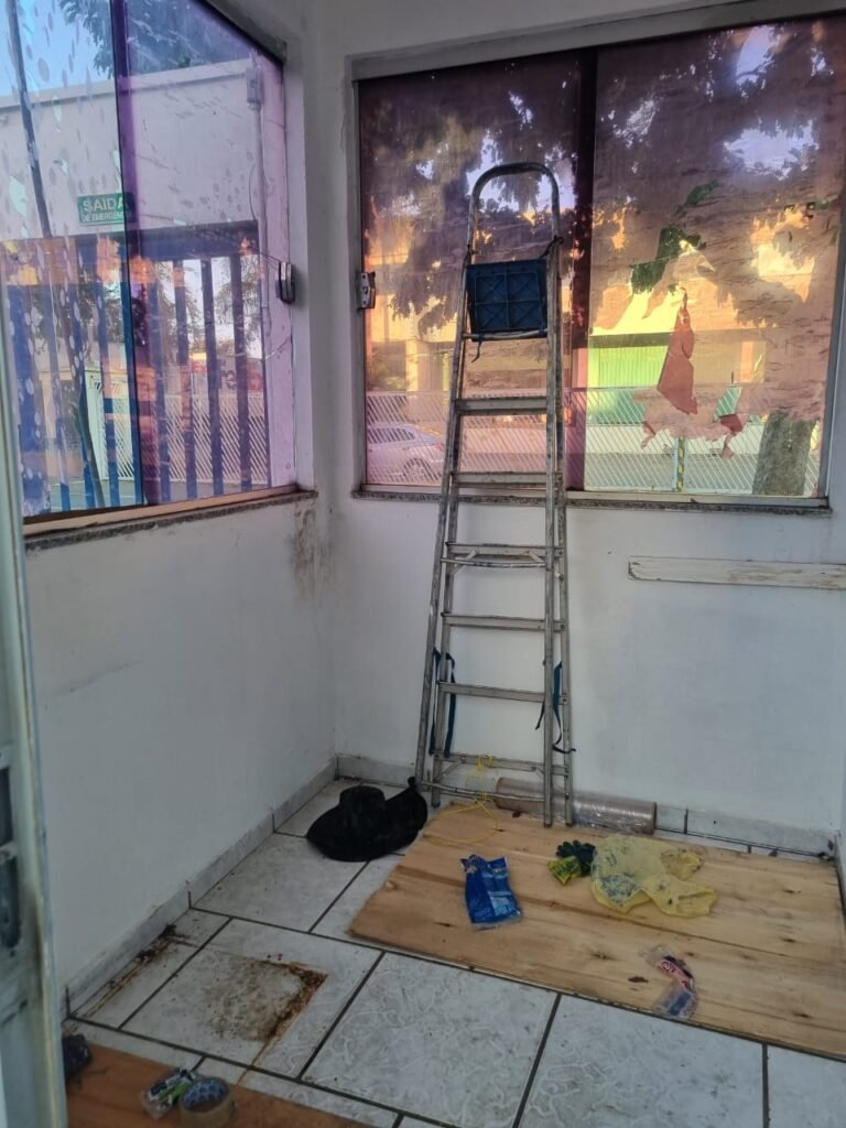 ÁREA DE SERVIÇO:- Não foi efeituada pintura nova, rufo solto no telhado.