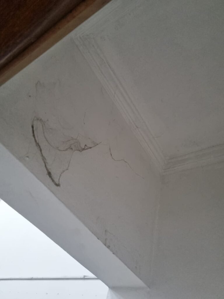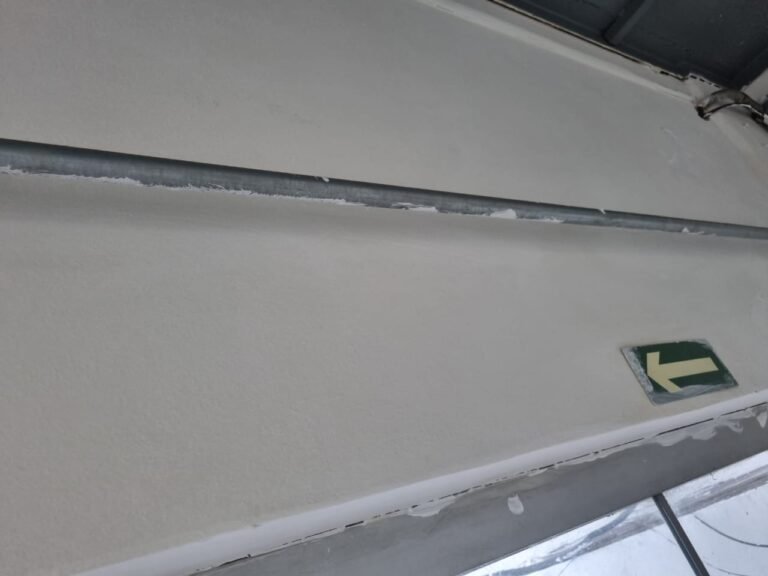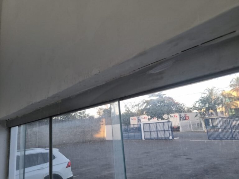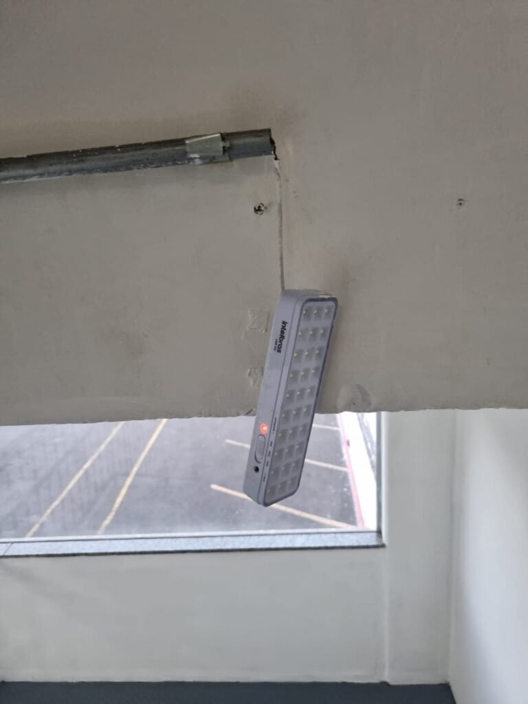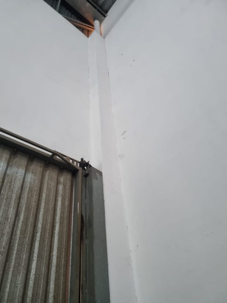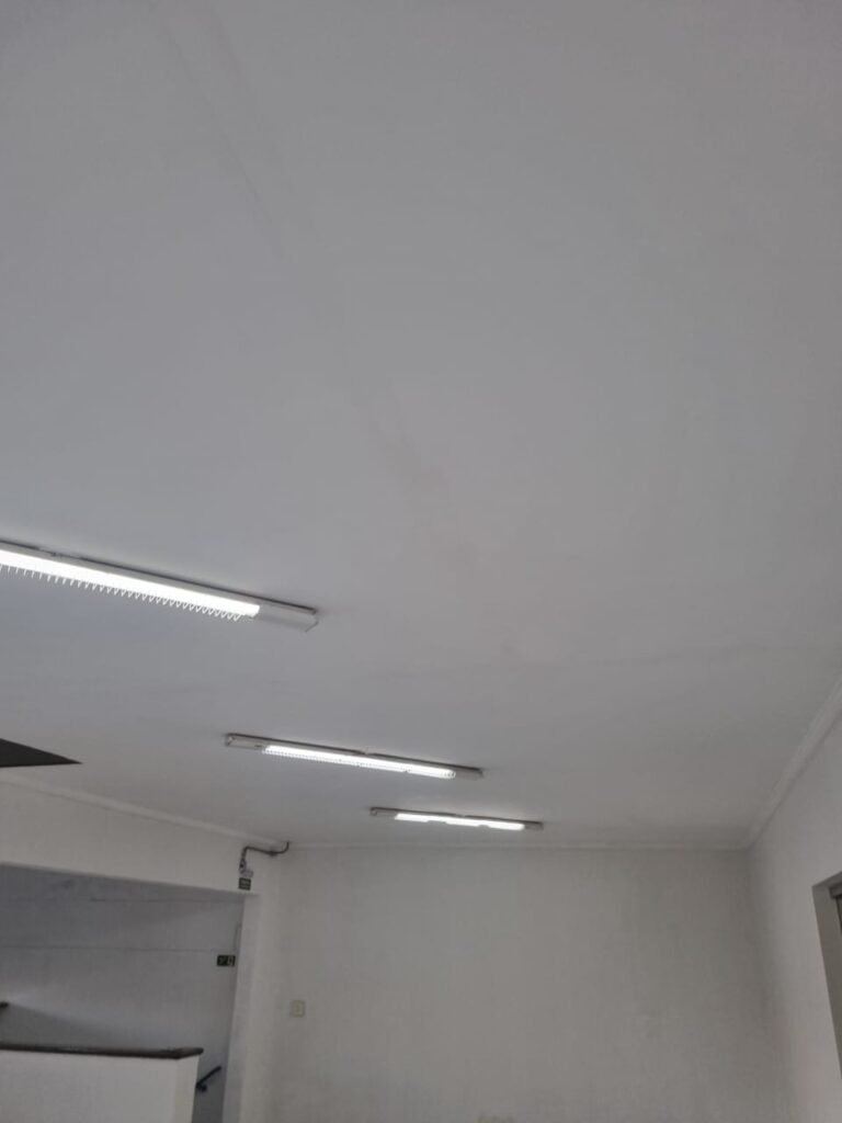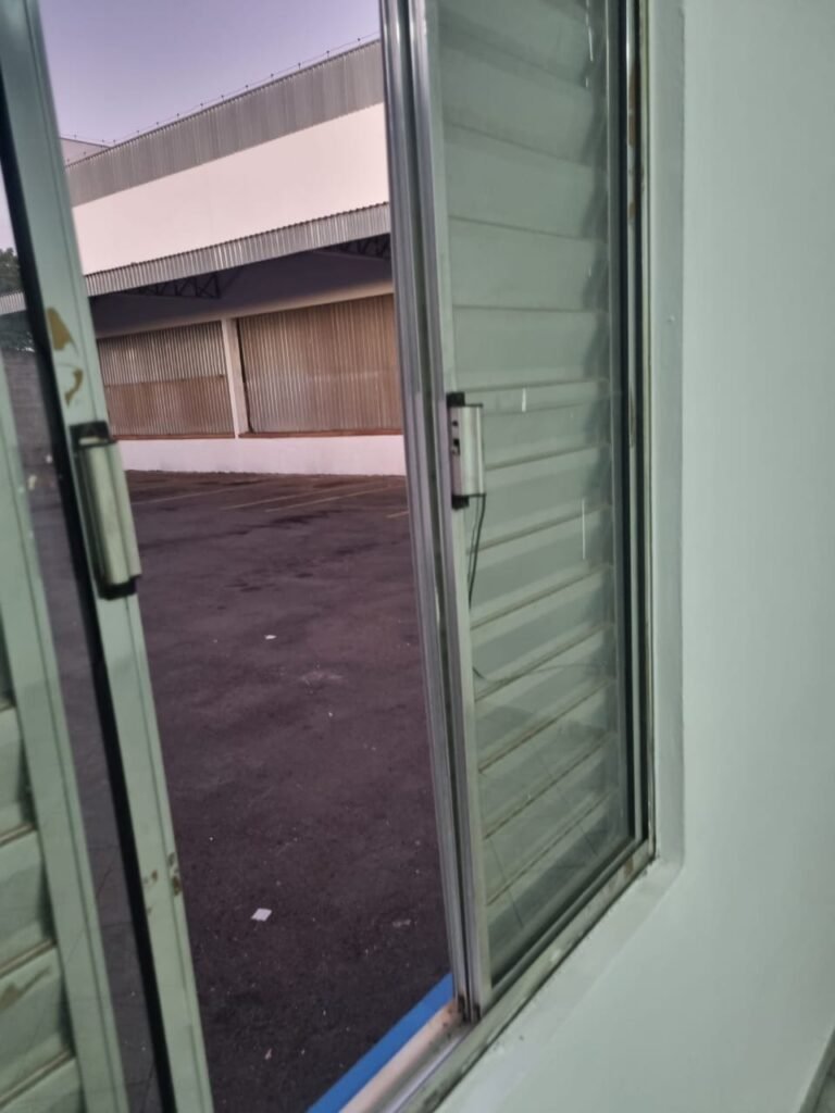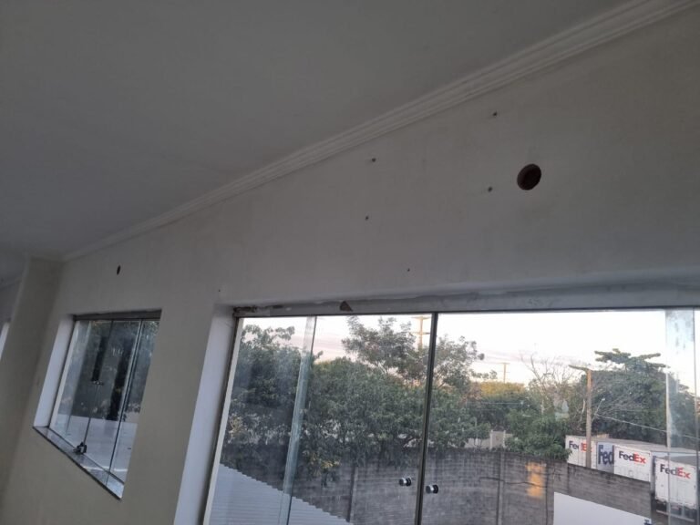 PISO SUPERIOR ADM:- Pintura na cor branco neve sem acabamento a cor original é marfim, 05 buracos para instalações de ar condicionado e buracos de buchas para reparar e fazer acabamento dos lados (adm e fachada do galpão).