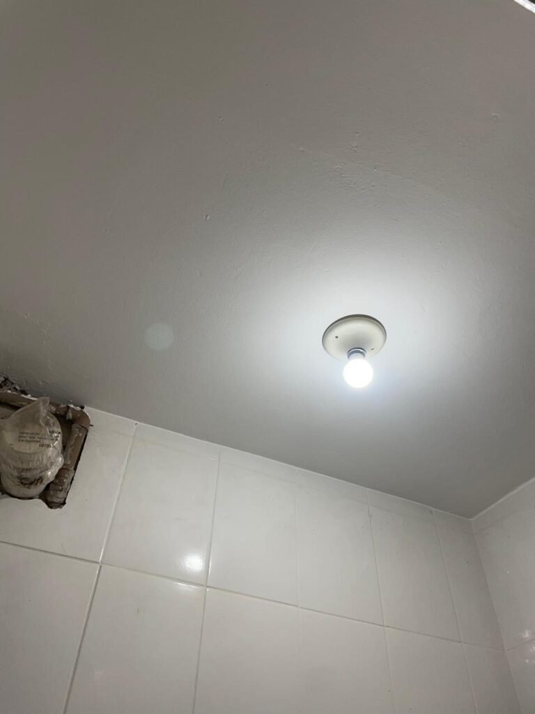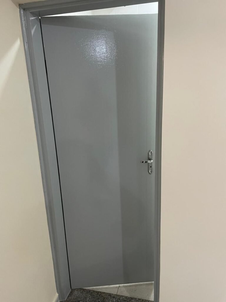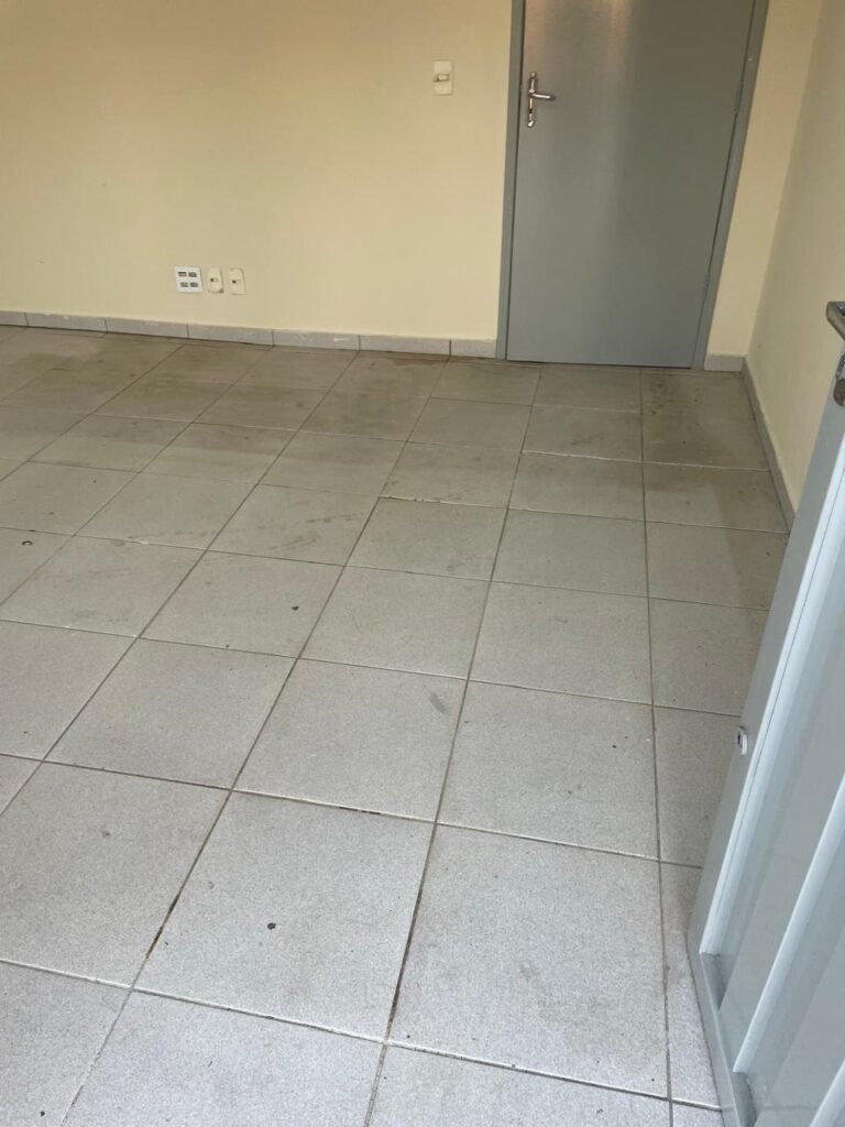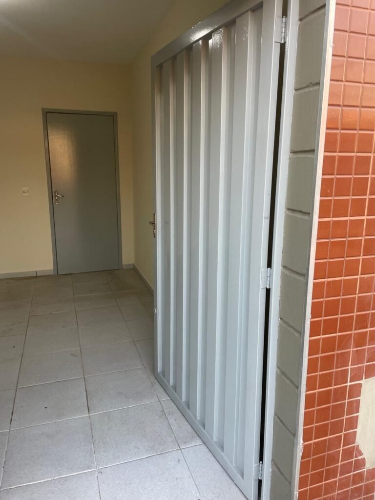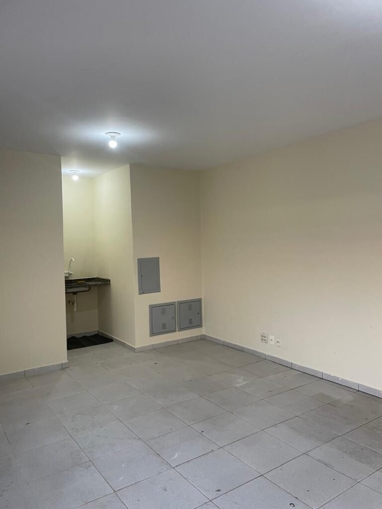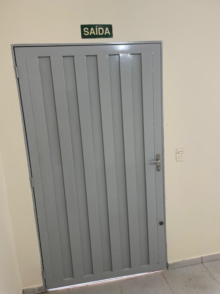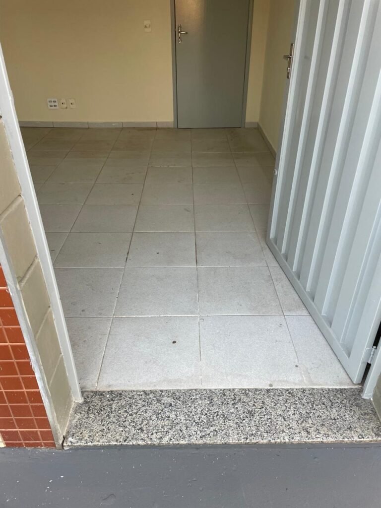 RECEPÇÃO-: 01 Porta em chapa de metalon em ordem, com pintura nova na cor cinza em ordem, com maçanetas em inox com desgastes naturais e restante em ordem, 01 fechadura simples marca Arouca em ordem e com chave, 01 fechadura tetra marca Stam em ordem e com chave, 01 soleira de granito cinza ocre em ordem, piso e rodapé revestido de pisos frios cerâmicos com desgastes naturais, partes soltando, trincos e manchas de tinta pela extensão, 01 tampa de caixa de gordura de plástico na cor preto em ordem, 01 tapete na cor preto em ordem, paredes com pintura nova na cor creme, com pequenas rachaduras e restante em ordem, 01 placa de sinalização em ordem, 17 espelhos de luz, apenas 01 está com acabamento, dentre eles: 04 espelhos com 04 tomadas, 08 espelhos com entrada para fio de dados, 02 espelhos com 01 interruptor, 01 espelho com 02 interruptores. 03 quadros de inspeção marca Cemar com tampa em ordem, 02 deles com fiações e 01 deles com disjuntores, disjuntores sendo eles: todos marca Siemens, 01 80A 3P, 08 B20 1P, 01 B32 1P e 01 C40 3P. 01 vitrô basculante com esquadrias de ferro com pintura nova na cor cinza em ordem, com grades de proteção em ordem, com 02 fechaduras em ordem, contendo 50 vidros foscos e 01 soleira de granito cinza ocre em ordem, 01 pia com granito cinza ocre com desgastes natural e restante em ordem, Cuba em inox com desgastes naturais, marca Forminox, 01 torneira de plástico na cor branco, marca Lorenzetti Loren Easy, sifão em ordem, 01 porta social de madeira, com pintura nova na cor cinza em ordem, com maçaneta em inox em ordem, com fechadura marca Stam em ordem e sem chave, teto com pintura nova na cor branco neve em ordem, 03 bocais com 01 lâmpada LED em cada em ordem.