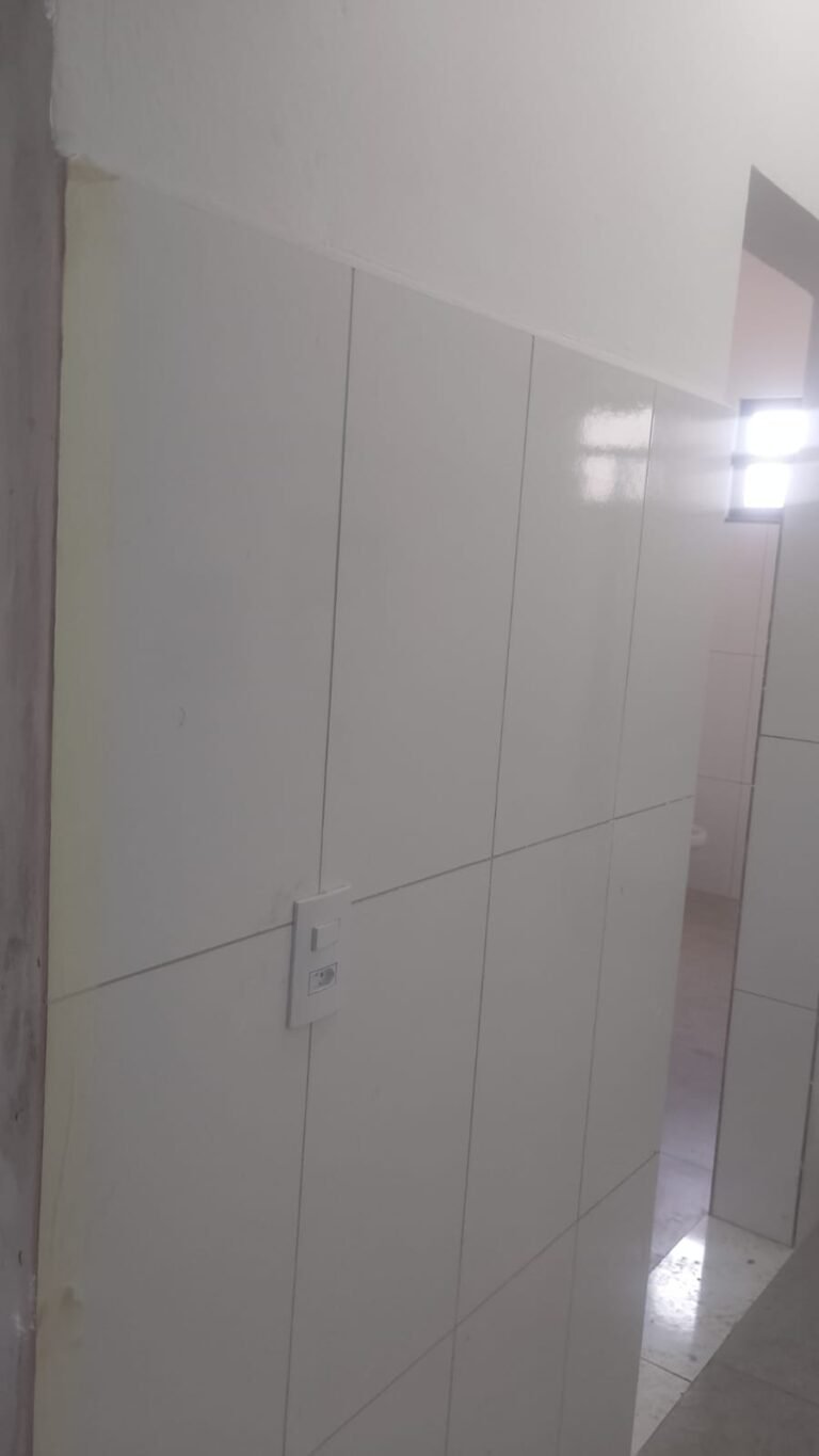 COZINHA-: Piso porcelanato, parede com pintura nova na cor branco em ordem, 02 pontos de energia sendo 03 127V e 01 220V, com interruptor é uma luminária sobrepor plafon LED em ordem.