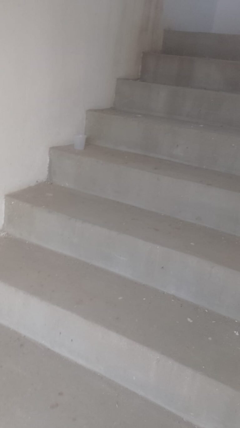 MEZANINO-: Escada de acesso ao mezanino de concreto usinado desempenado, piso de concreto usinado desempenado, 04 janelas de vidro blindex com acabamento preto e mármore, parede na cor branca faltando acabamento, 09 luminárias plafon de LED em ordem, 01 interruptor triplo em ordem, 7 pontos de energia em ordem.