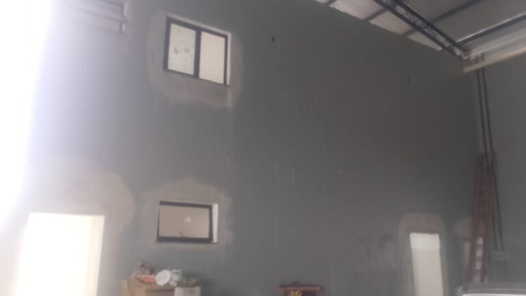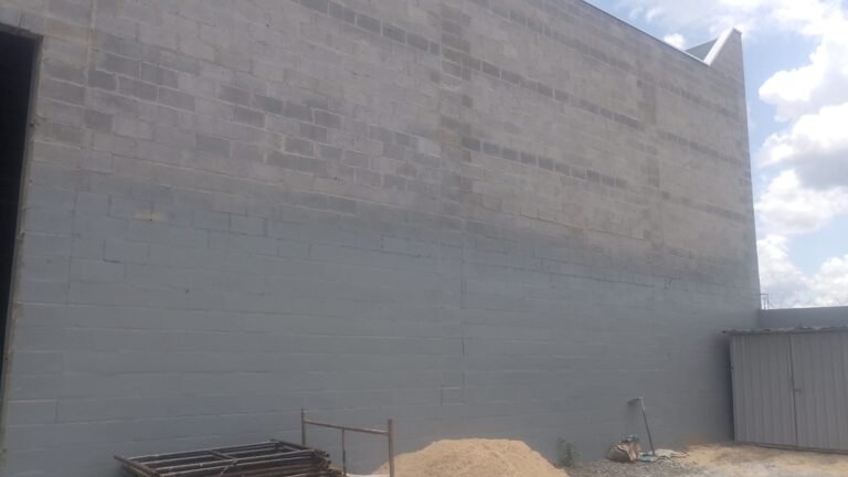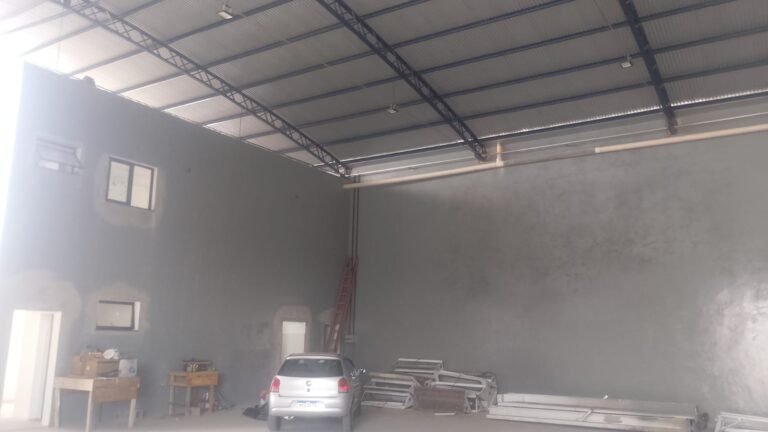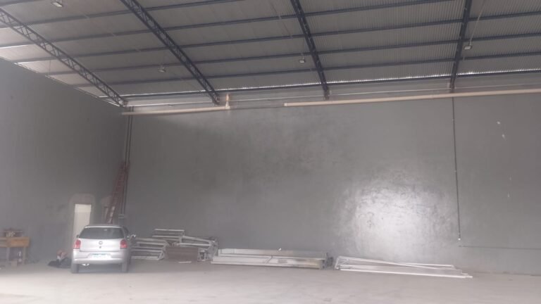 GALPÃO-: Parede na cor cinza com pintura nova, piso concreto usinado desempenado e polido em ordem, iluminação galpão com 16 refletores em ordem.