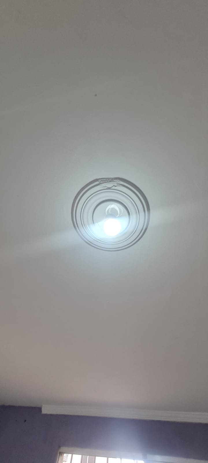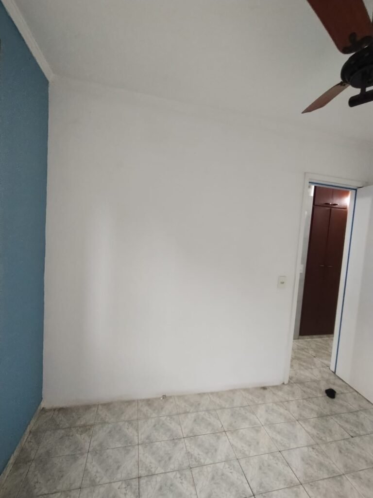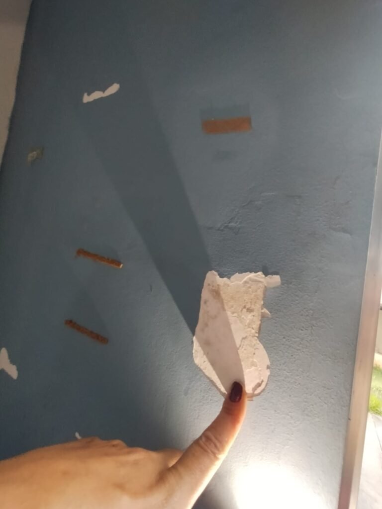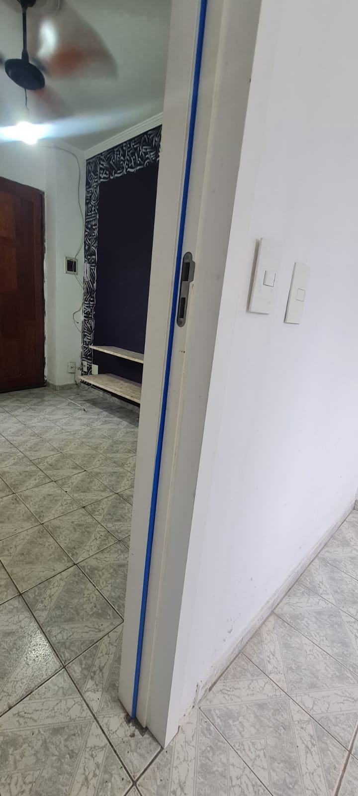 Quarto:- Piso frio cerâmico mesclado com desgaste natural do tempo restante em ordem, rodapé em ordem, porta de madeira concremwood 75 cm MDF na cor branco com guarnição em ordem, paredes com pintura nova na cor branco neve Coral com Manchas o restante em ordem, 01 parede com pintura na cor azul inverno fosco Coral com manhas o restante em ordem, teto com a pintura na cor branco neve Coral em ordem, golas de gesso com pintura na cor branco neve em ordem, 01 janela de alumínio de correr com 01 folha de vidro em ordem, 01 ventilador de teto sem 01 lâmpada fluorescente restante em ordem, 01 interruptor para ventilador e lâmpada e ordem, 02 interruptores de energia com espelho em ordem.