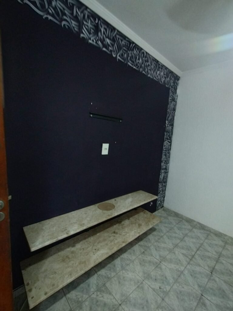 Quarto:- Piso frio cerâmico mesclado com desgaste natural do tempo restante em ordem, rodapés com desgaste natural do tempo restante em ordem, 01 porta de madeira concremwood 75 cm MDF na cor branco com manchas com guarnição em ordem, paredes com a pintura na cor branco neve Coral com manchas o restante ordem, parede com grafiato com a pintura na cor lavanda Coral com manchas o restante em ordem, 01 janela de alumínio de correr com uma folha de vidro em ordem, teto com pintura na cor branco com marcas de desempenar restante em ordem, duas golas de gesso em ordem, 1 gola de gesso no ponto de luz com uma parte lascada restante em ordem, 01 interruptor em ordem, 01 espelho de luz em ordem, 01 espelho de luz cego em ordem, 01 spot lâmpada fluorescente compacta em ordem.