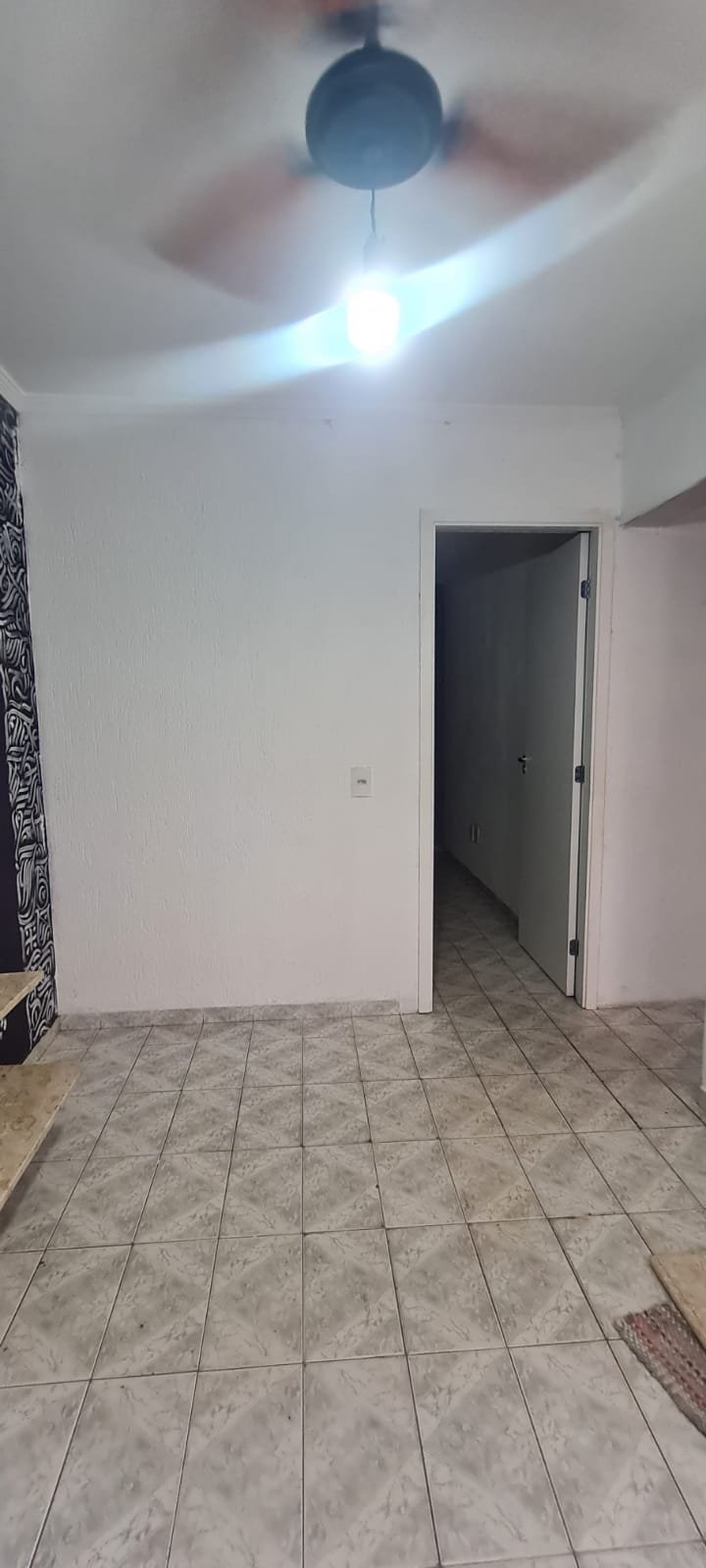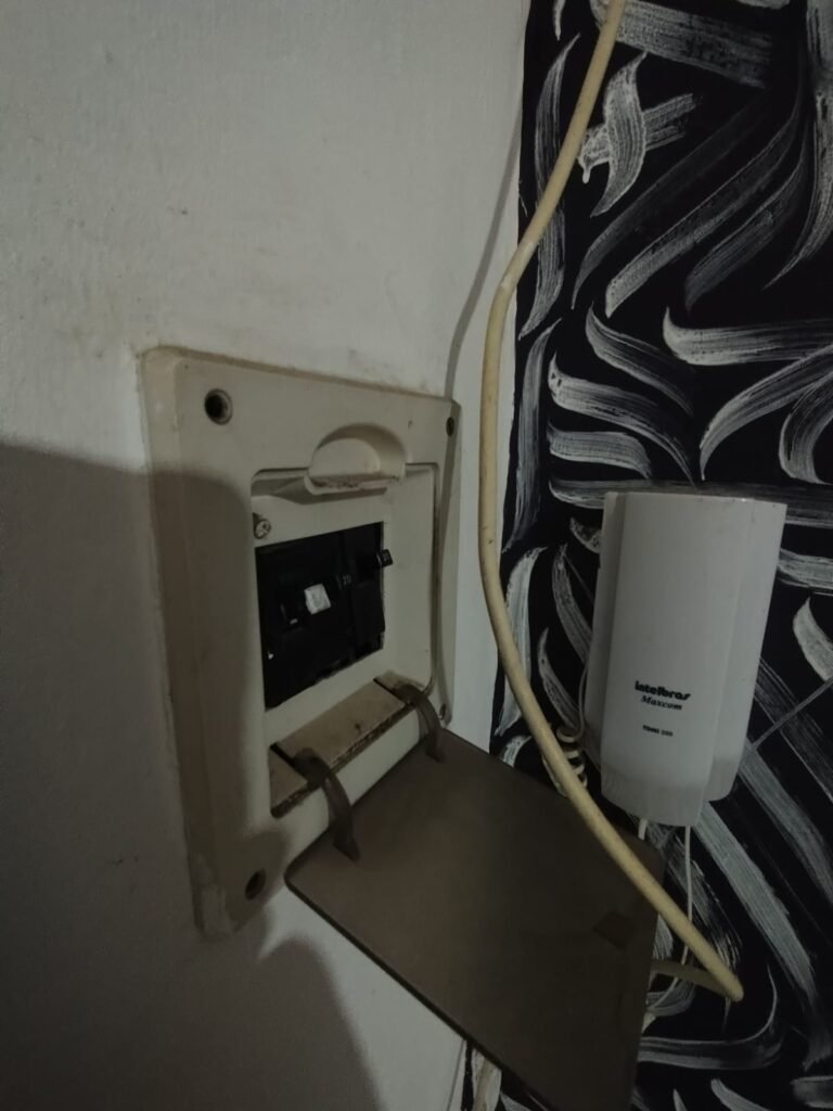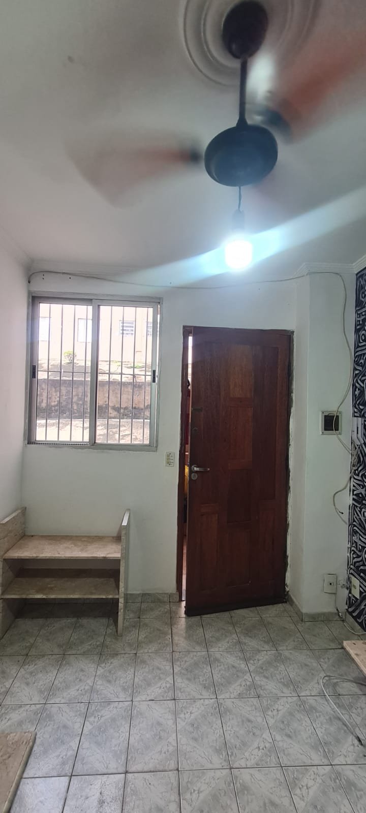Sala:- Piso frio cerâmico mesclado com desgaste natural do tempo restante em ordem, rodapés com desgaste natural do tempo restante em ordem, soleira granito São Gabriel em ordem, porta de madeira maciça com guarnição em ordem, maçanetas froucha o restante em ordem, fechadura e chaves em ordem , sem chave, parede com a pintura na cor cardo uva escurecido com pigmento preto e azul tinta Coral látex fosco com manchas o restante em ordem, com desenhos na cor branco em ordem, parede com grafiato com a pintura na cor branco com manchas o restante em ordem, parede na co r branco neve Coral em ordem, teto e gola de gesso com pintura na cor branco neve Coral em ordem, 01ventilador de teto com lâmpada fria em ordem, 01 janela de alumínio de correr com duas folhas de vidro em ordem, 01 interfone intelbrás em ordem, 01 interruptor em ordem, 01 espelho de luz em ordem, 02 tomadas de energia e 02 espelhos em ordem, 04 copia de chaves sendo da sala, portão social do condominio, 02 Tag entrada do portão social, 01 controle novo marca Peccinin preto.