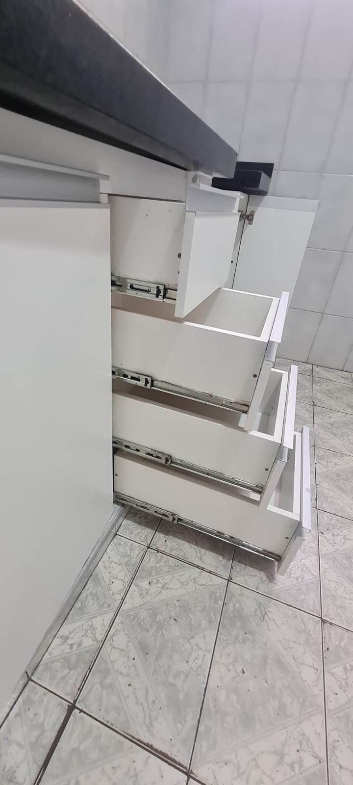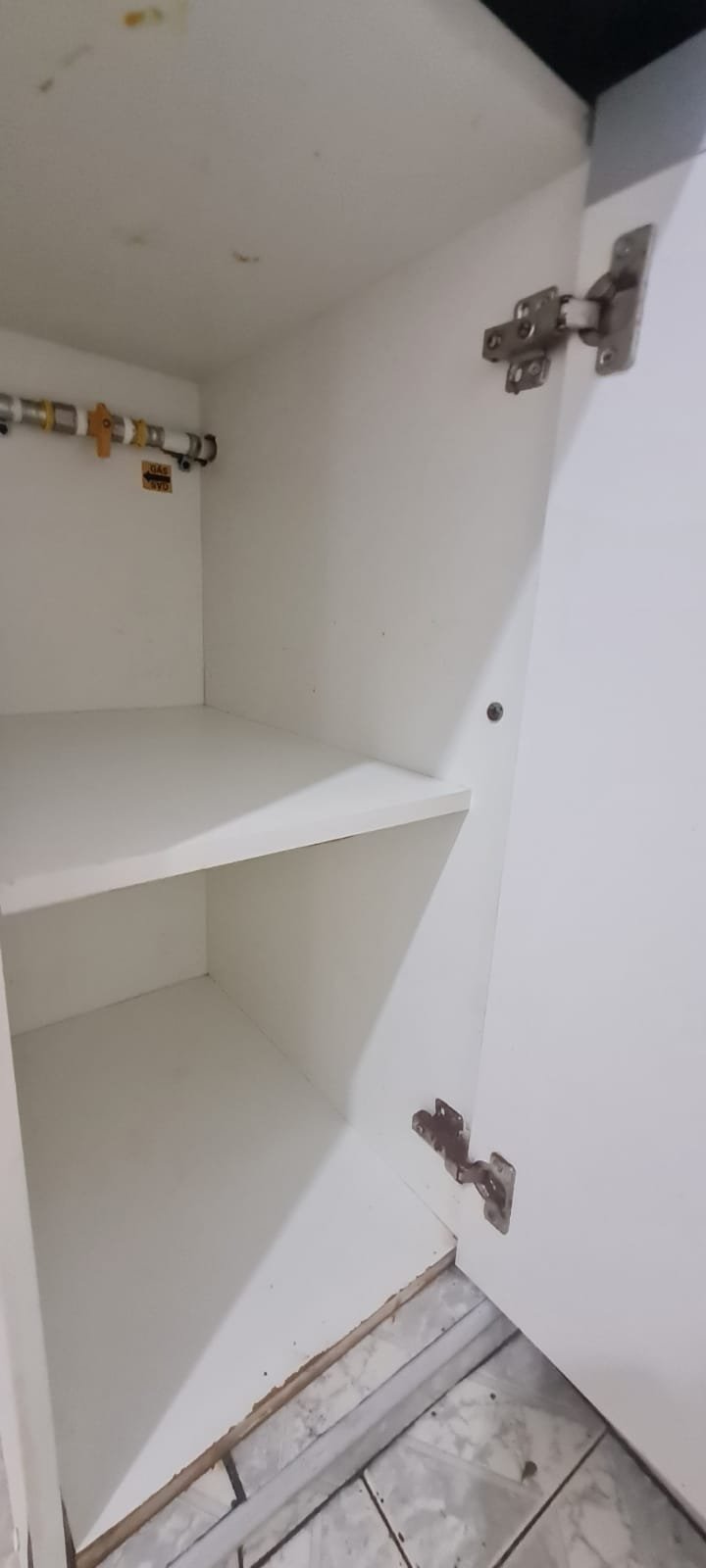 Área de serviço:- Piso frio cerâmico mesclado com desgaste natural do tempo restante em ordem, paredes com revestimento cerâmico cinza em ordem, teto com pintura na cor branco neve e gola de gesso em ordem, 01 lustre com lâmpada fluorescente compacta em ordem, 02 luminárias tipo arandelas plafon com 01 lâmpadas fluorescentes em ordem, 01 janela de alumínio com duas folhas de correr em ordem, 02 folhas de vidro de abrir em ordem, 02 folhas de vidro de correr enroscando o restante em ordem, 01 armário embutido com 12 portas de madeira, com 12 puxadores em ordem, 30 dobradiças em ordem,13 prateleira sem ordem, 02 gavetas em ordem,01 tanque sintético desentupido com desgaste natural do tempo restante em ordem, 01 torneira dupla em ordem, 02 interruptores com espelho em ordem, 02 tomadas para energia com espelho em ordem, 01 ralo de plástico desentupido em ordem.