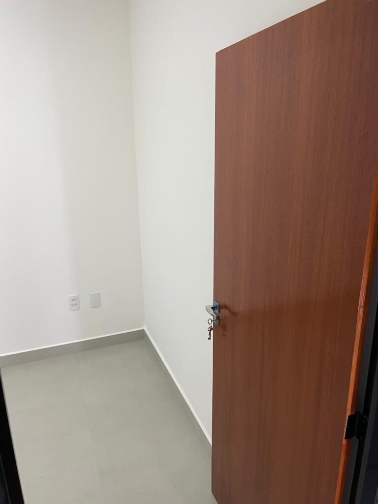 QUARTO 02 -: 01 filete de mármore cor preto em ordem, 01 porta de madeira envernizada em ordem, com maçaneta quadrada em inox em ordem, 01 fechadura em inox em ordem com chaves, batente com pintura nova na cor preto em ordem, pisos e rodapés revestidos de porcelanato na cor cinza em ordem, paredes e teto com gola de gesso e pintura nova na cor branco neve em ordem, 01 luminária de sobrepor com led em ordem, 01 janela deslizante com 04 folhas de vidros lisos blindex em ordem, esquadrias na cor preto em ordem, 01 fechadura em ordem, 06 espelhos marca Margirus sendo eles, 02 espelhos com 01 tomada sendo que 01 deles está sem capa, 02 espelhos cegos, 01 espelho com 02 tomadas, e 01 espelho com 01 interruptor ambos em ordem.