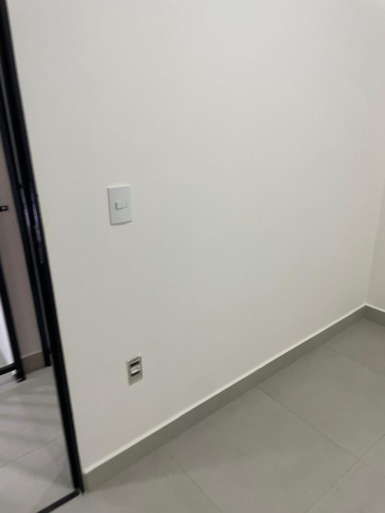 QUARTO 01 -: 01 filete de mármore cor preto em ordem, 01 porta de madeira envernizada em ordem, com maçaneta quadrada em inox em ordem, 01 fechadura em inox em ordem com chaves, batente com pintura nova na cor preto em ordem, pisos e rodapés revestidos de porcelanato na cor cinza em ordem, paredes e teto com gola de gesso e pintura nova na cor branco neve em ordem, 01 luminária de sobrepor com led em ordem, 01 janela deslizante com 04 folhas de vidros lisos blindex em ordem, esquadrias na cor preto em ordem, 01 fechadura em ordem, 06 espelhos marca Margirus sendo eles, 02 espelhos com 01 tomada, 02 espelhos cegos, 01 espelho com 02 tomadas, e 01 espelho com 01 interruptor ambos em ordem.