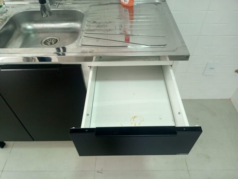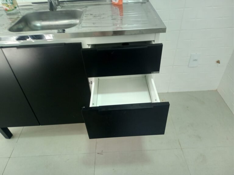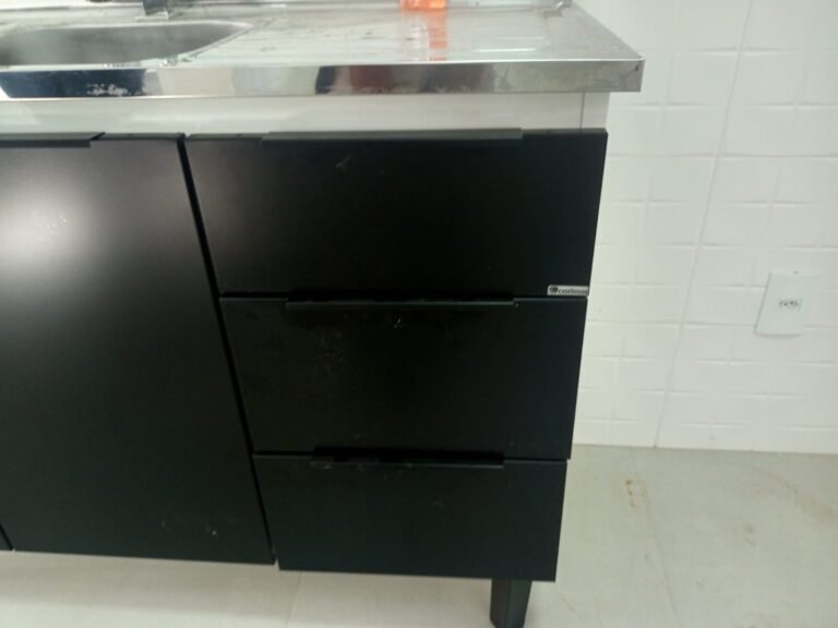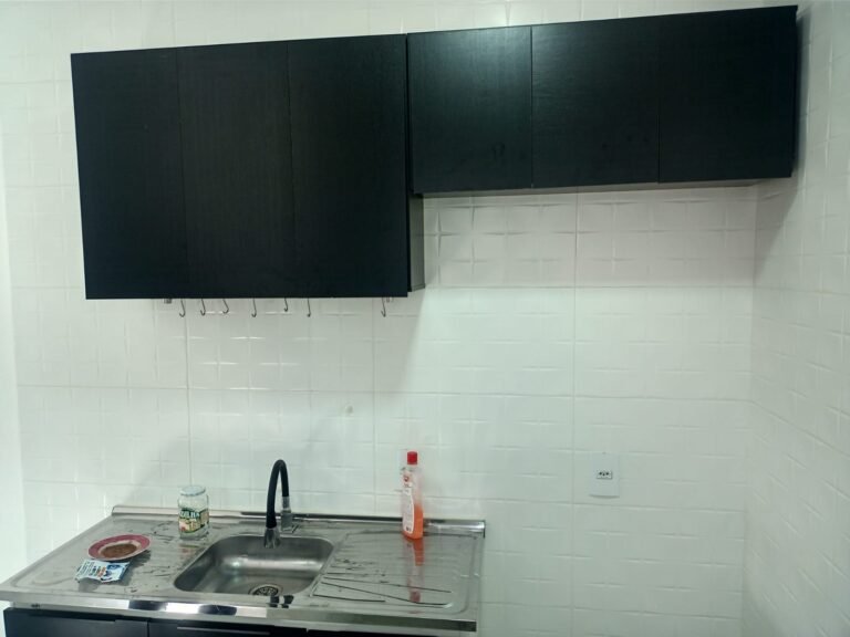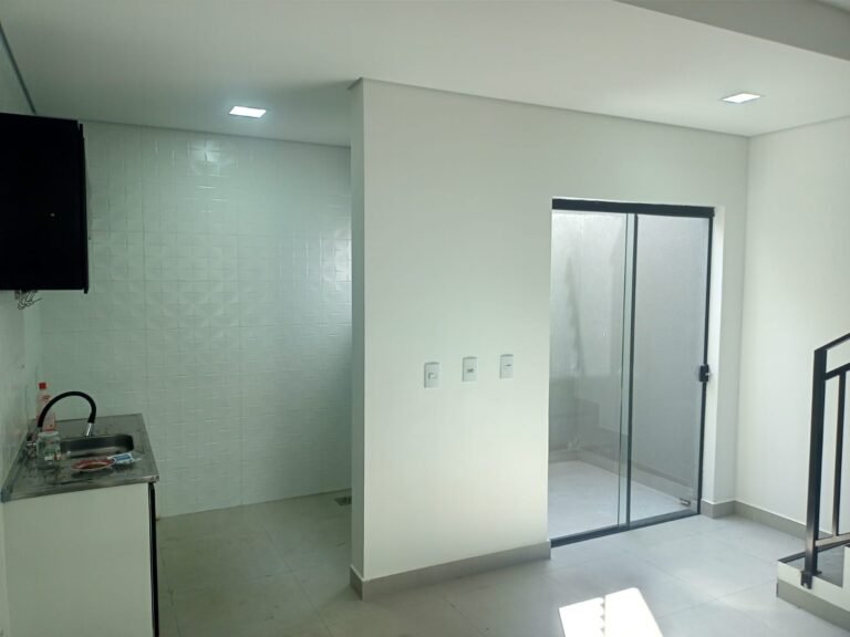 COZINHA-: Piso de porcelanato na cor cinza novos em ordem, paredes revestidas de azulejo na cor branco novos em ordem, teto com gola de gesso e pintura nova na cor branco neve em ordem, 01 janela deslizante com esquadrias na cor preto em ordem, com 02 folhas de vidros lisos blindex em ordem, 01 fechadura em ordem, 01 soleira em mármore cor preto em ordem, 06 espelhos marca Margirus em ordem, sendo 06 tomadas em ordem, 01 canopla de registro, 05 pré-instalações de água, 02 pré-instalações canos PVC, 01 ralo sem tampa,01 armário suspenso mdf, 06 portas na cor preto em ordem 01 armário marca Cozimax novo em ordem, com 02 portas e 03 gavetas nas cores branco/preto em ordem, 01 pia marca Fabrinox, com cuba de inox em ordem, 01 luminária plafon embutida com led em ordem.