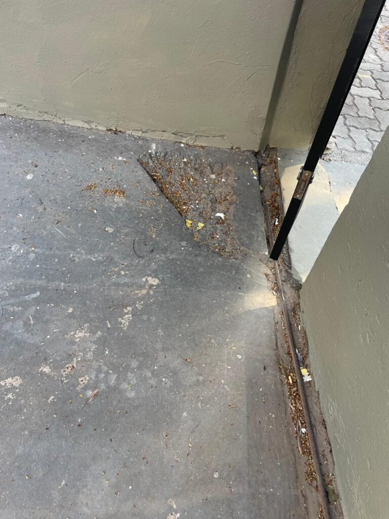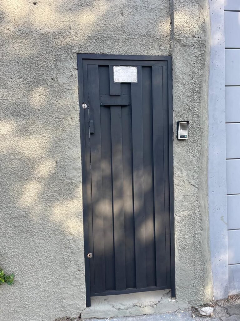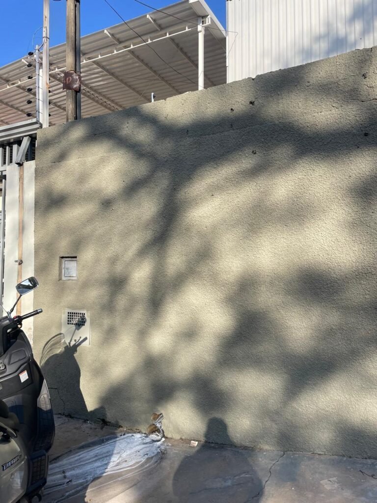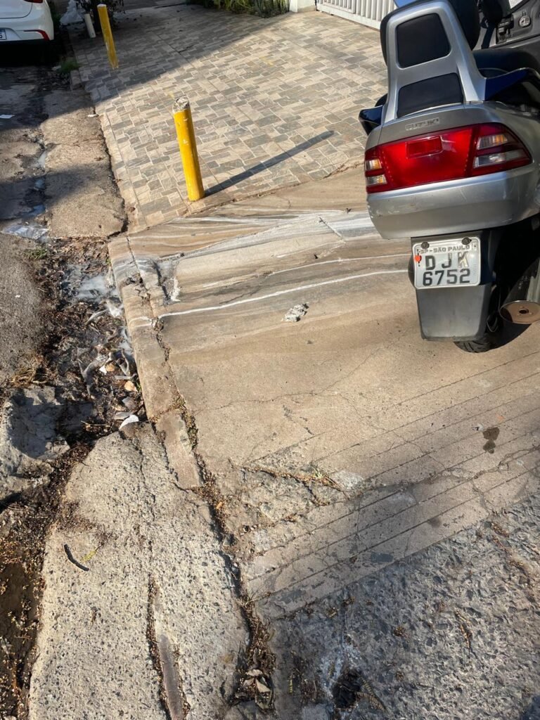FACHADA-: Calçada de concreto desempenado com desgastes naturais, manchas de tinta e restante em ordem, muro do imóvel com pintura nova na cor concreto em ordem, 01 quadro de hidrômetro padrão sanasa, com tampa e lacre em ordem, 01 hidrômetro padrão sanasa em ordem, 01 tampa de ferro de proteção do medidor elétrico em ordem, 01 interfone HDL não testado, 01 portão social de Metalon, com pintura nova na cor preto em ordem, com 02 puxadores em ordem, com 02 fechaduras tetras marca 3F em ordem e com chave, 01 portão de correr de metalon em ordem, com pintura nova na cor preto em ordem, com 01 caixa de correspondência em ordem ( tampa em ordem e pintura nova na cor preto), 01 trinco para cadeado em ordem, 02 puxadores em ordem, 01 fechadura ferrolho com trinco para cadeado em ordem.