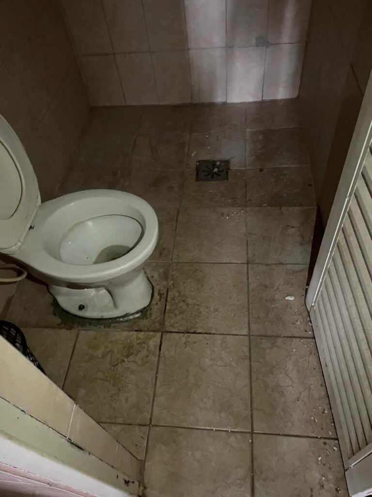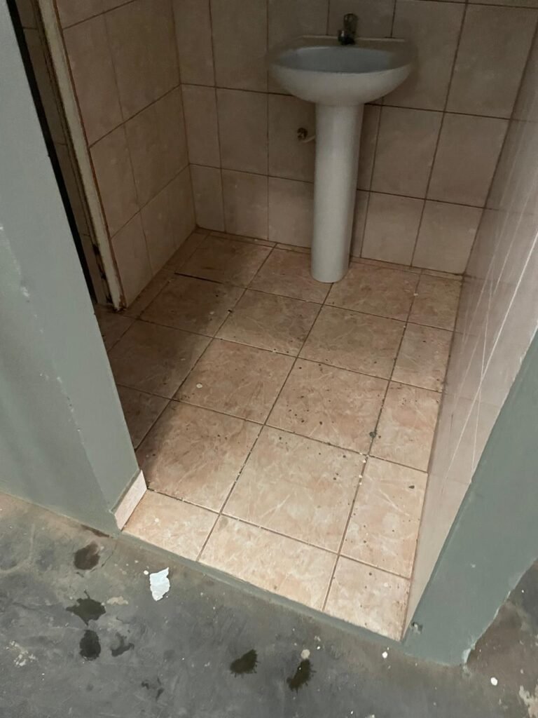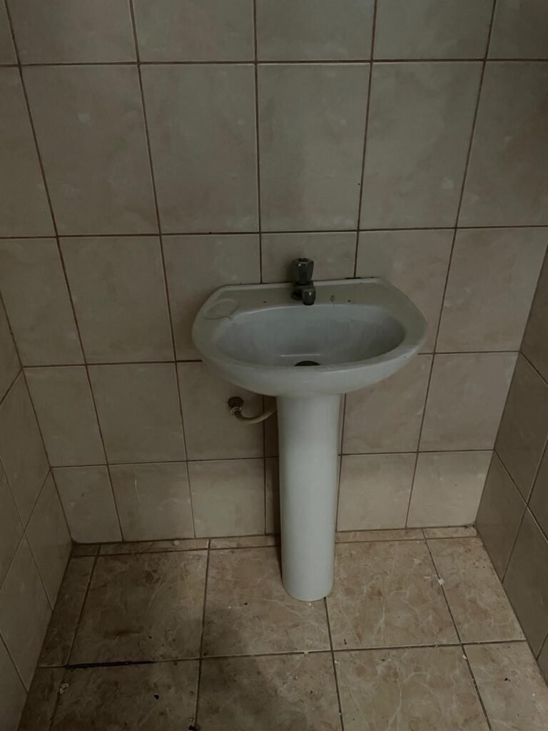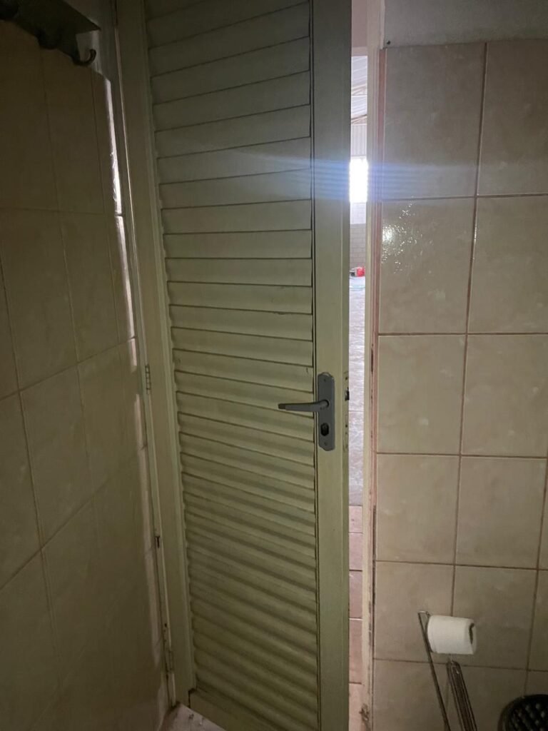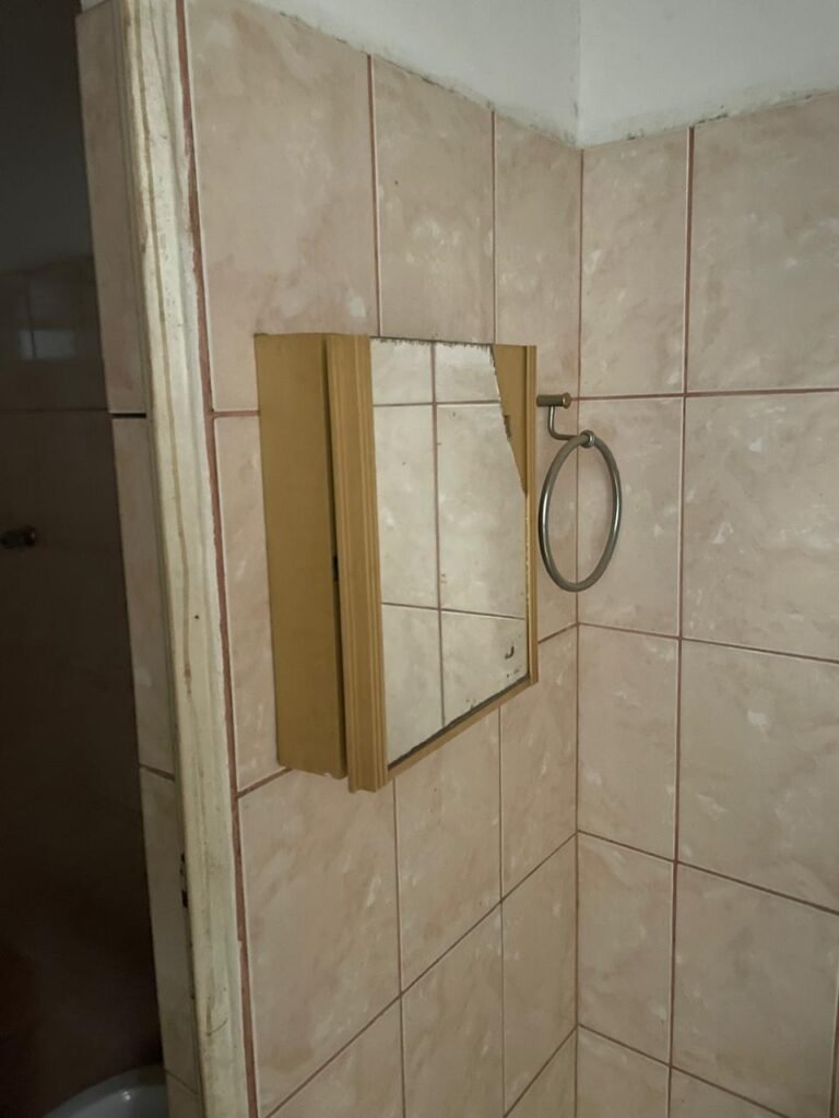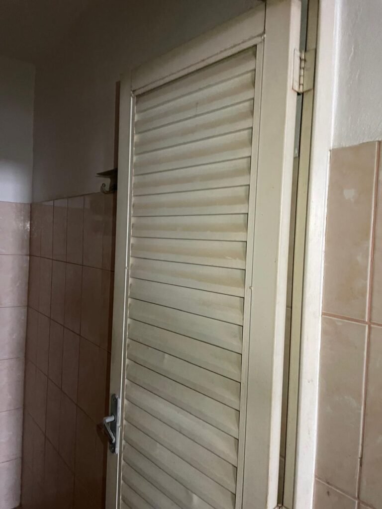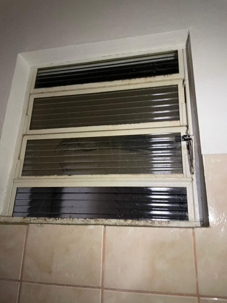 BANHEIRO FEMININO-: Piso revestido de frios cerâmicos com resgates naturais, com manchas de tinta, e restante em ordem, 01 rabo em inox em ordem, 01 suporte de papel marca Kimberly Clark com desgastes naturais, 01 armário de pequeno porte com espelho danificado e restante em ordem, 01 suporte em inox de toalha de rosto, 01 conjunto lavatório de cerâmica cor branco marca em Icasa, 01 torneira em inox não testada, 01 sifão sanfonada não testado, 01 interruptor não testado, paredes 1/2 revestidas de pisos frios cerâmicos com desastres naturais e restante em ordem, restante das paredes e do teto com pintura na cor branco neve em ordem, 01 porta de aço com desgastes naturais e com pintura na cor branco, maçanetas com pintura na cor cinza e com acabamento solto, fechadura marca MGM com chave em ordem, 01 conjunto sanitário de cerâmica cor branco, marca Icasa, contando e acento com desgastes naturais, descarga não testada, 01 vitrô basculante com esquadrias de ferro com pintura na cor branco com pigmentos de ferrugem, 01 fechadura em ordem e com 04 vidros canelados em ordem, 01 canopla em inox em ordem, 01 bocal com acabamento solto e com 01 lâmpada LED não testada.