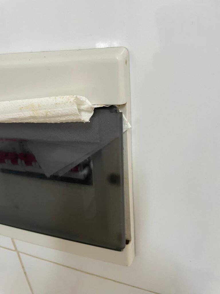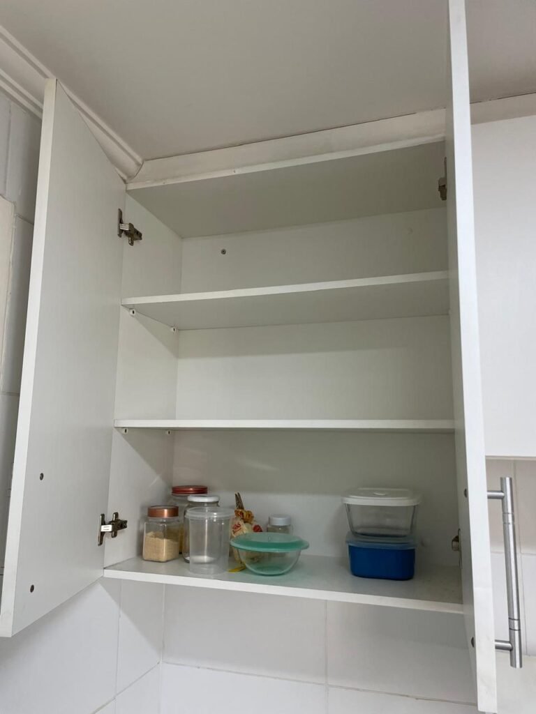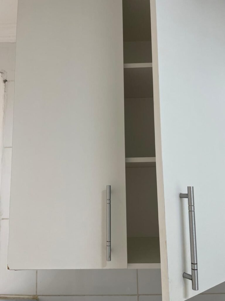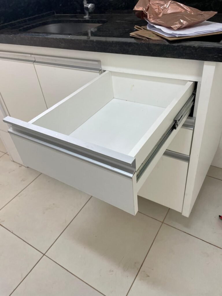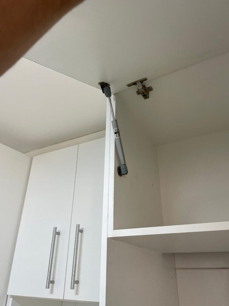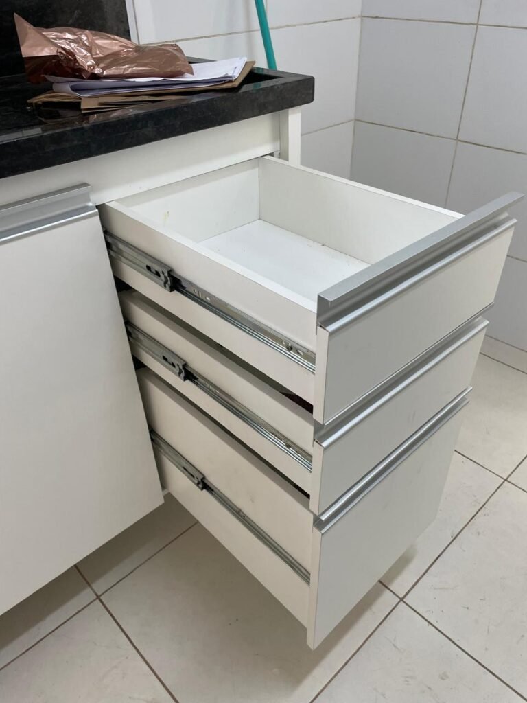 COZINHA-: Conserto tampa da caixa do disjuntor steck, ármario embutido da pia precisa de faxina, plateleiras manchadas, conserto dos dobradicas, corredicas, pistão amortecedor, quinas saindo lascas do gabinete e do armario planejado.