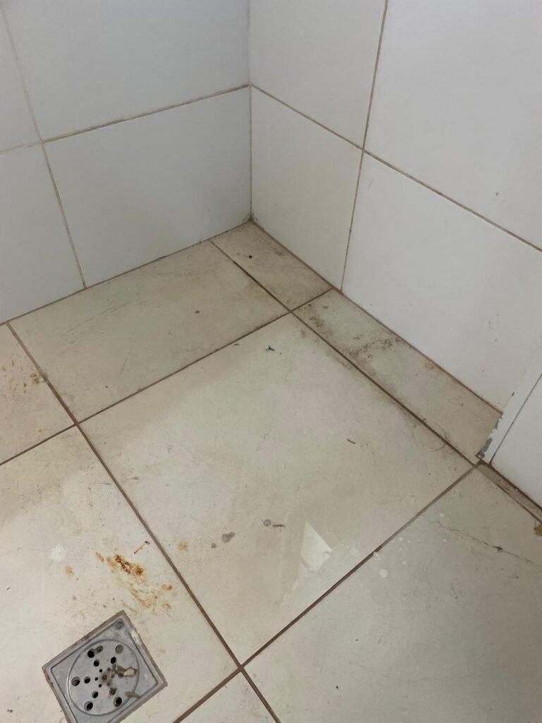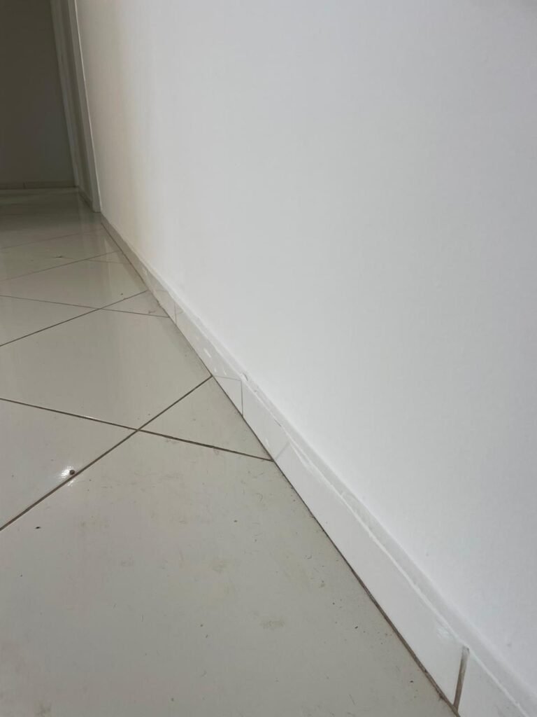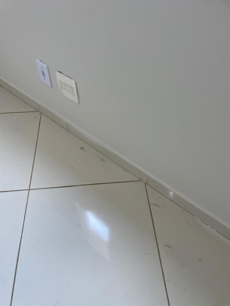 QUARTO 01-: Efetuar limpeza do piso e dos rodapés que estão sujos de tintas, suporte de tv na parede