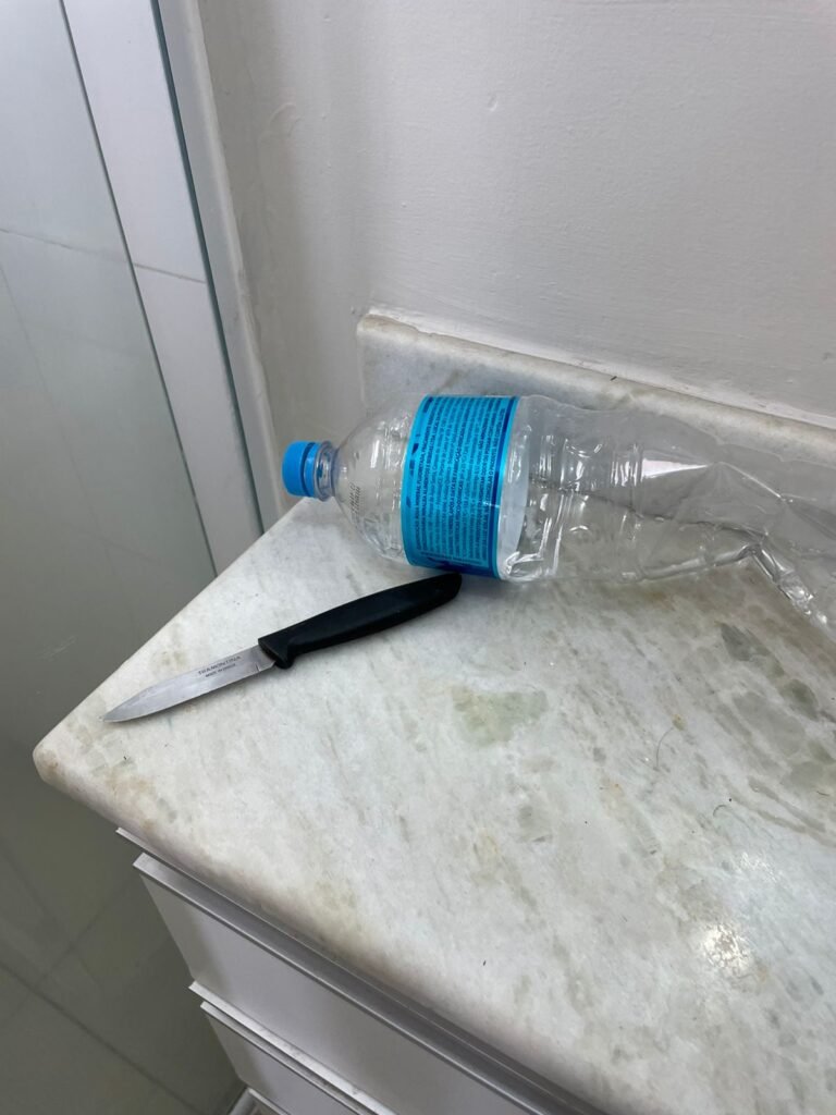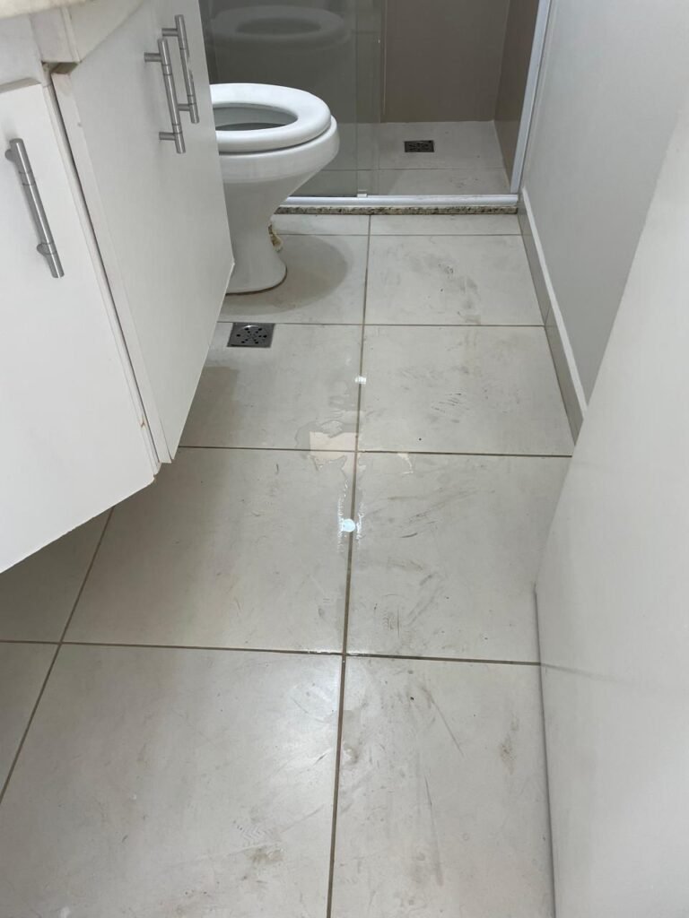 BANHEIRO SUÍTE-: Efetuar limpeza de respingos de tinta do piso, dos rodapés, da pia e da cuba.